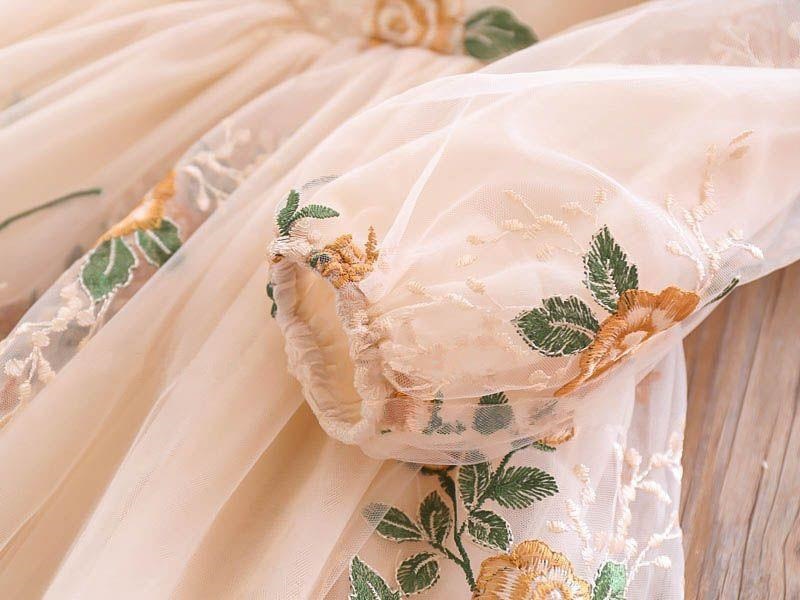 여자 긴팔 원피스 가을 원피스 한국 스타일 꽃 자수 공주 원피스 퍼프 궁전 스타일 서양식 소녀 치마