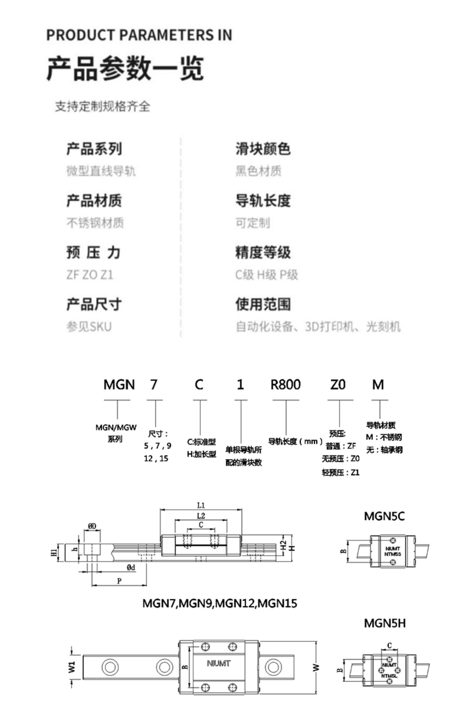 국내 스테인레스 스틸 소형 선형 가이드 슬라이더 MGN3C5C7C9C12C15C 3H5H 7H9H12H 트랙