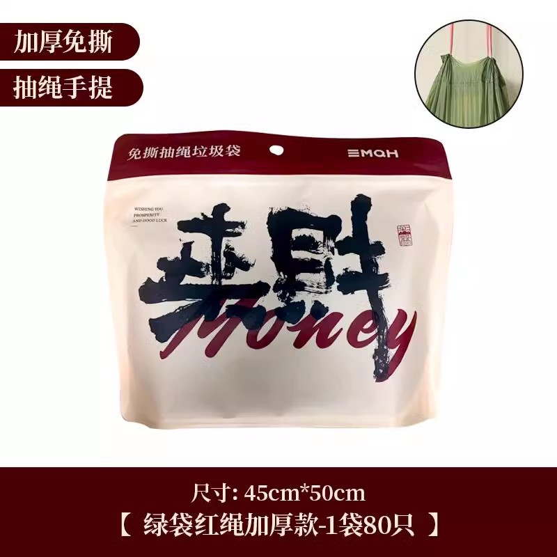 • 찢어지지 않는 쓰레기봉투 - 빨간색 봉투와 녹색 밧줄(80개)