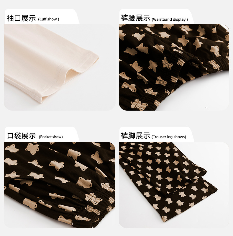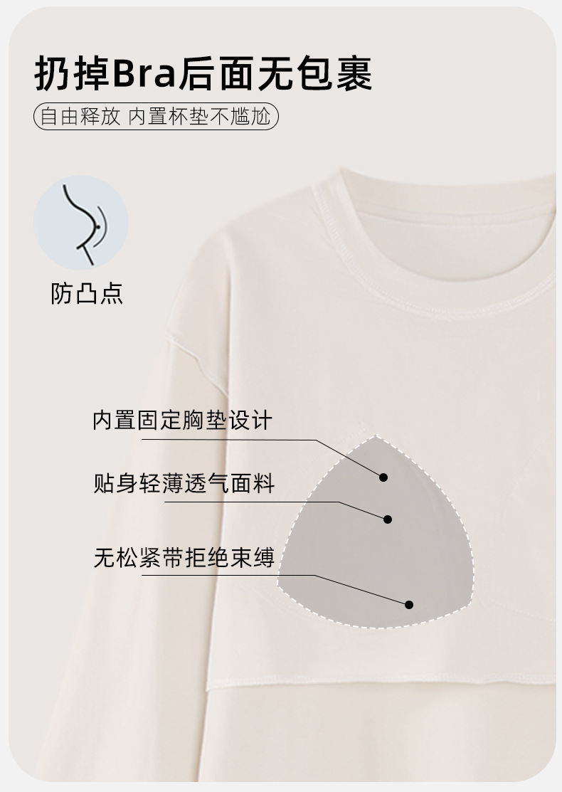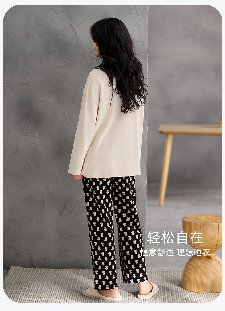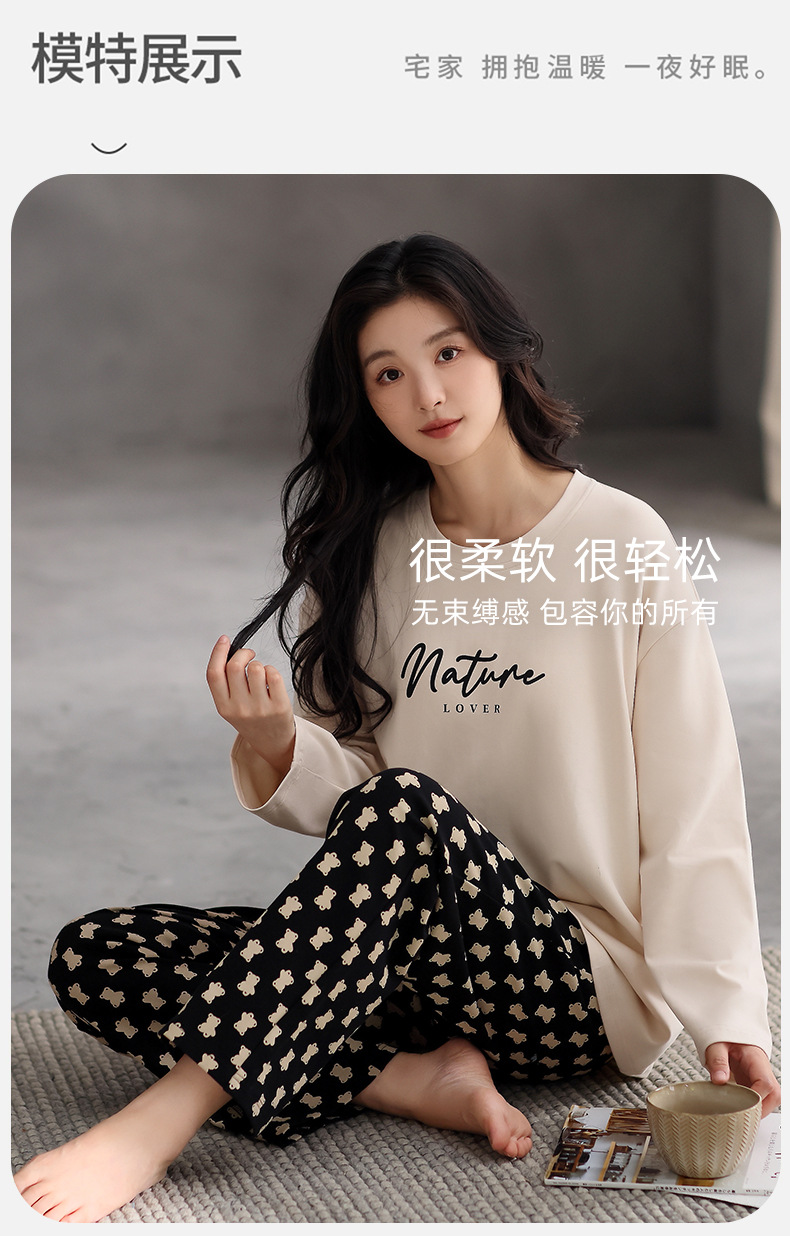 여성용 잠옷 봄 가을 순면 긴팔 라운드넥 풀오버 심플 패션 2025 신상 가슴 패드 포함 홈웨어 투피스 세트스토어 가기