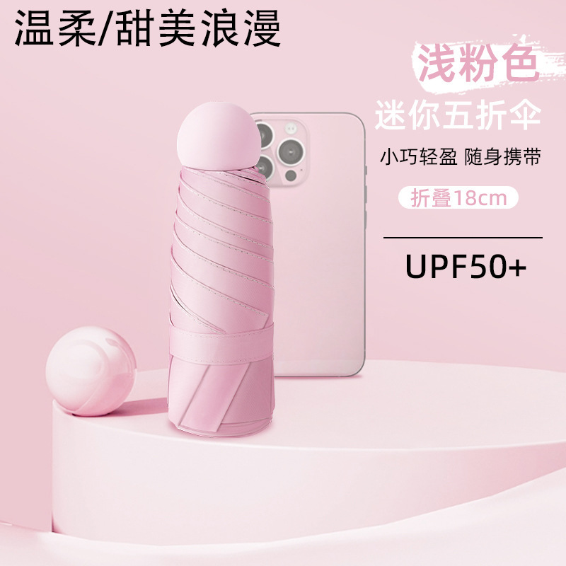 5 배 우산 작은 휴대용 선 스크린 수동 작은 우산 미니 광고 포켓 우산 터치 블랙 접착제 작은 신선한 우산스토어 가기