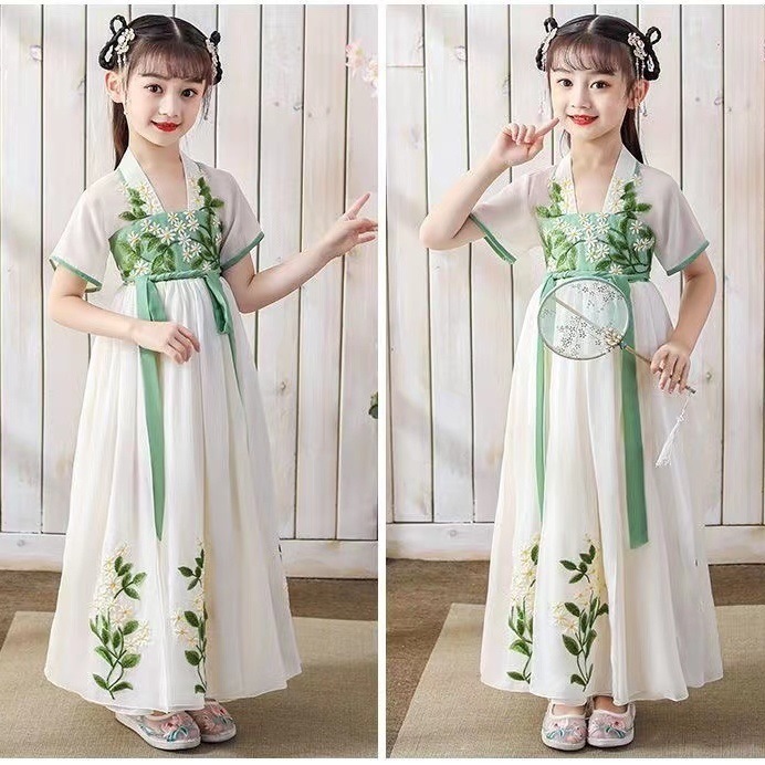 한복 어린이 고대 의상 루스 스커트 봄과 여름 스타일 소녀 슈퍼 요정 스커트 중국 스타일 당나라 정장 드레스 쉬폰 새로운 스타일