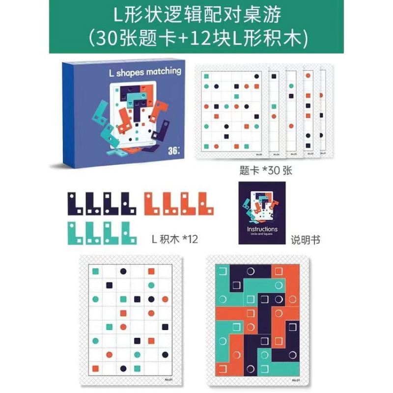 • L자형 논리 매칭 보드 게임(질문 카드 30개 + 빌딩 블록 12개)