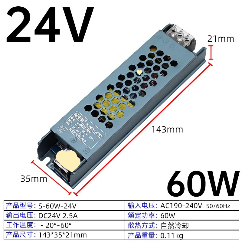 • 12V60W(초내로우 모델) 라이트 채널 전원 공급 장치/폭 35mm