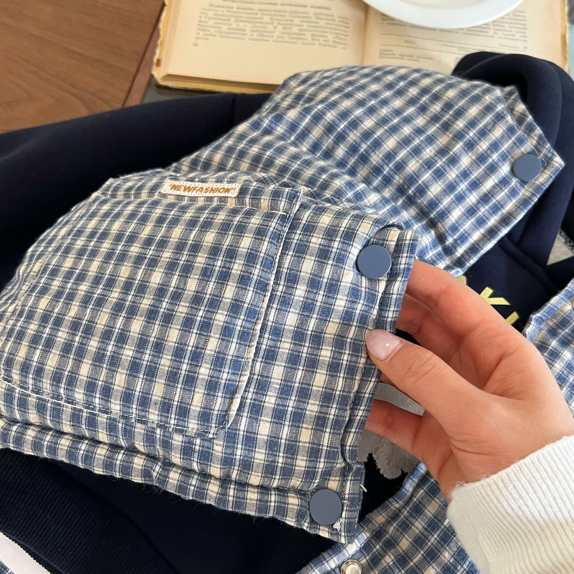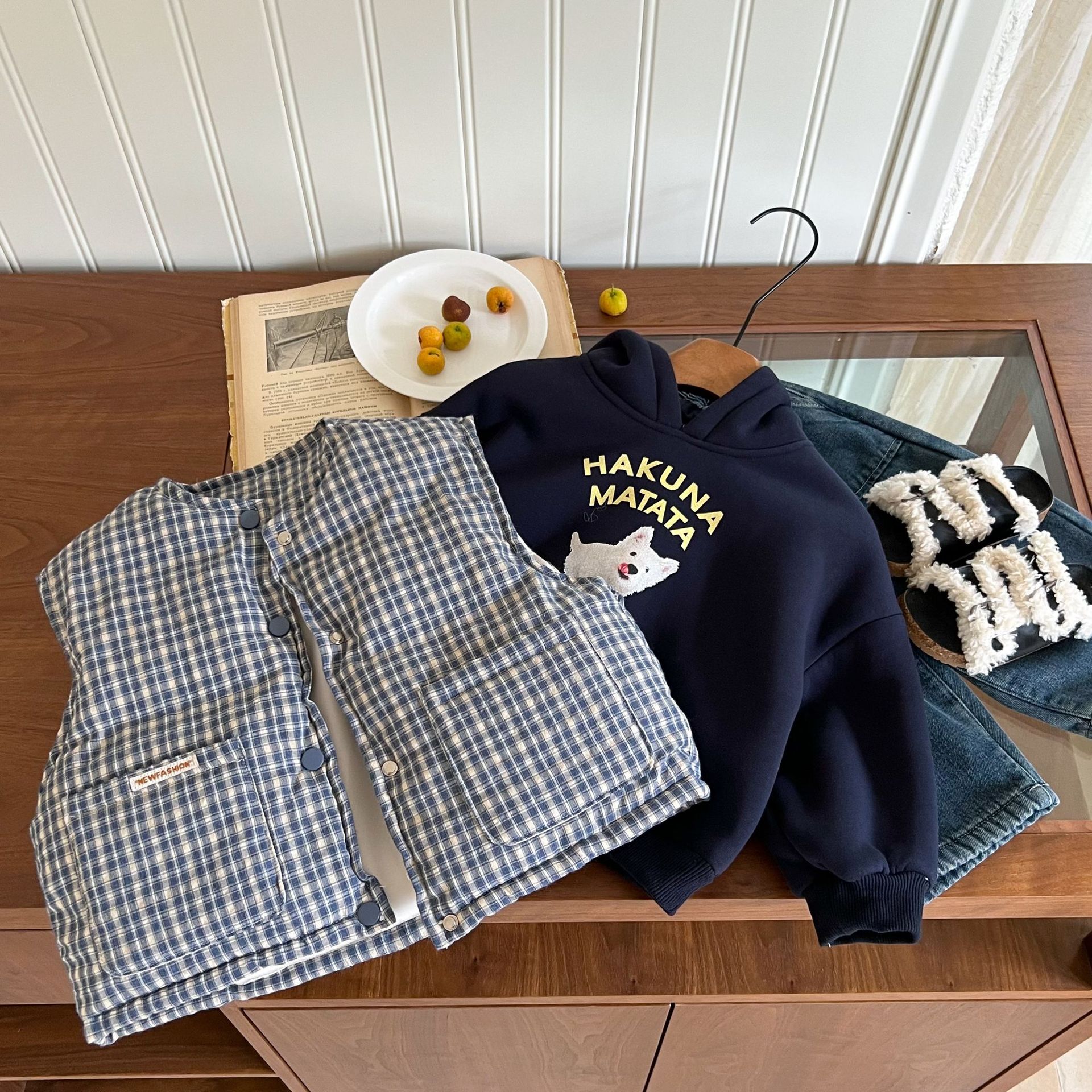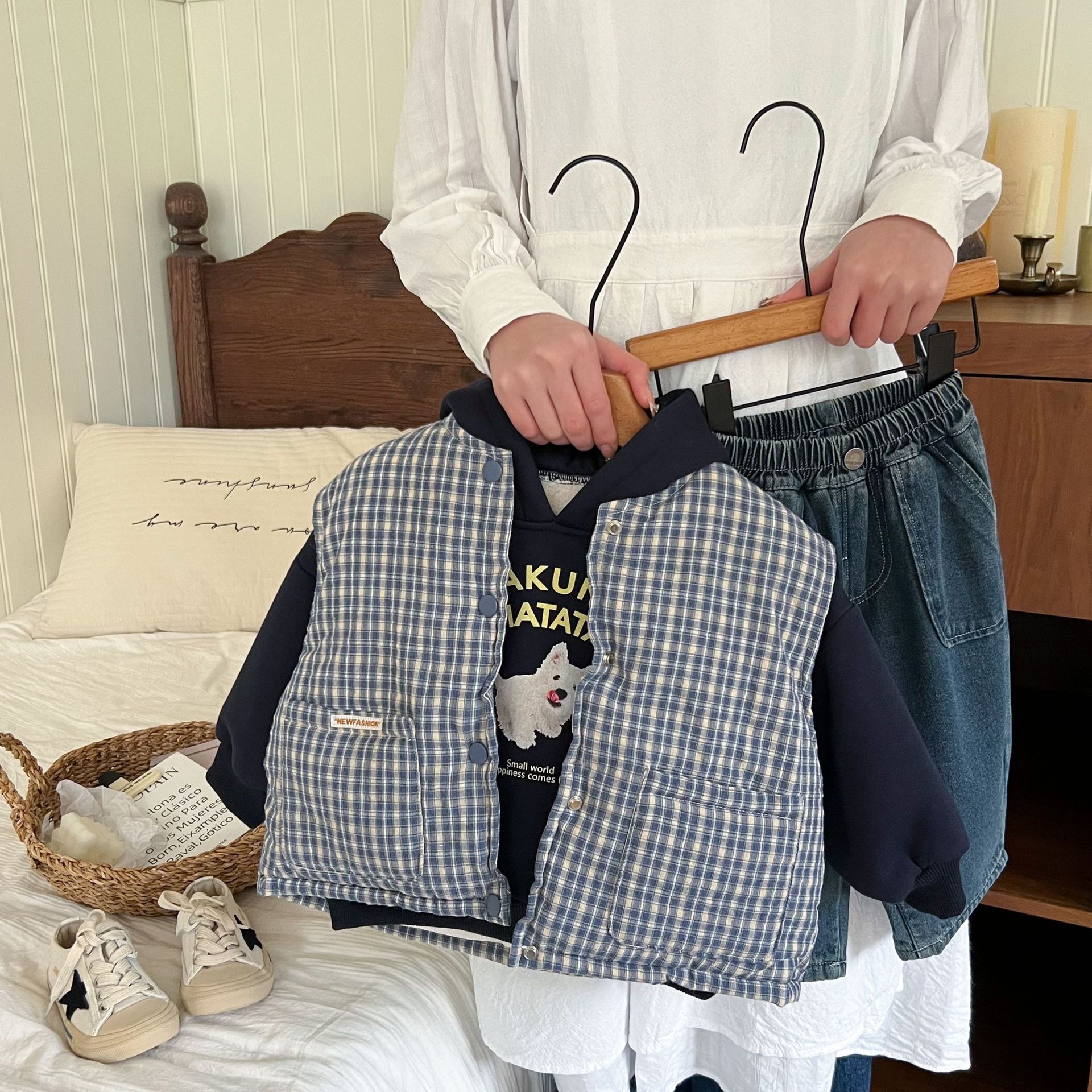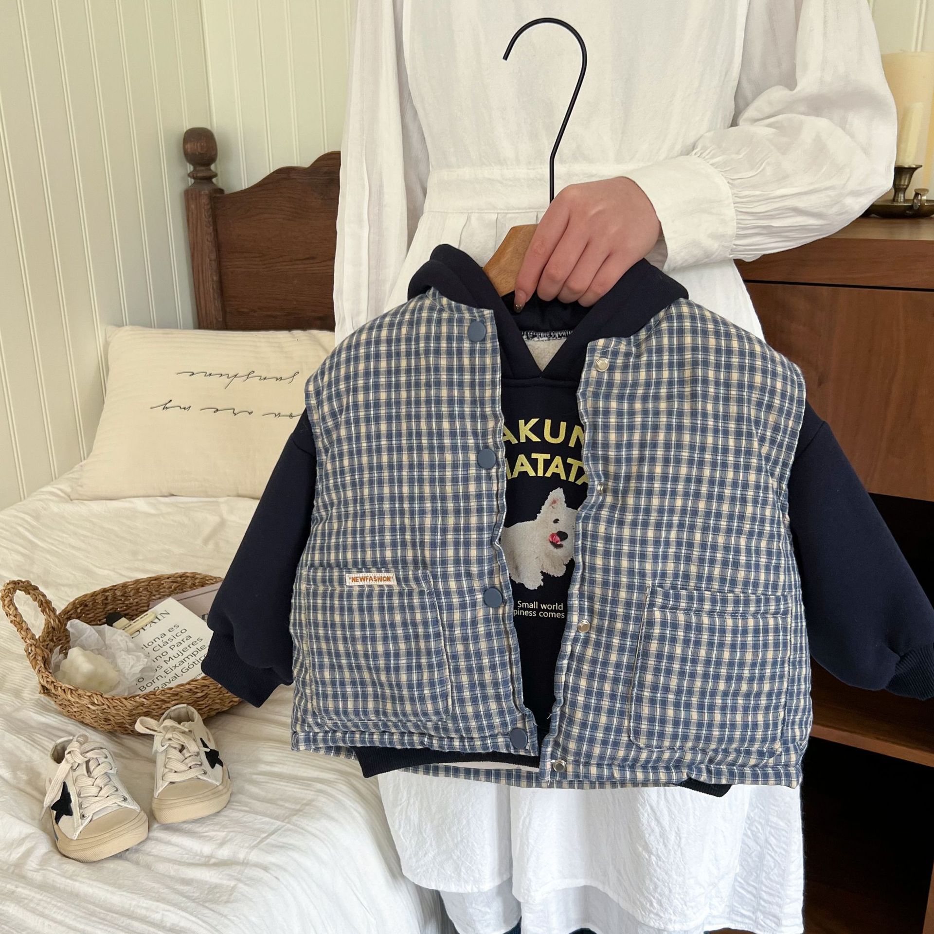 겨울 새로운 어린이 면화 조끼 아기 소녀의 격자 무늬 코트 소년의 올드 컬러 웨스턴 스타일 민소매 면 패딩 재킷