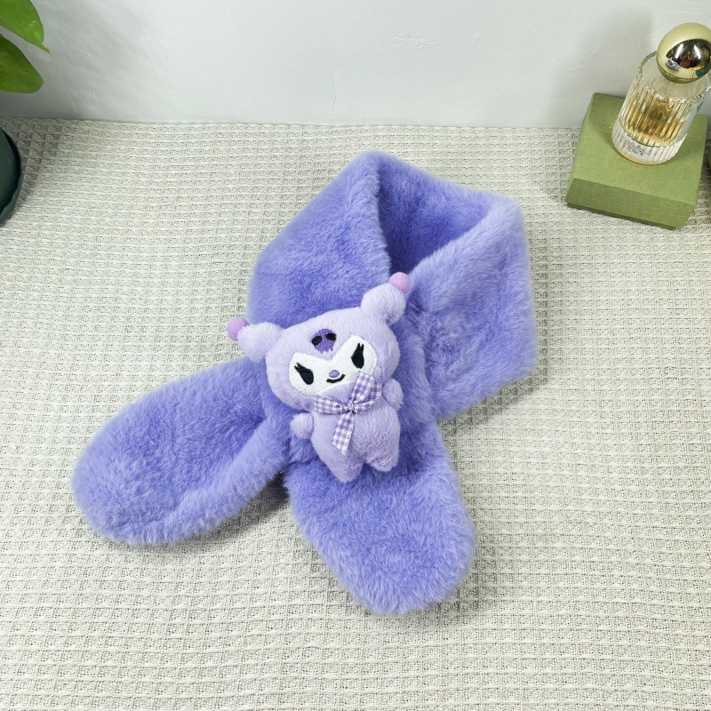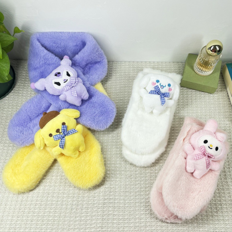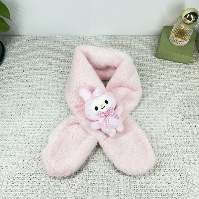 어린이 봉제 두꺼운 스카프 만화 귀여운 산리오 아기 스카프 모방 토끼 모피 크로스 스카프 새로운 도매스토어 가기