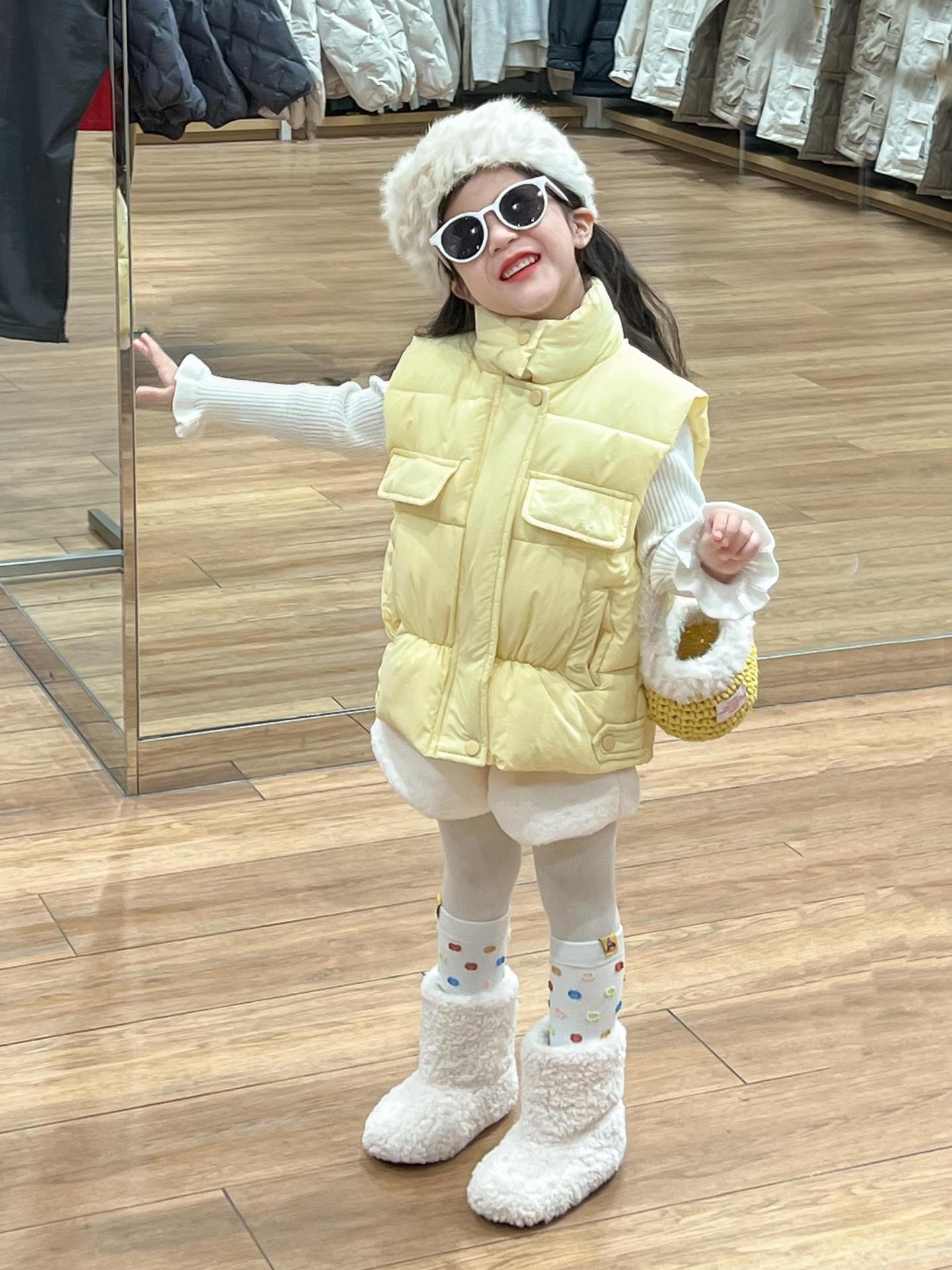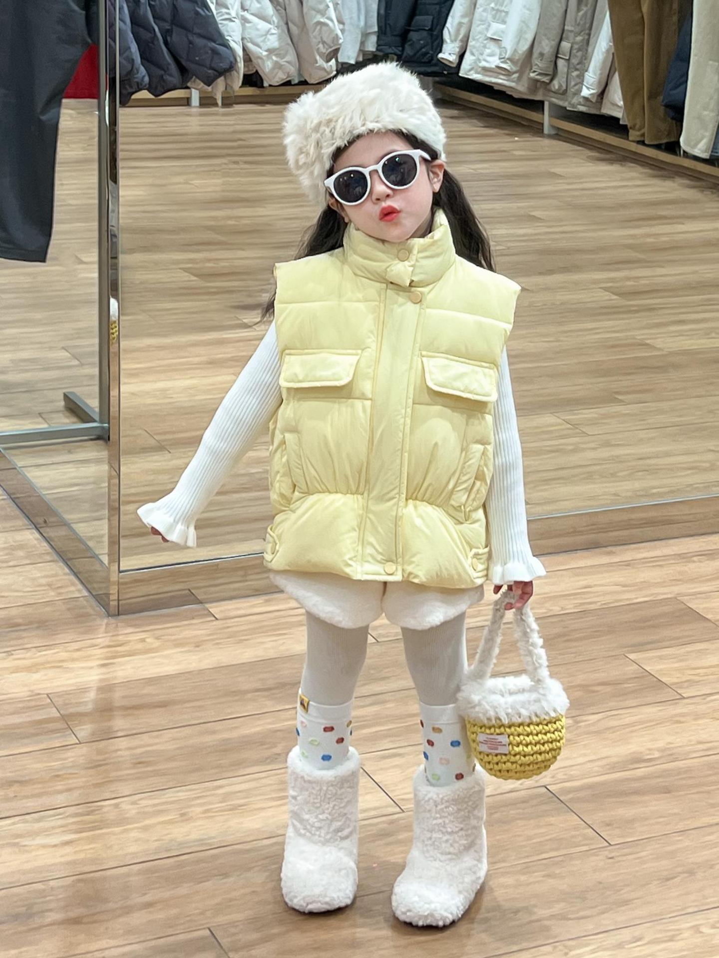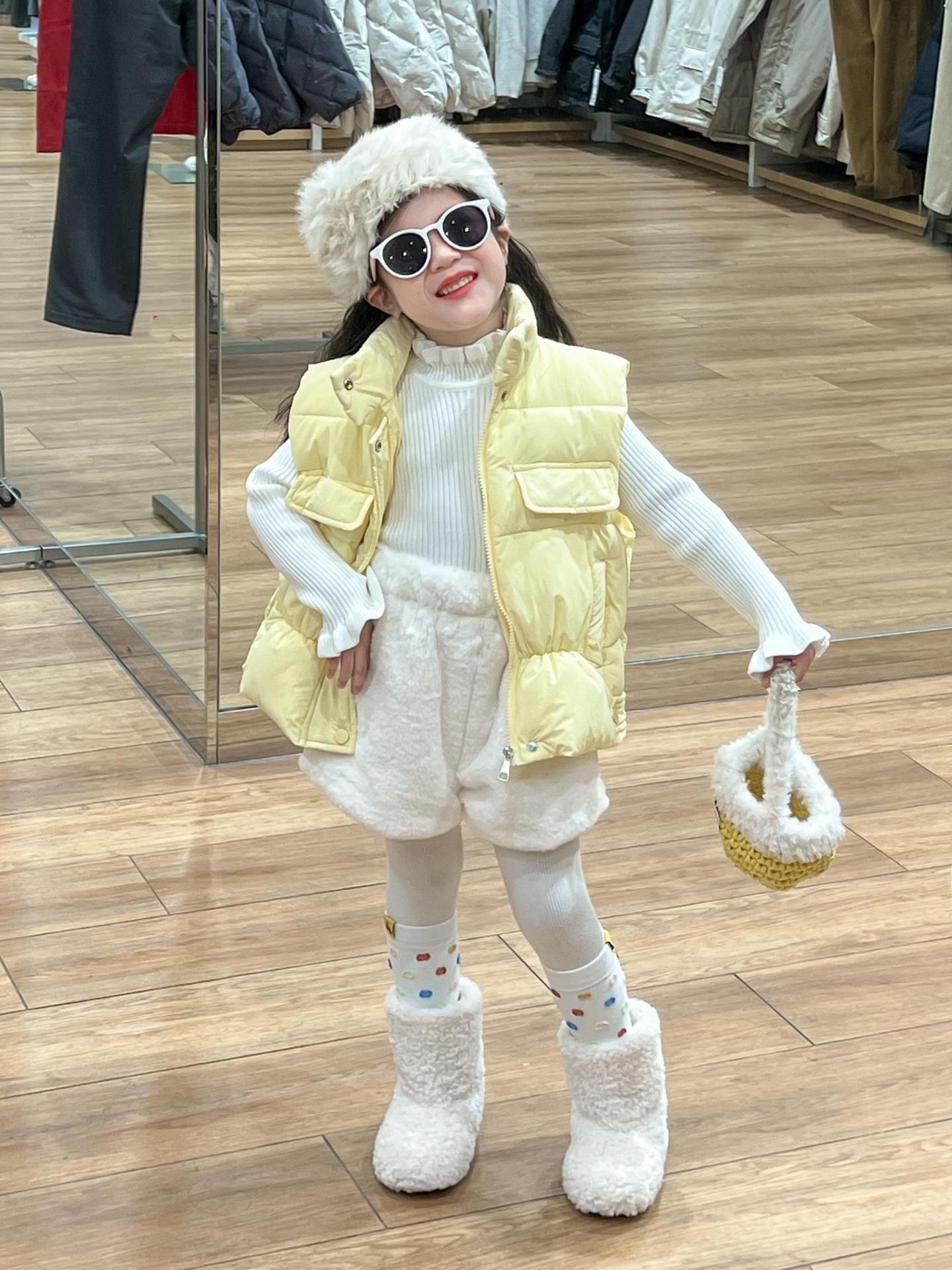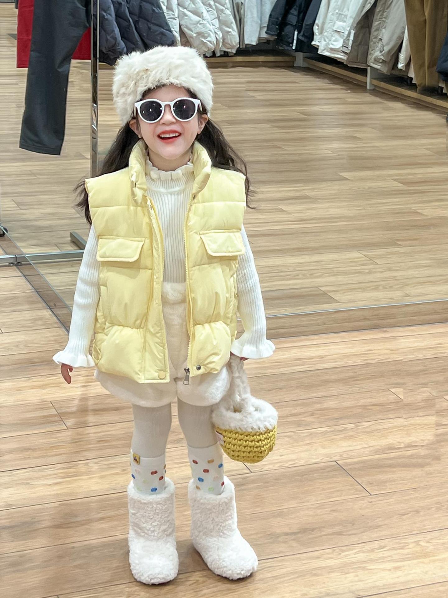 여자 겨울 노란색 다운 코튼 양복 조끼 화이트 레이스 높은 칼라 양모 베이스 스웨터 분할스토어 가기