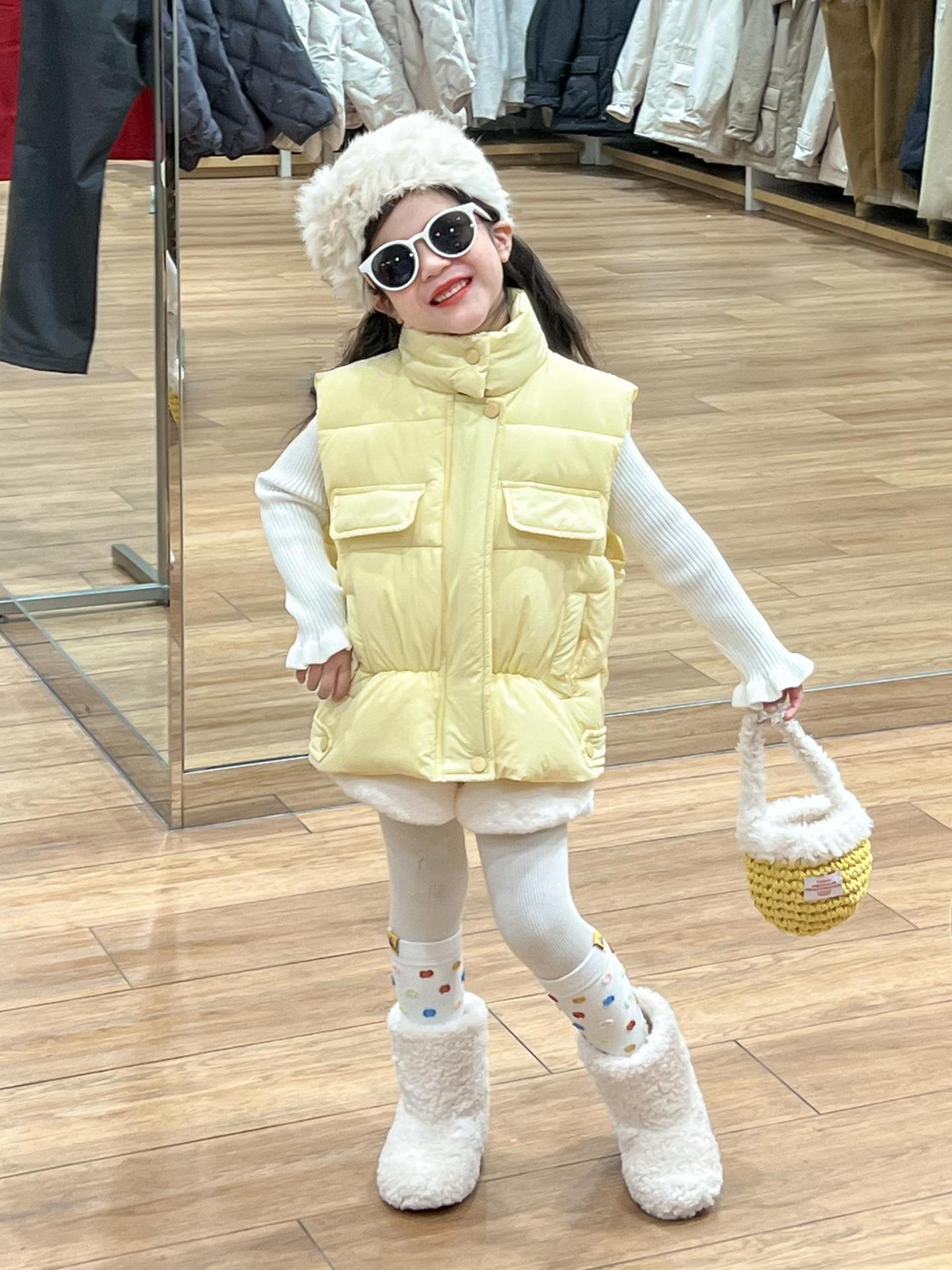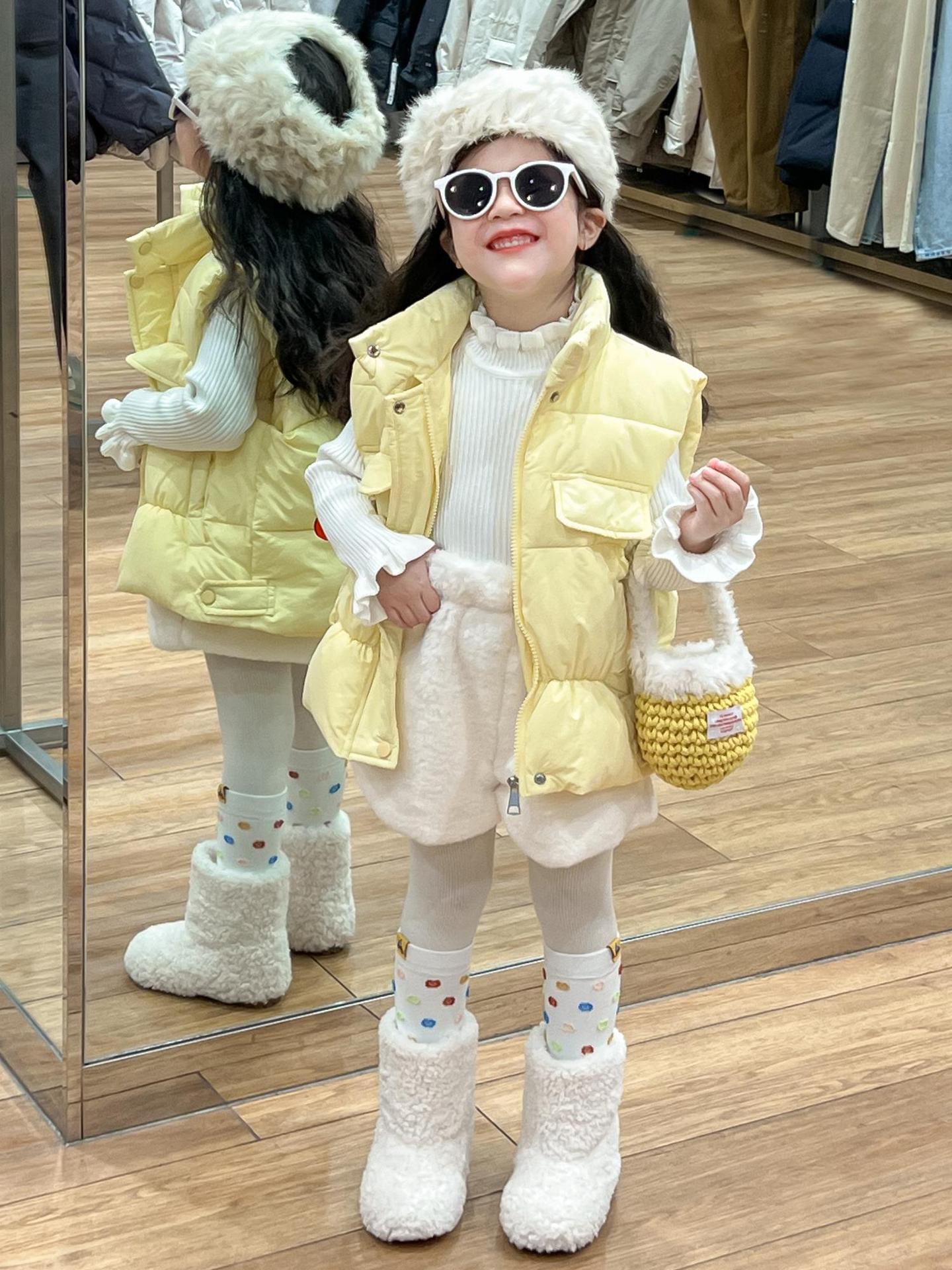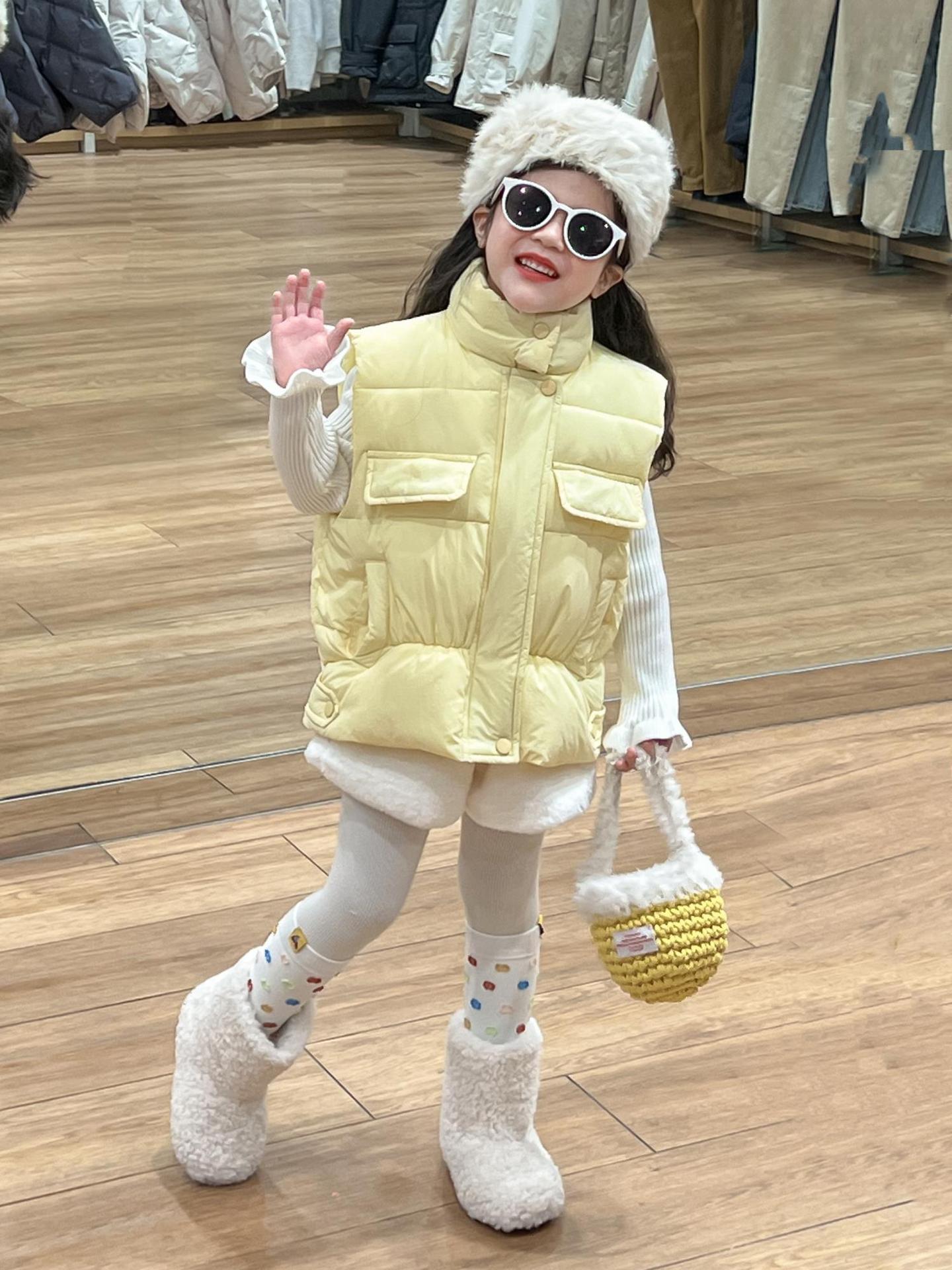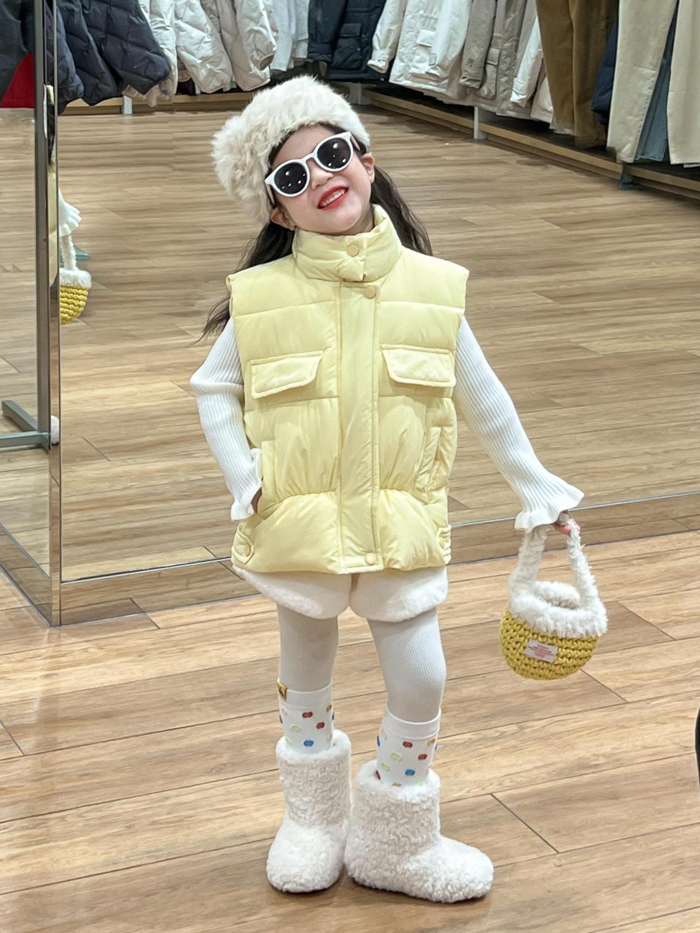 여자 겨울 노란색 다운 코튼 양복 조끼 화이트 레이스 높은 칼라 양모 베이스 스웨터 분할스토어 가기