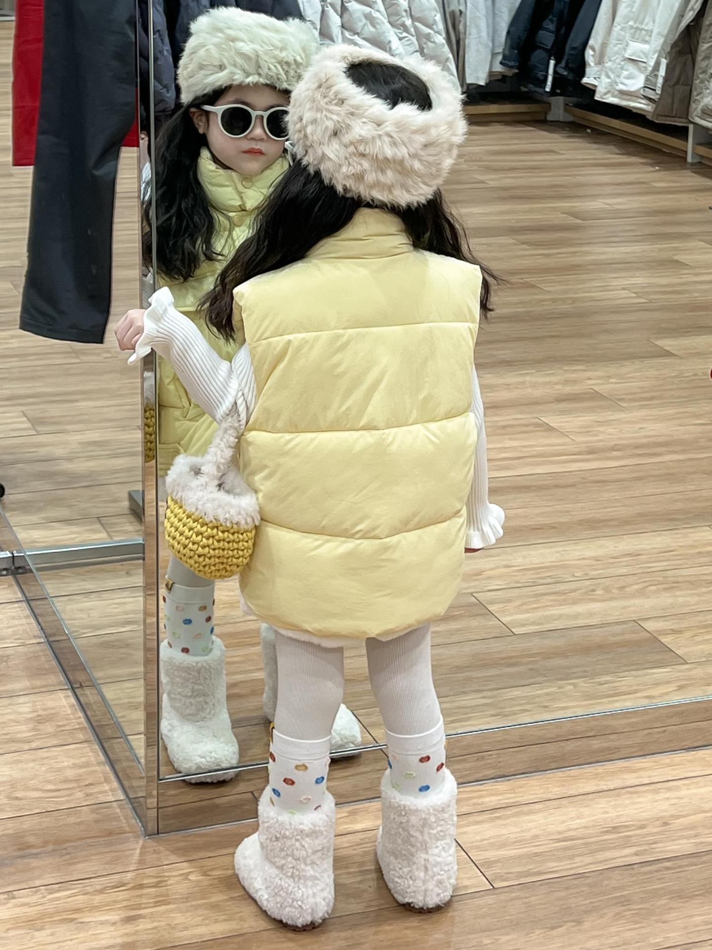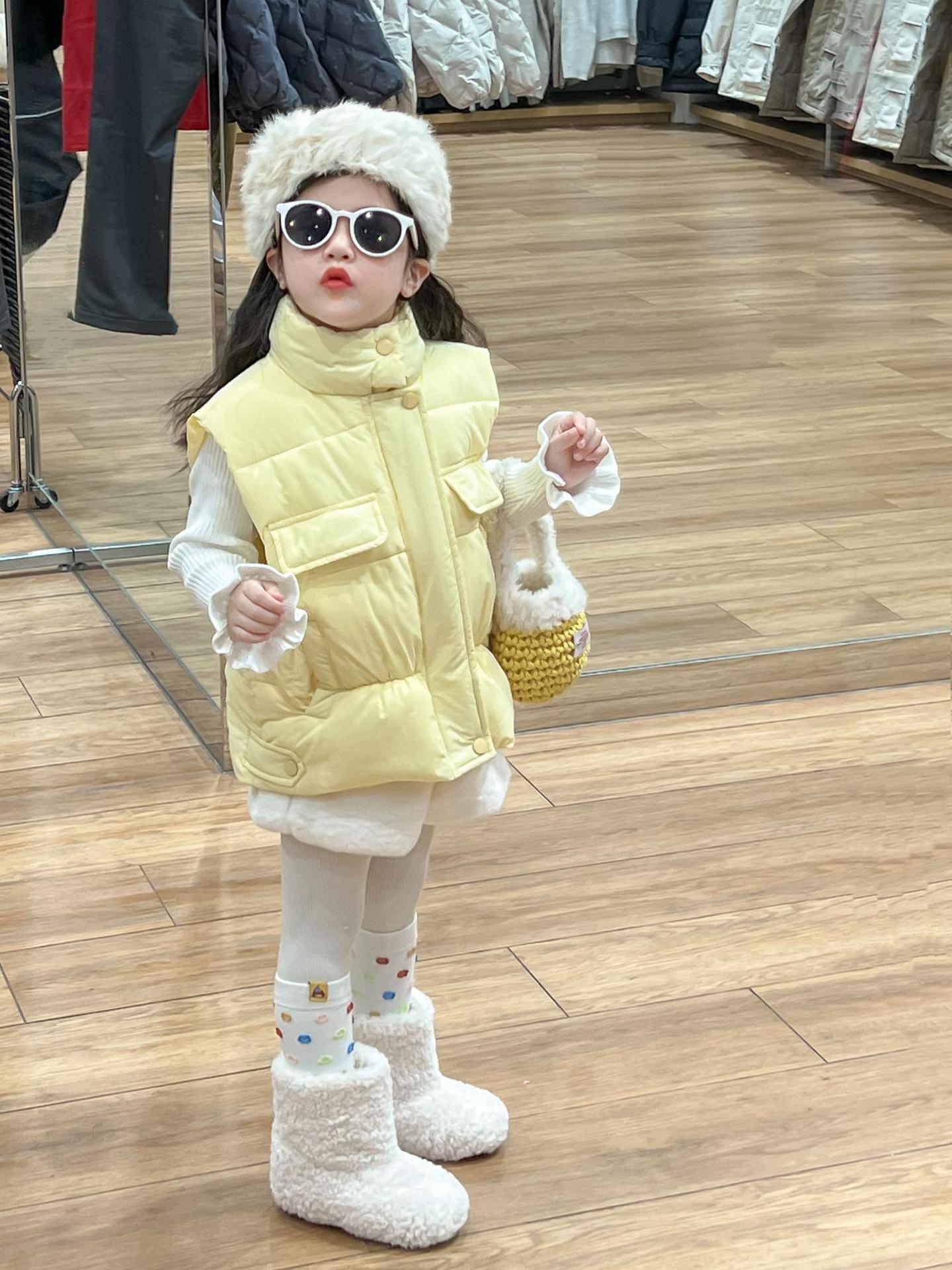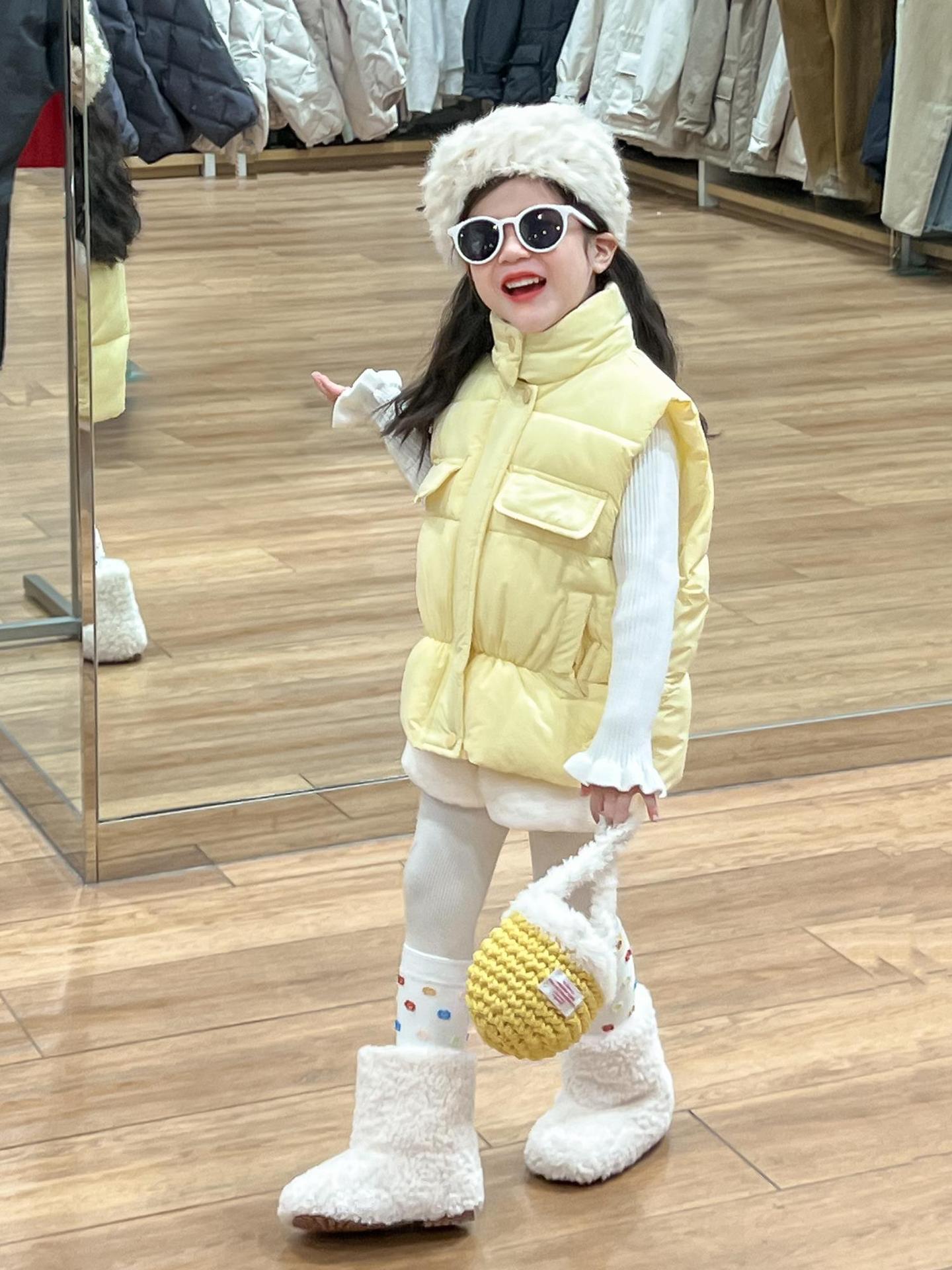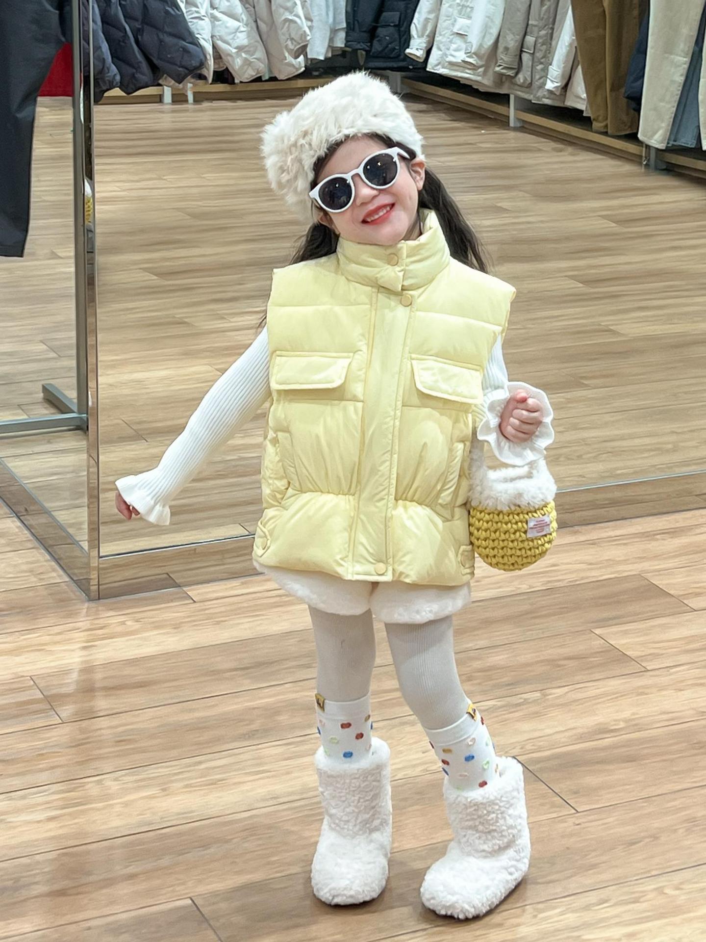 여자 겨울 노란색 다운 코튼 양복 조끼 화이트 레이스 높은 칼라 양모 베이스 스웨터 분할스토어 가기