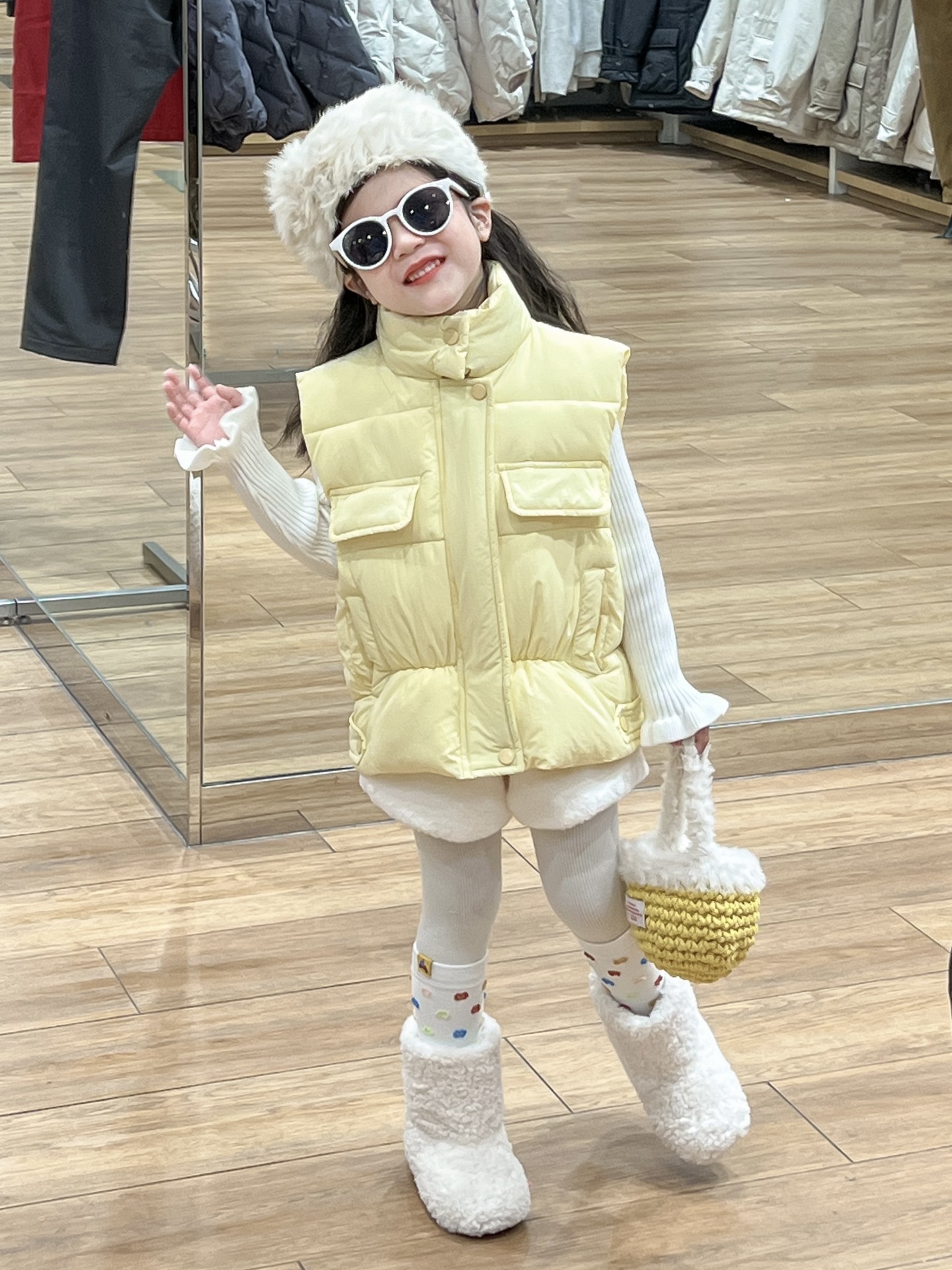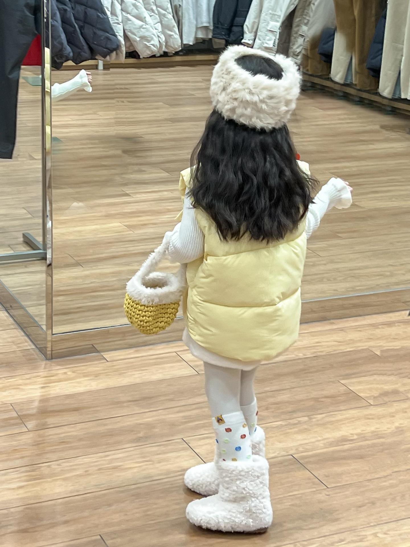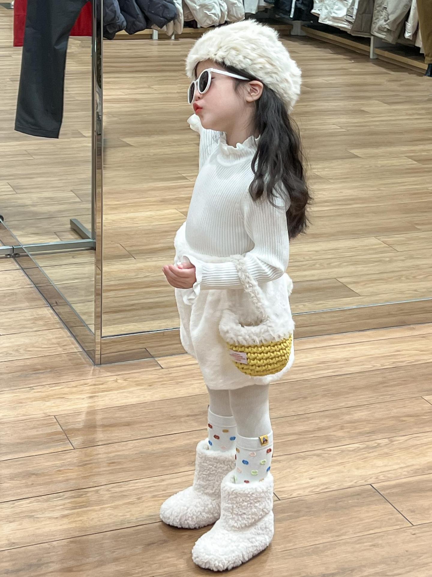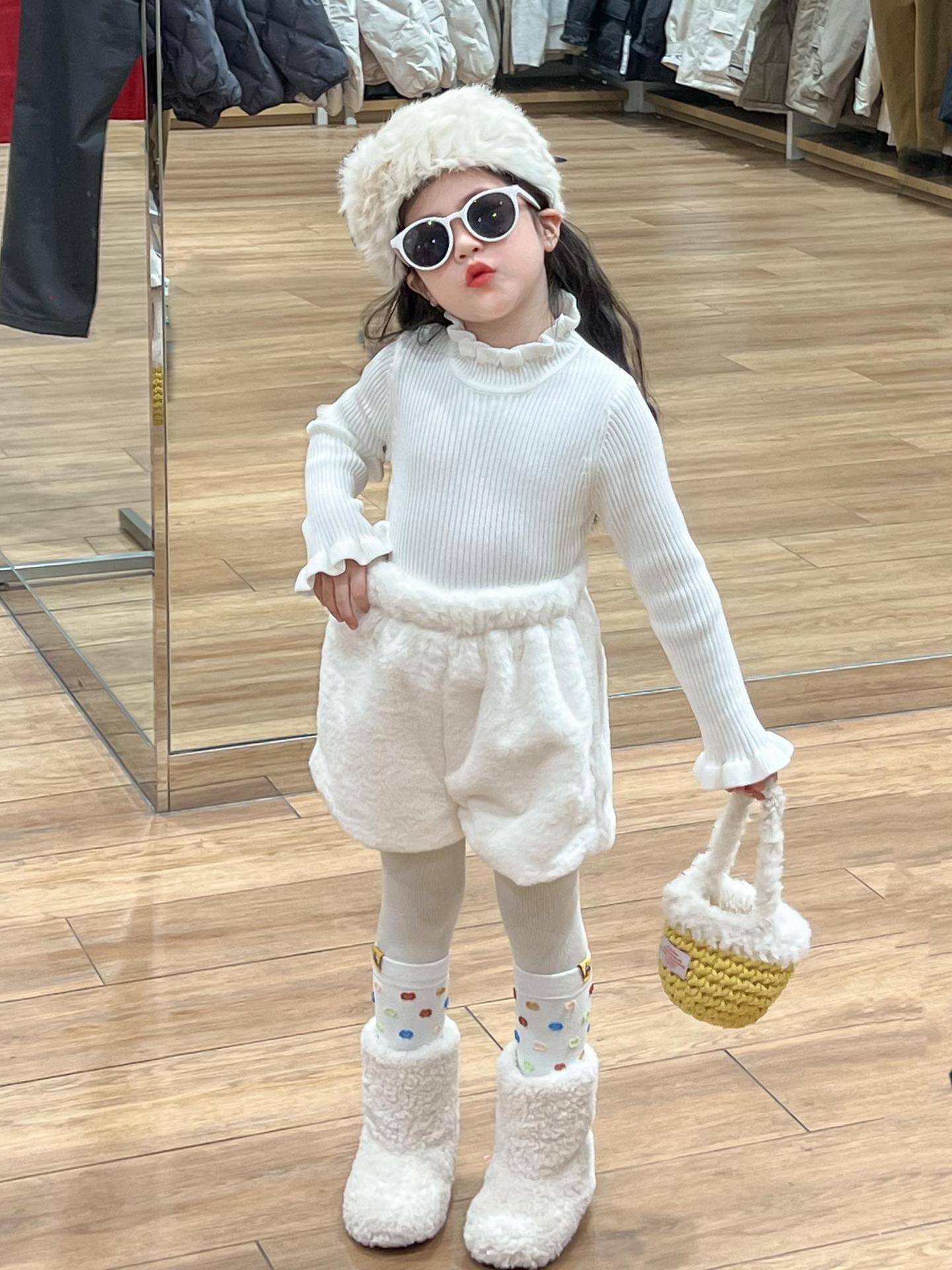 여자 겨울 노란색 다운 코튼 양복 조끼 화이트 레이스 높은 칼라 양모 베이스 스웨터 분할스토어 가기