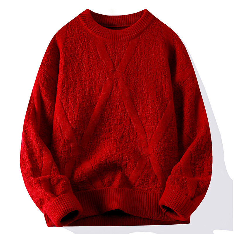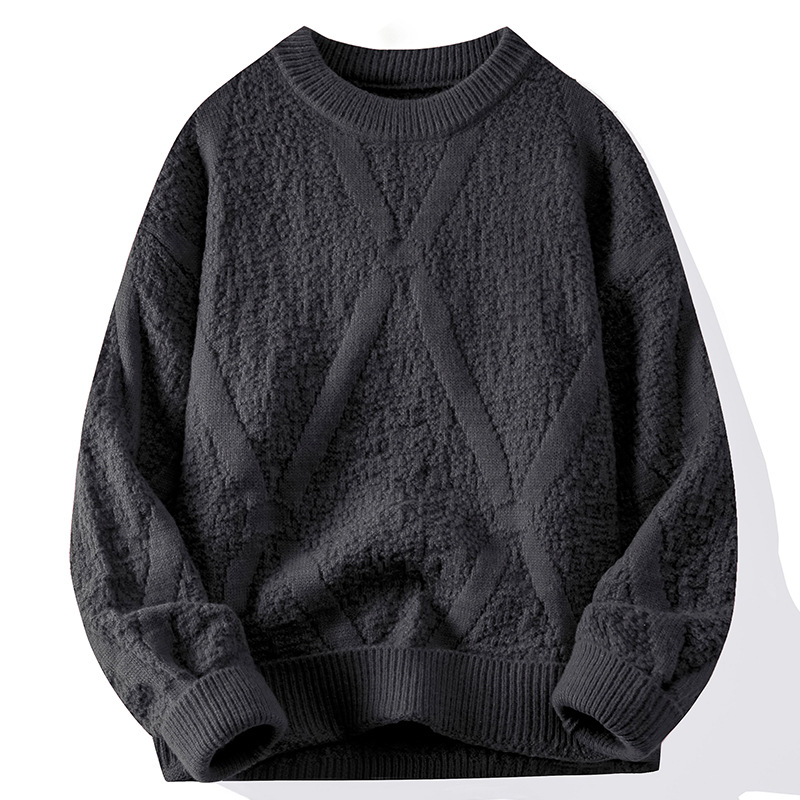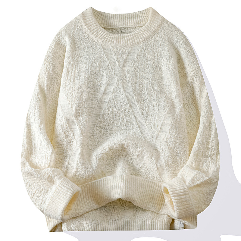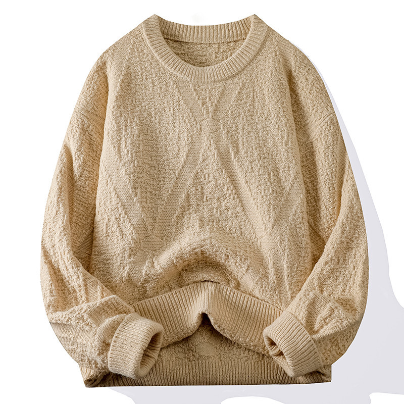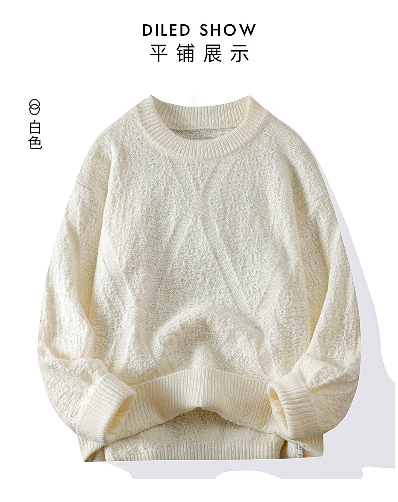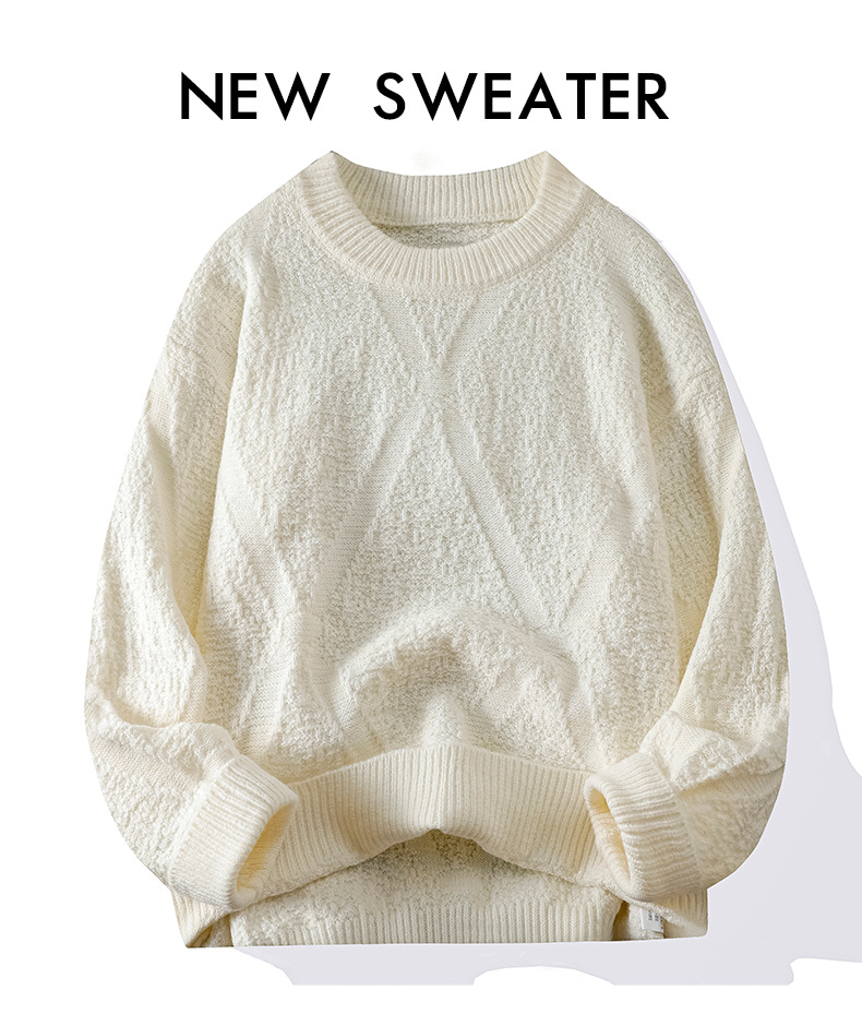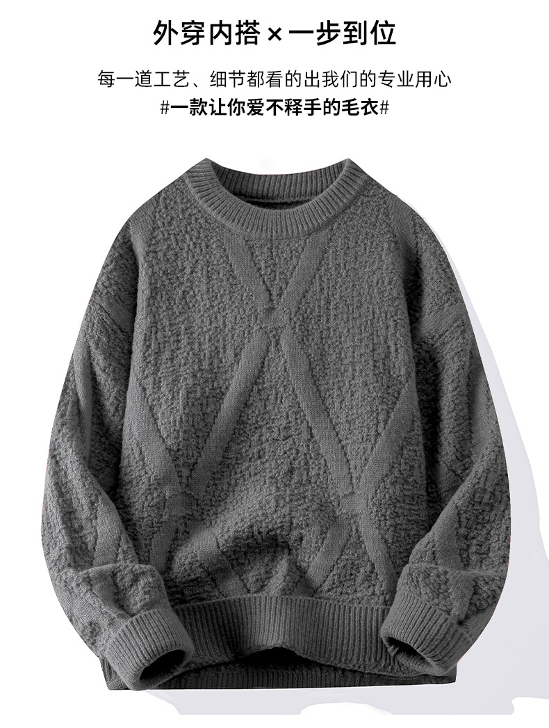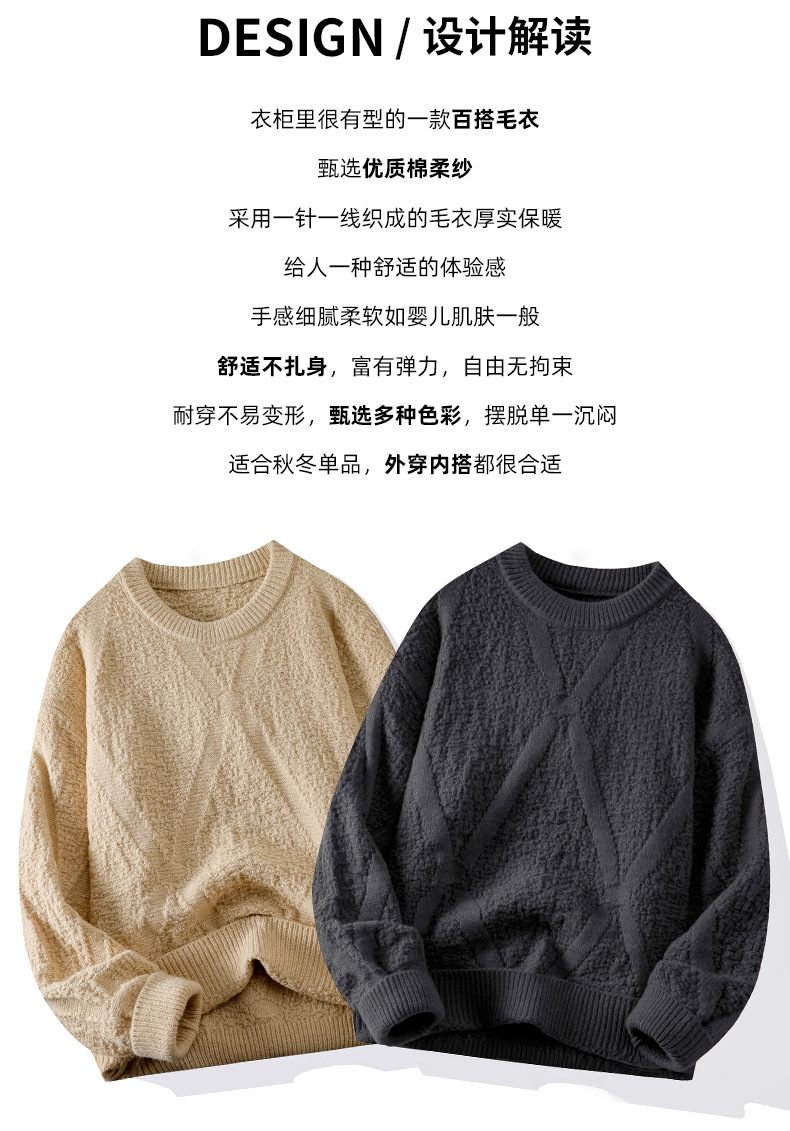 ACU 남성복 | 자카드 스웨터 남성용 루즈핏 트렌디 브랜드 2026 가을 겨울 다용도 라운드넥 스웨터 두꺼운 니트