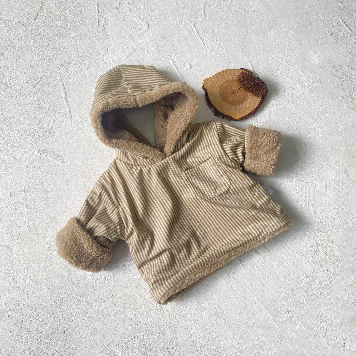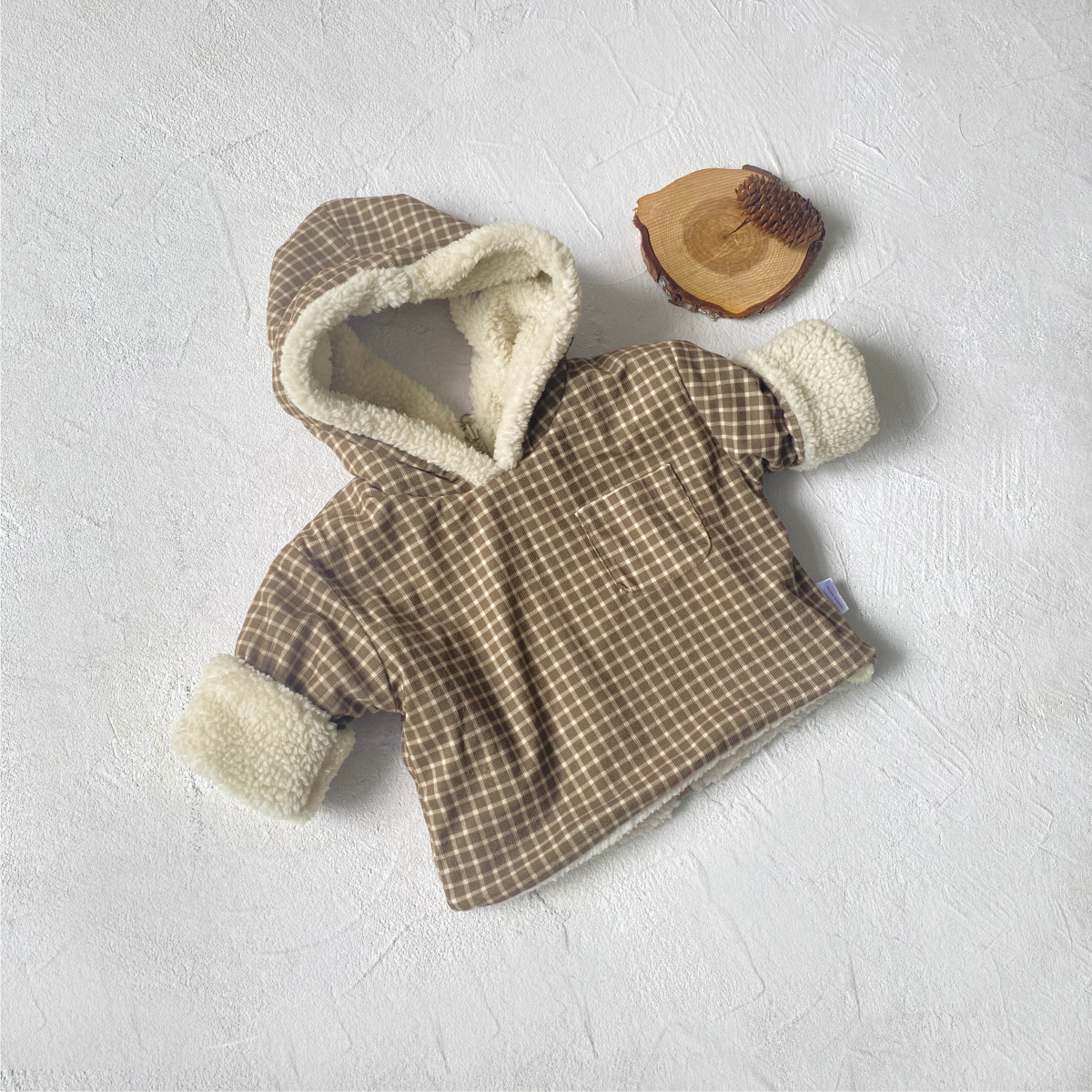 아기의 기모 격자 무늬 양면 후드 자켓 아기의 가을 및 겨울 착용 소년 소녀 어린이 바깥 쪽 따뜻한 탑 착용스토어 가기