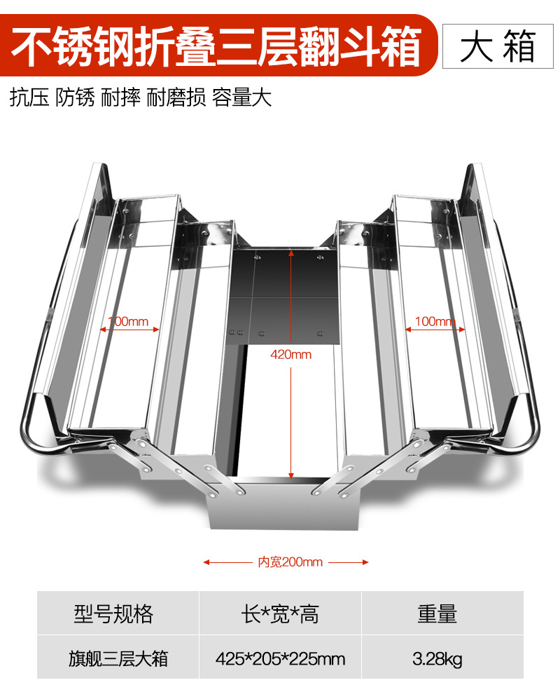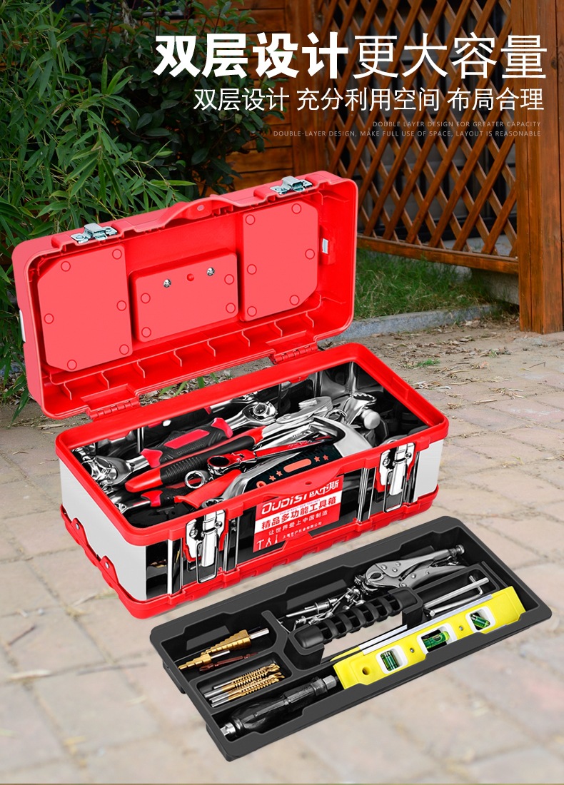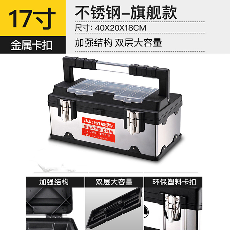 스테인레스 스틸 도구 상자 저장 상자 다층 트렁크 자동차 더블 오픈 대형 철 상자 접이식 가방 하드웨어스토어 가기