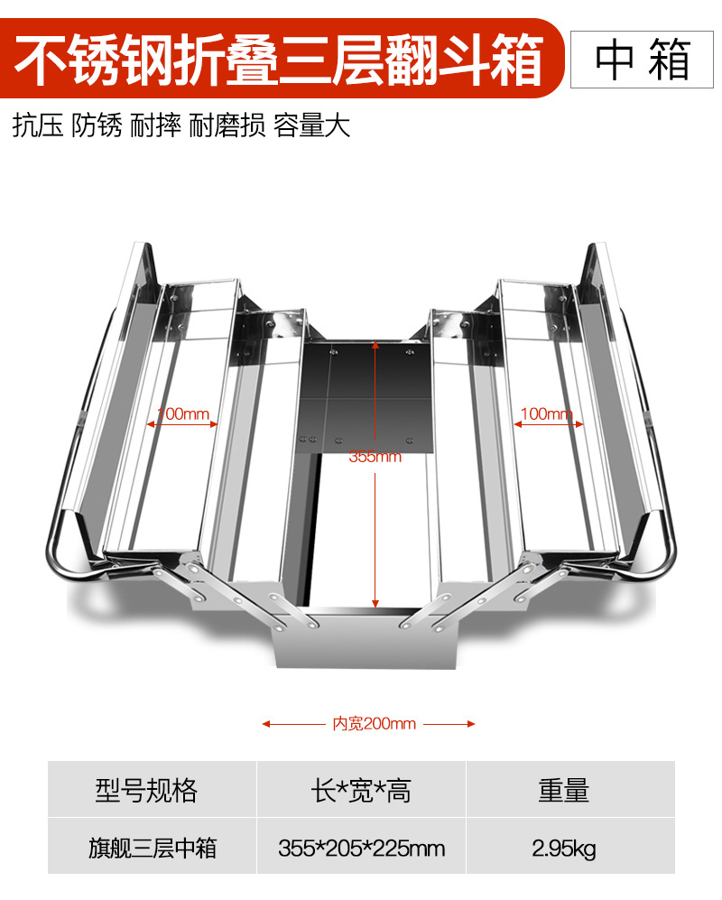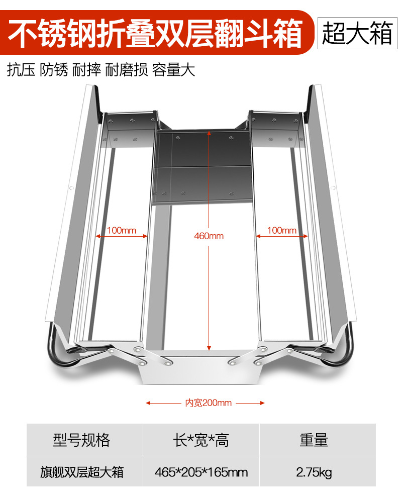 스테인레스 스틸 도구 상자 저장 상자 다층 트렁크 자동차 더블 오픈 대형 철 상자 접이식 가방 하드웨어