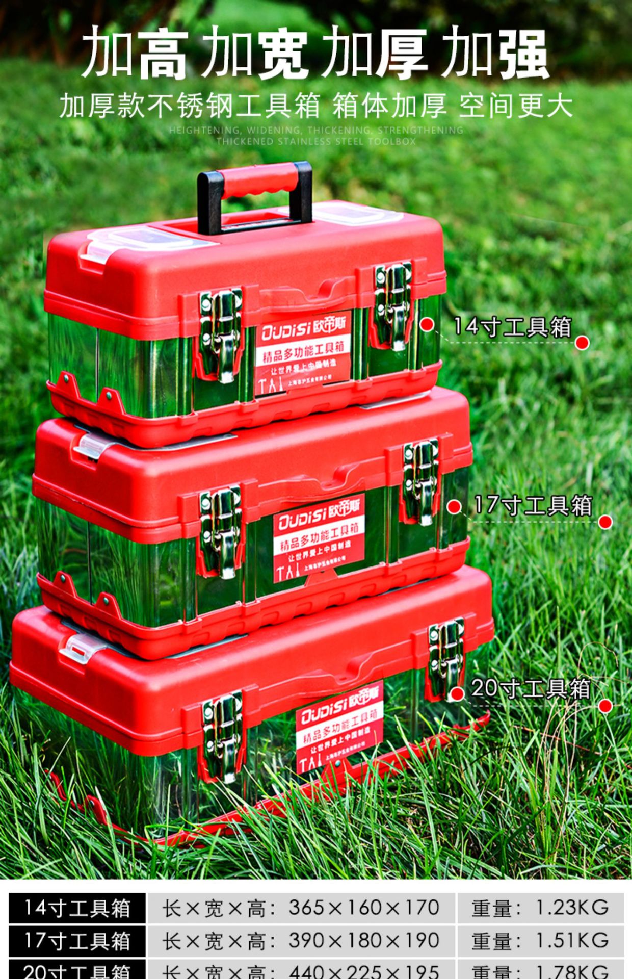 • 14inch 스테인레스 스틸 도구 상자 [강화 강화 재료]