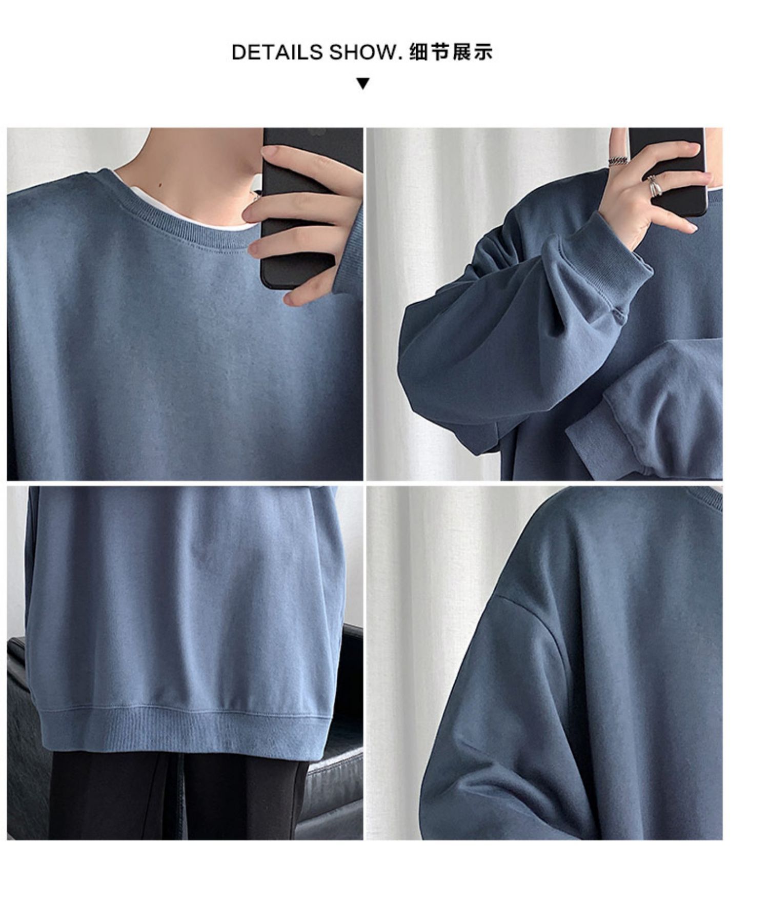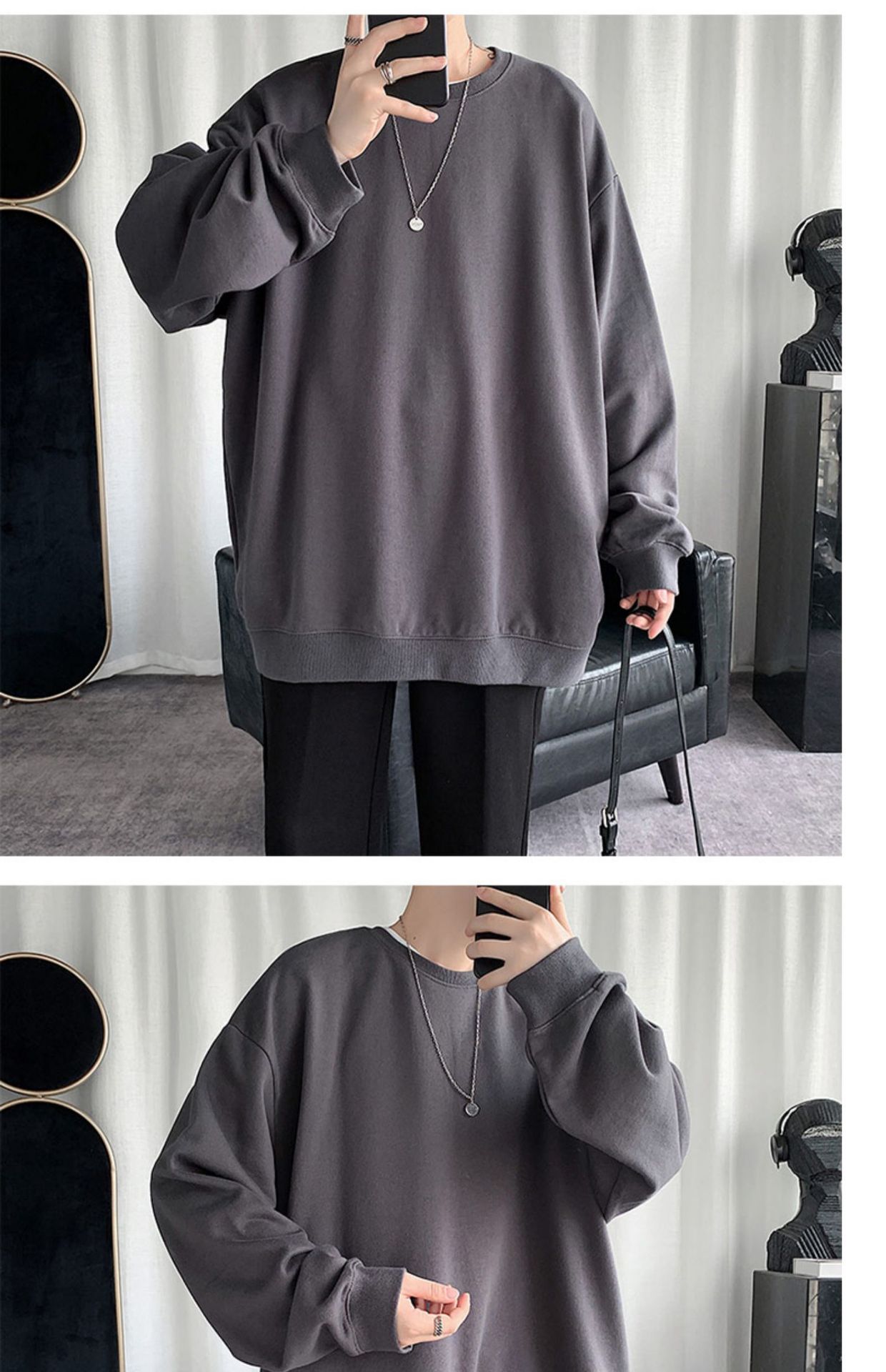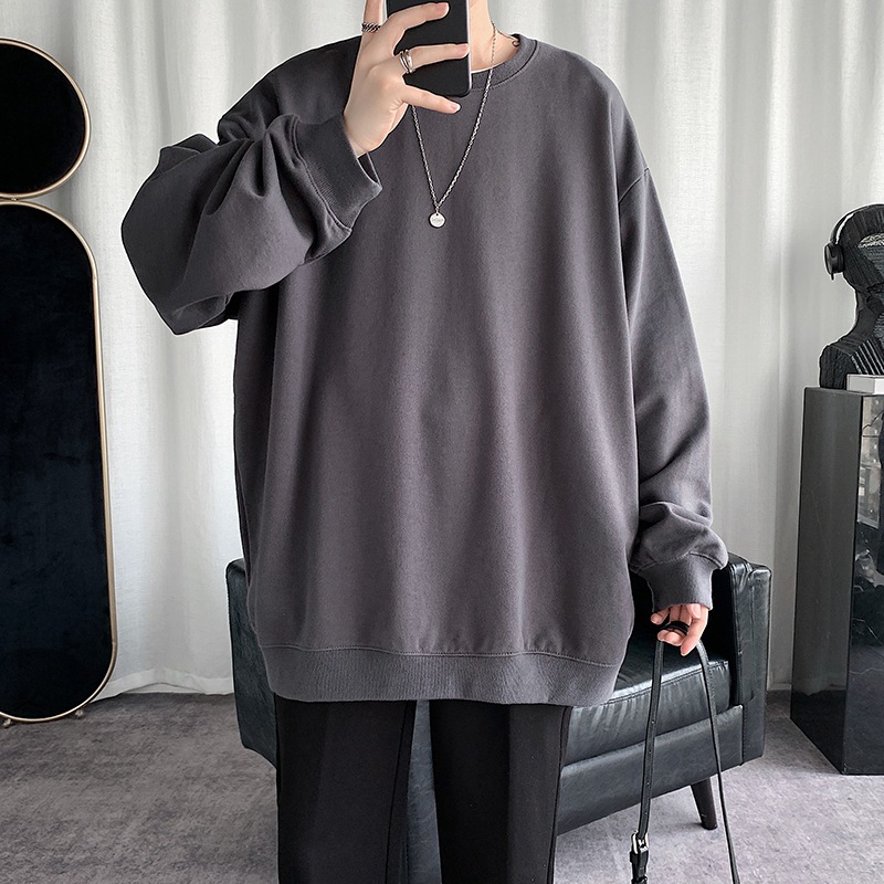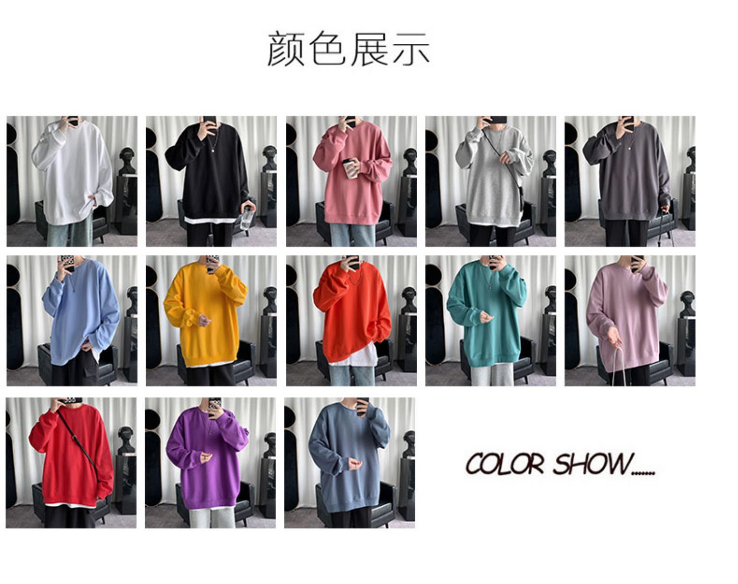 솔리드 컬러 스웨트 셔츠 봄과 가을 남자 라운드 넥 느슨한 긴 소매 한국 트렌디 풀오버 트렌디 올 매치 캐주얼 재킷스토어 가기
