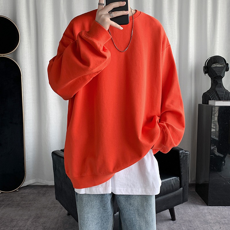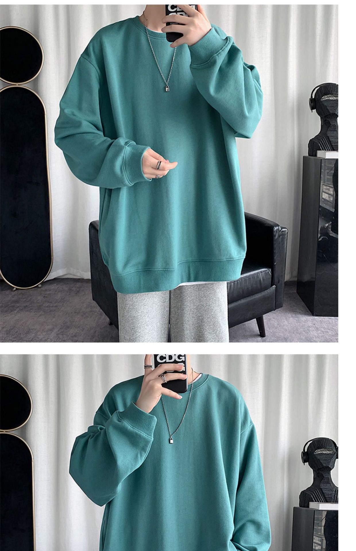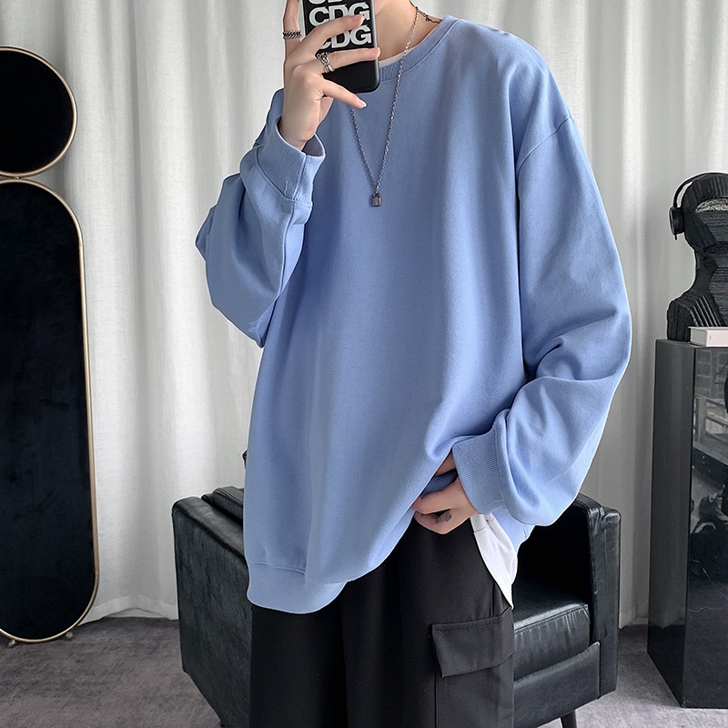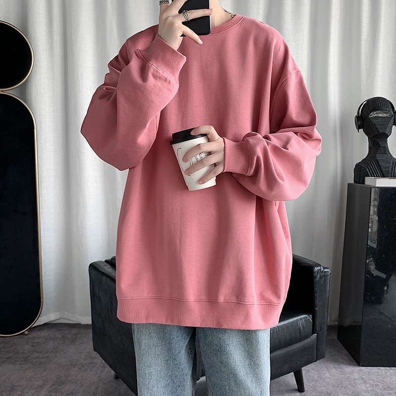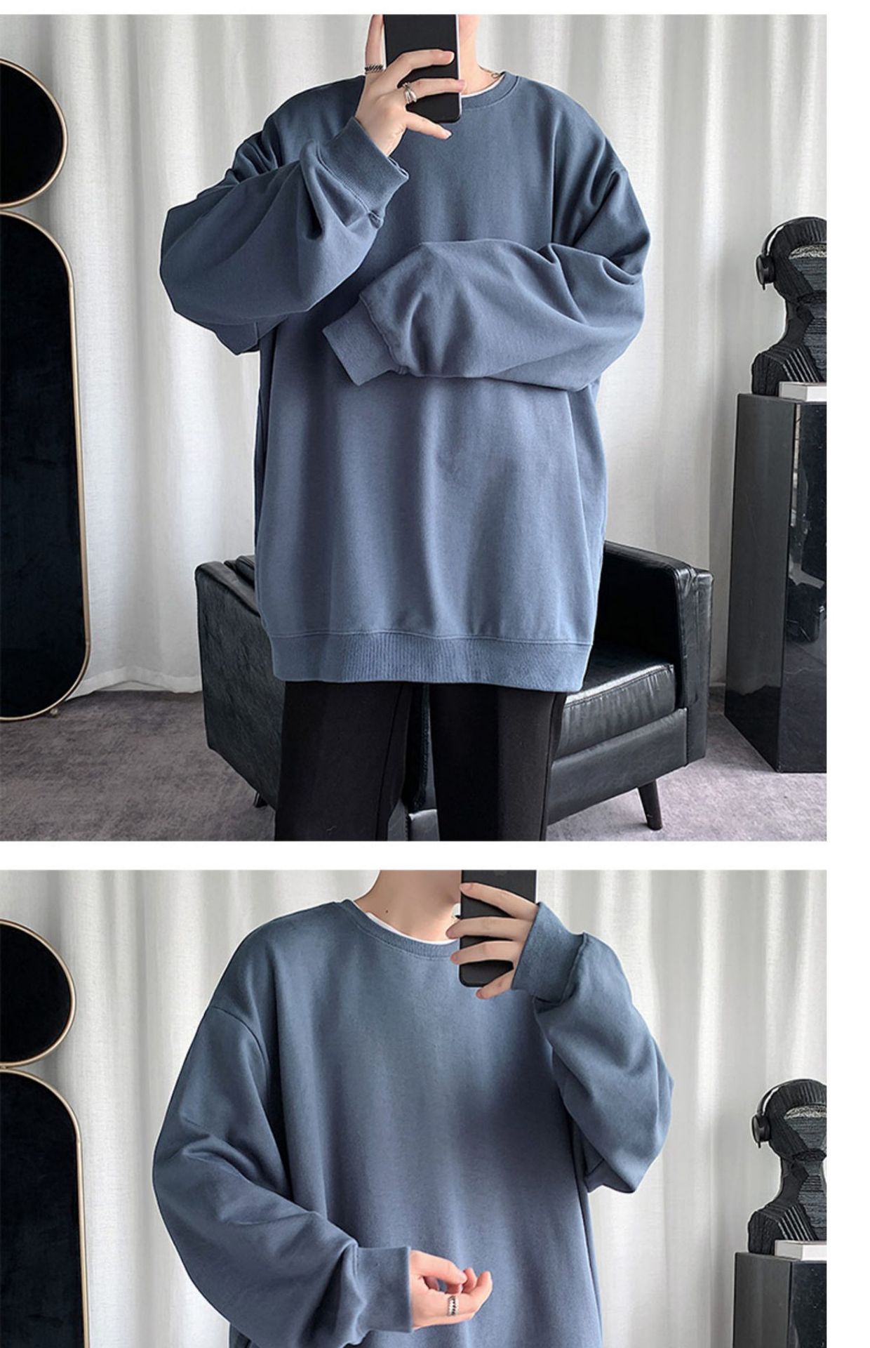 솔리드 컬러 스웨트 셔츠 봄과 가을 남자 라운드 넥 느슨한 긴 소매 한국 트렌디 풀오버 트렌디 올 매치 캐주얼 재킷스토어 가기