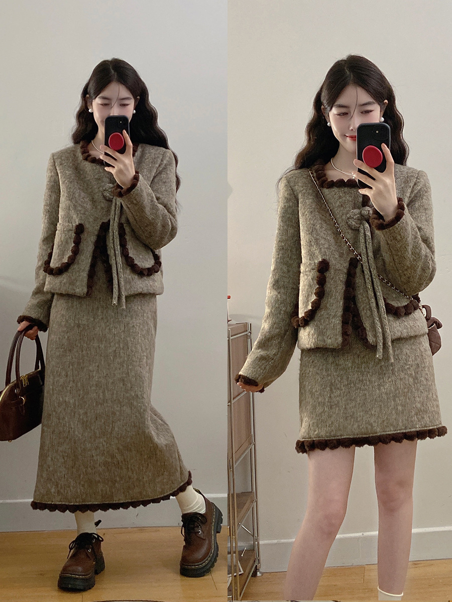 2024 겨울 새 플러스 사이즈 여자 공주 세트 샤넬 쇼트 코트 탑 스커트 투피스 세트스토어 가기