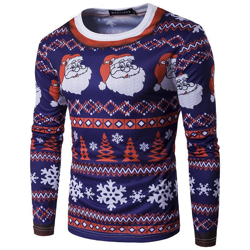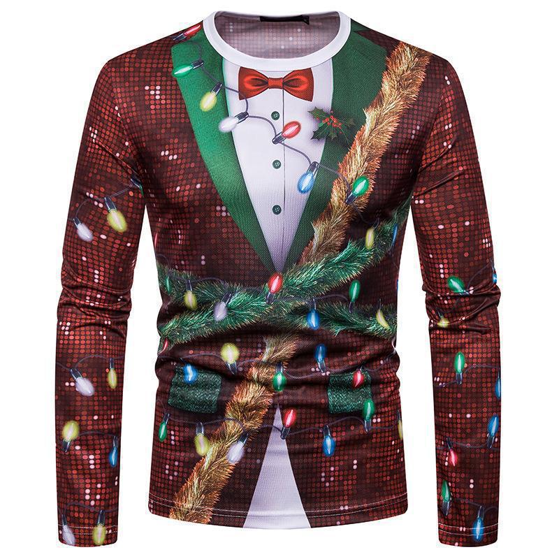 국경 2023 새로운 유럽과 미국 남성의 크리스마스 3D 디지털 인쇄 긴 소매 티셔츠 청소년 캐주얼 라운드 넥 탑