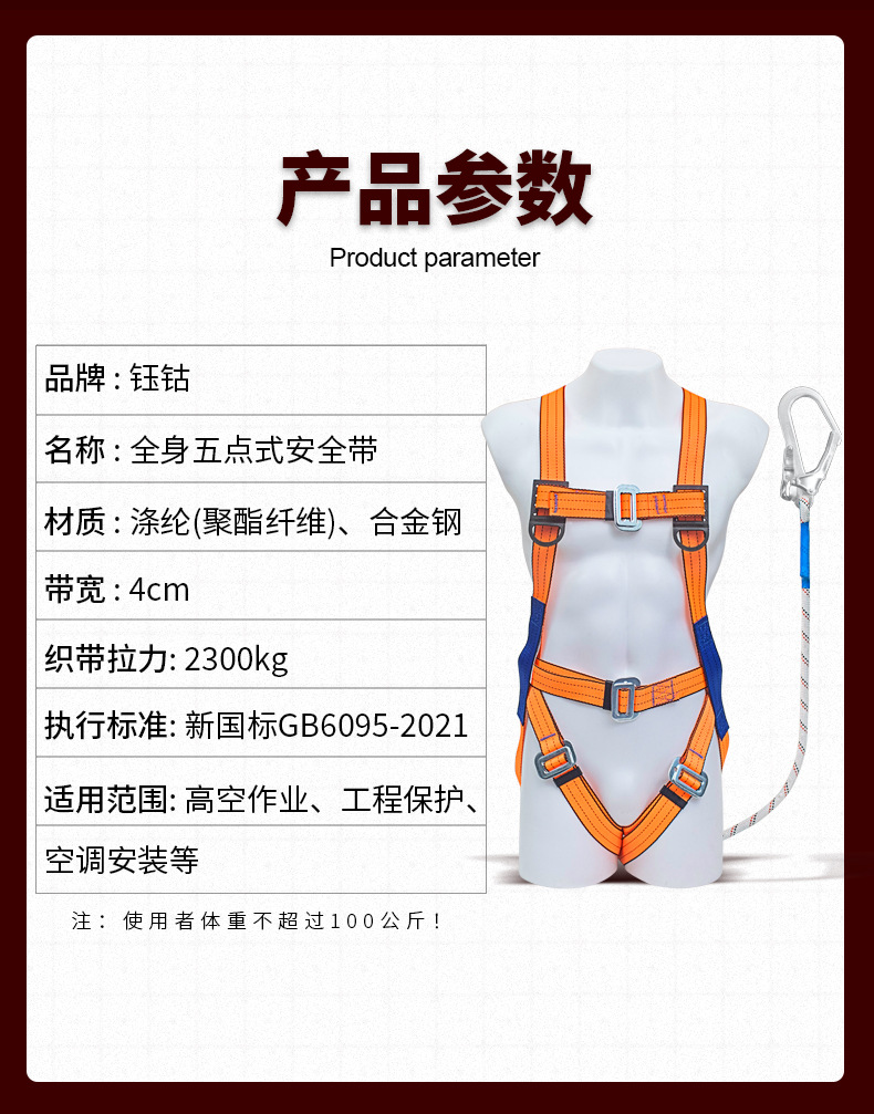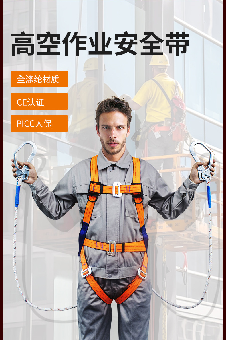 공중 작업을위한 새로운 국가 표준 5 5 점 전신 안전 벨트 유럽식 이중 대형 후크 버퍼 패키지 전원 안전 벨트