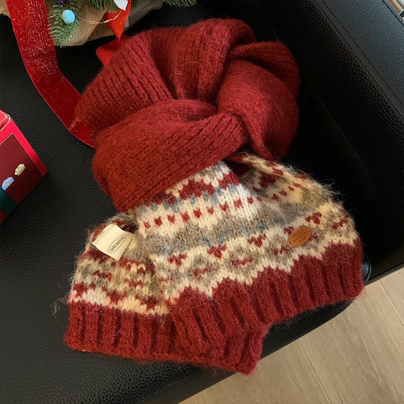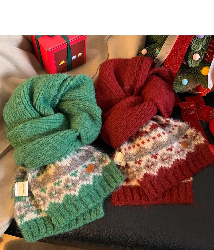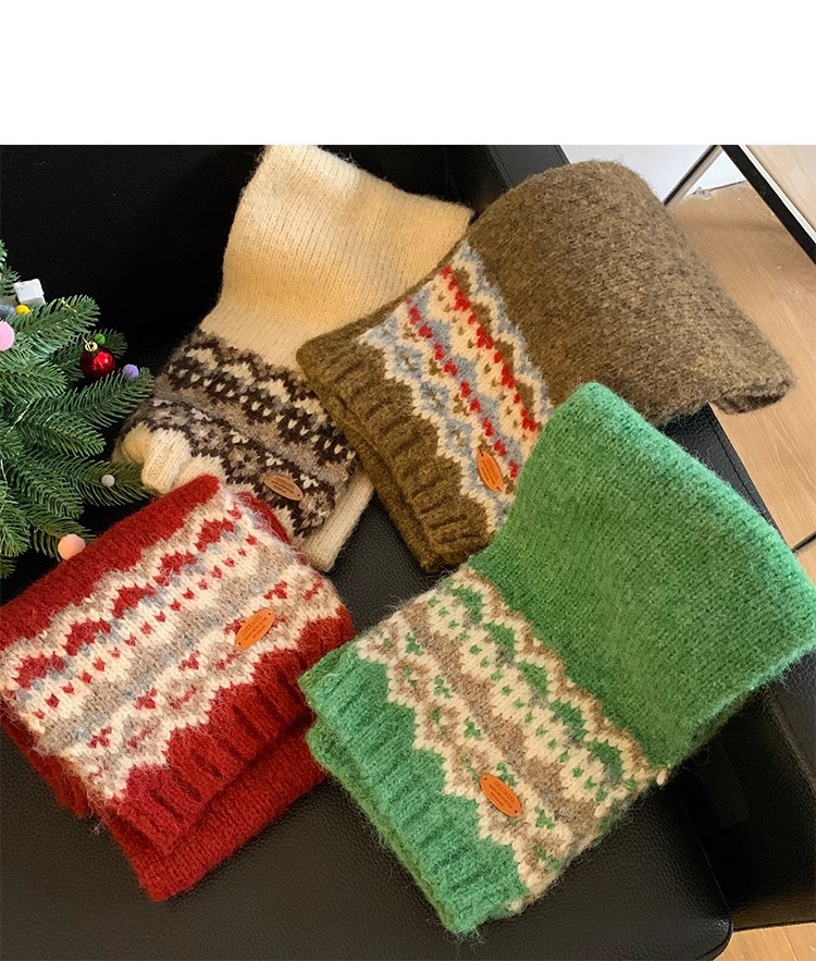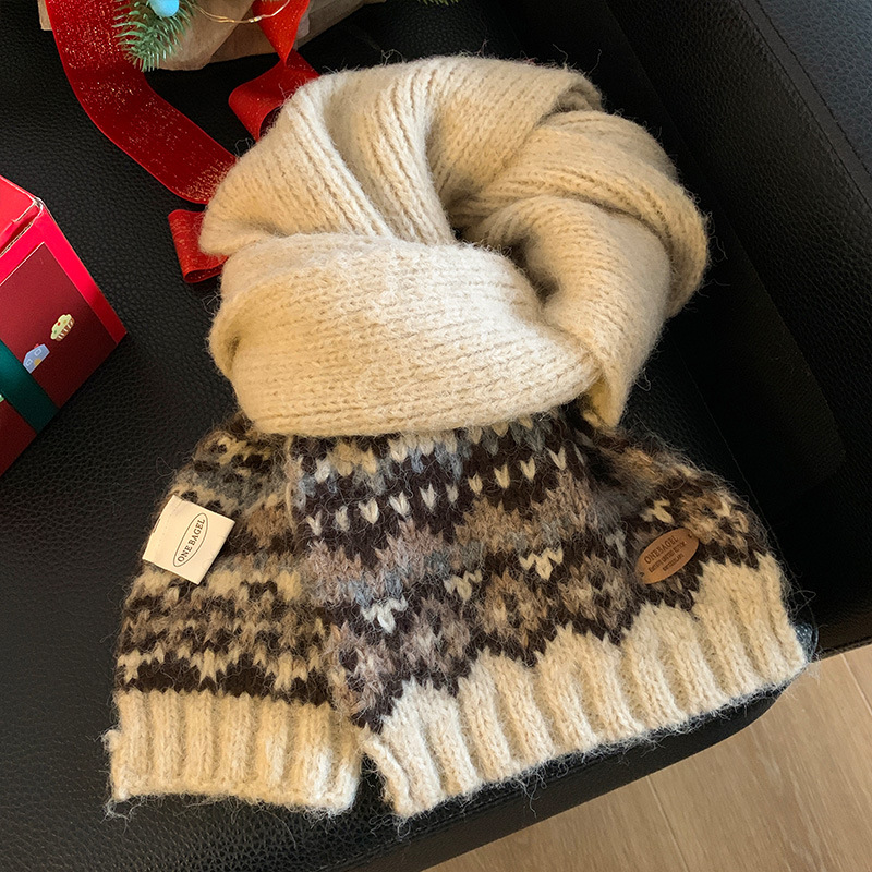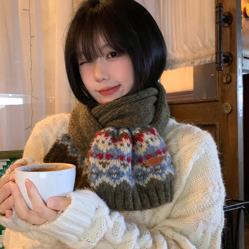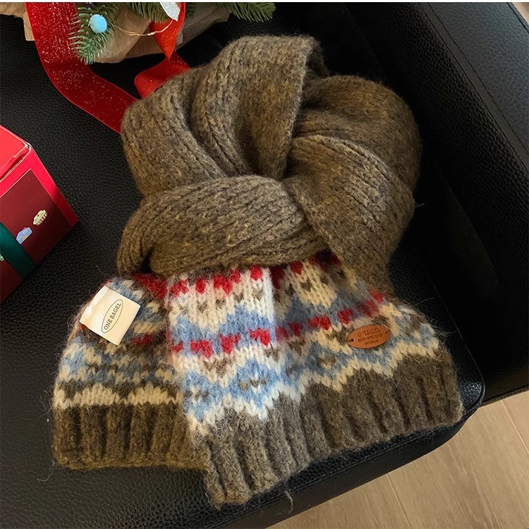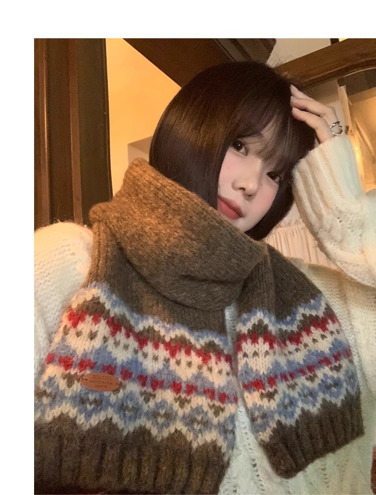 페어아일랜드 다크 브라운 니트 스카프 여성 2024 겨울 한국 분위기 따뜻한 조커 학생 목 보호 스카프