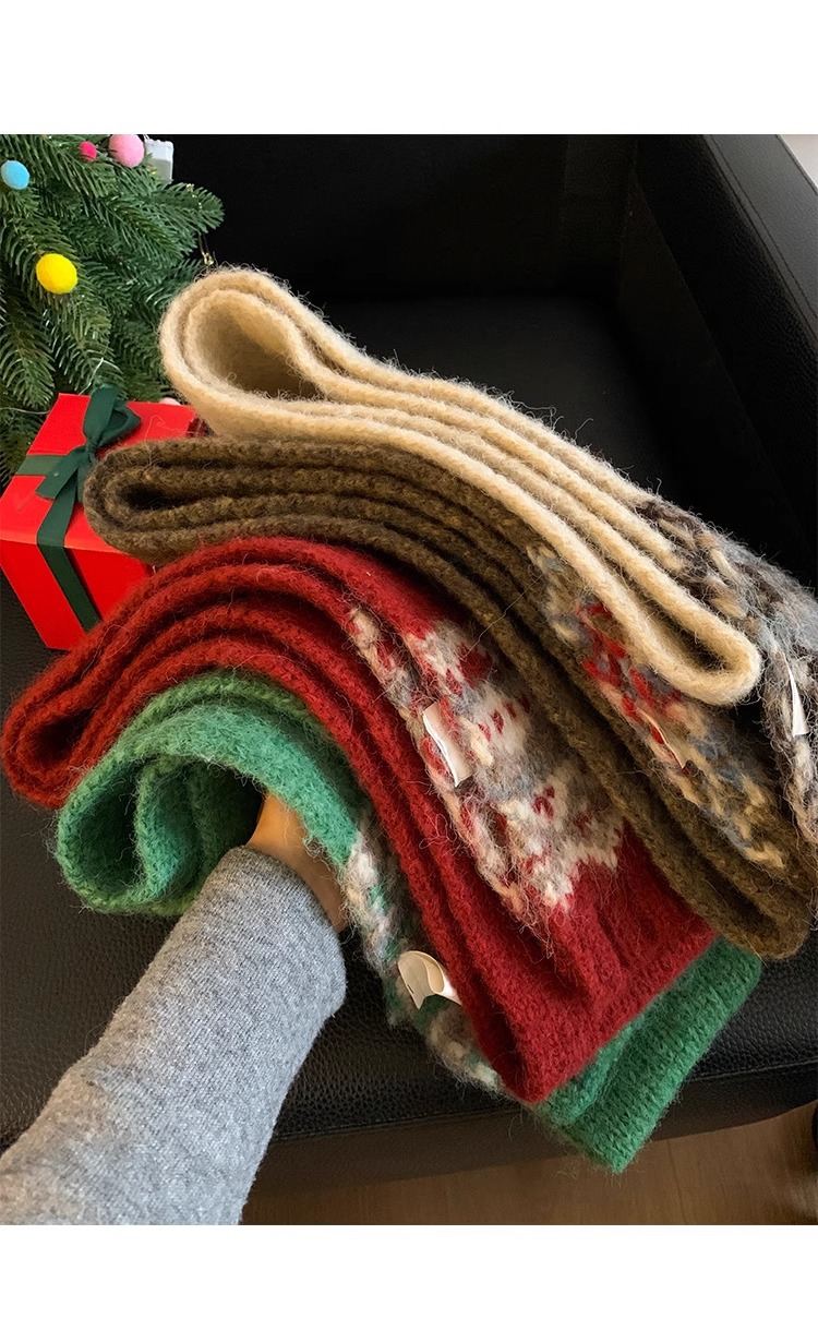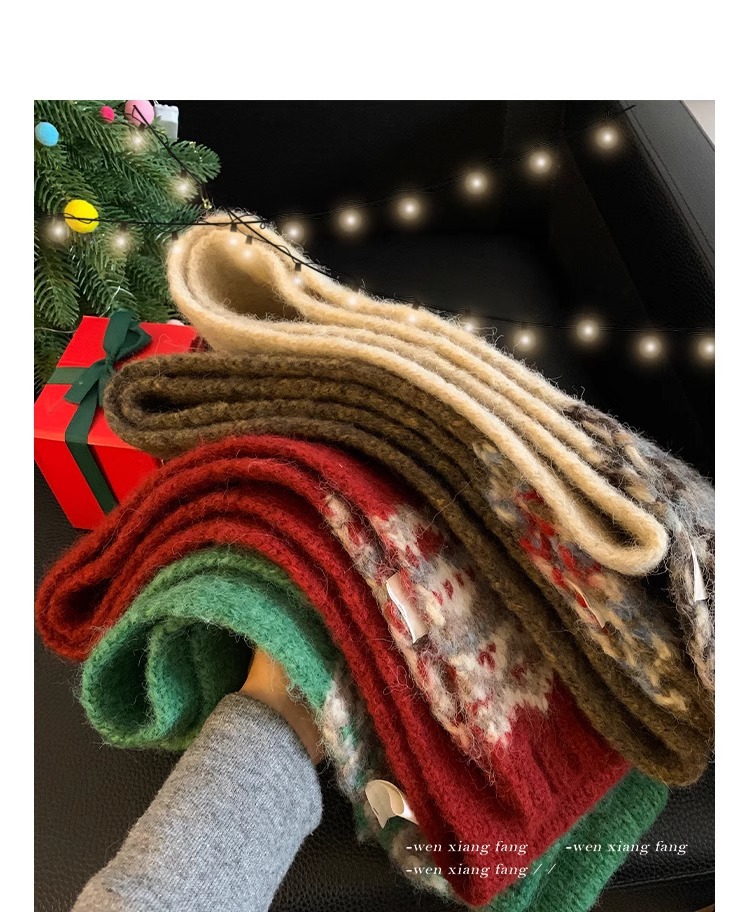 페어아일랜드 다크 브라운 니트 스카프 여성 2024 겨울 한국 분위기 따뜻한 조커 학생 목 보호 스카프스토어 가기