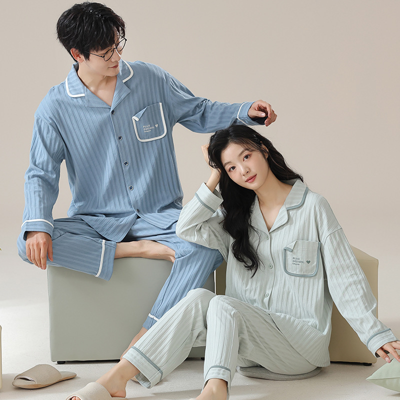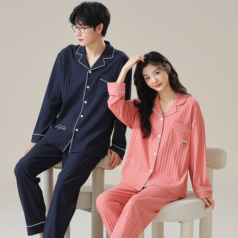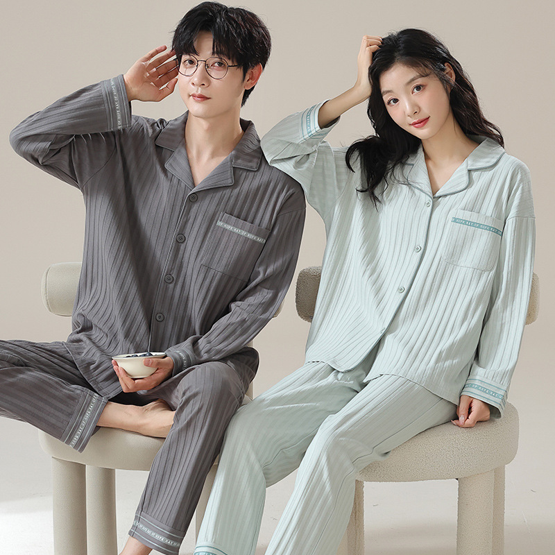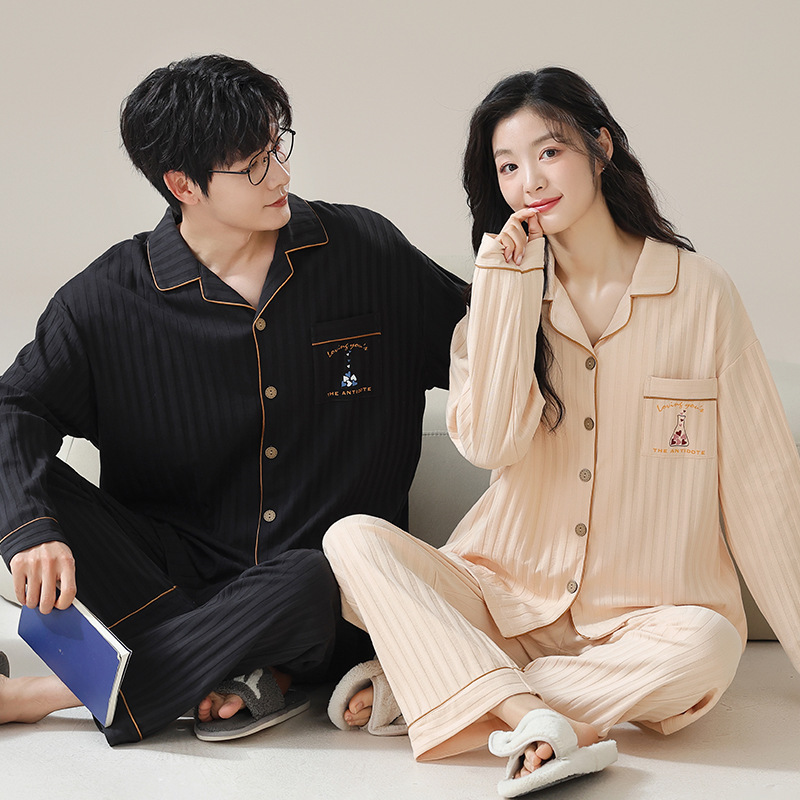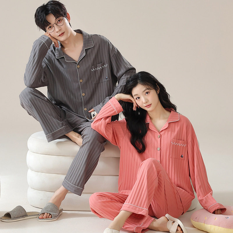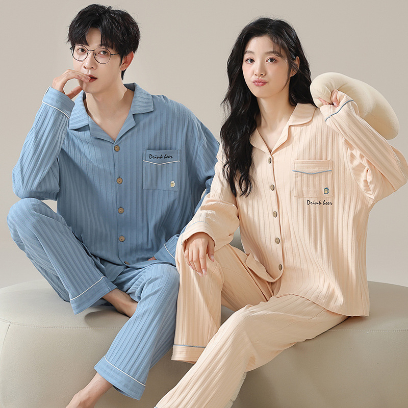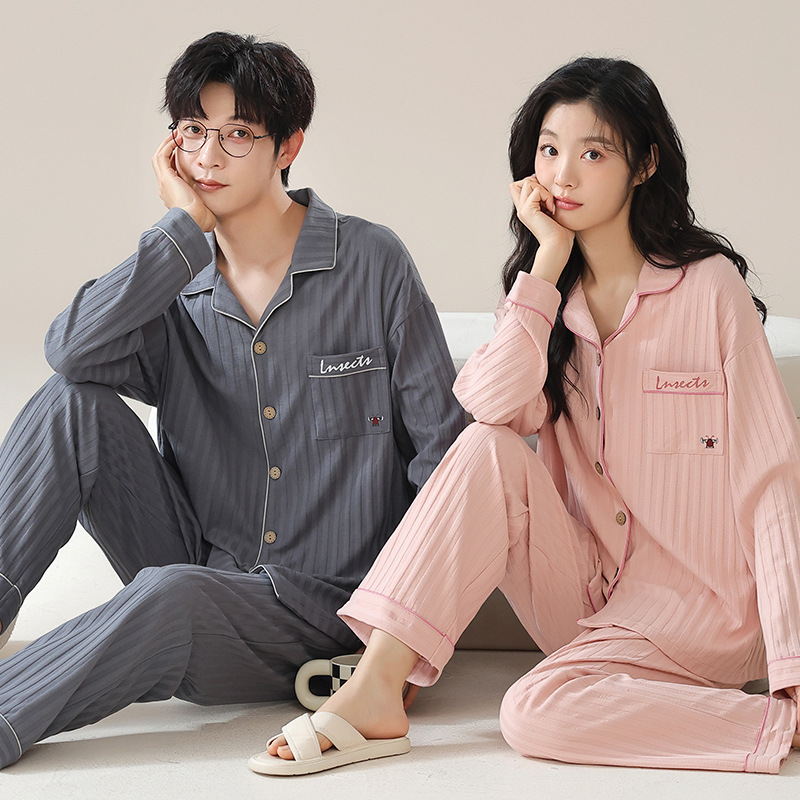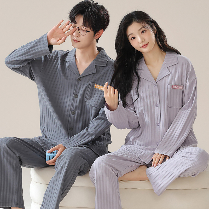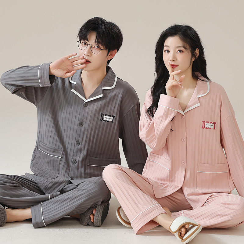 커플 잠옷 남자와 여자의 봄과 가을 가정 옷을 입고 커플 카디건 긴 소매 바지 세트 가을스토어 가기