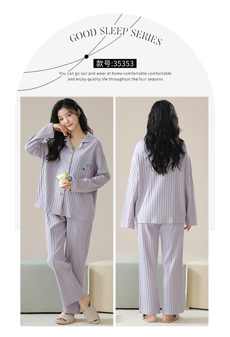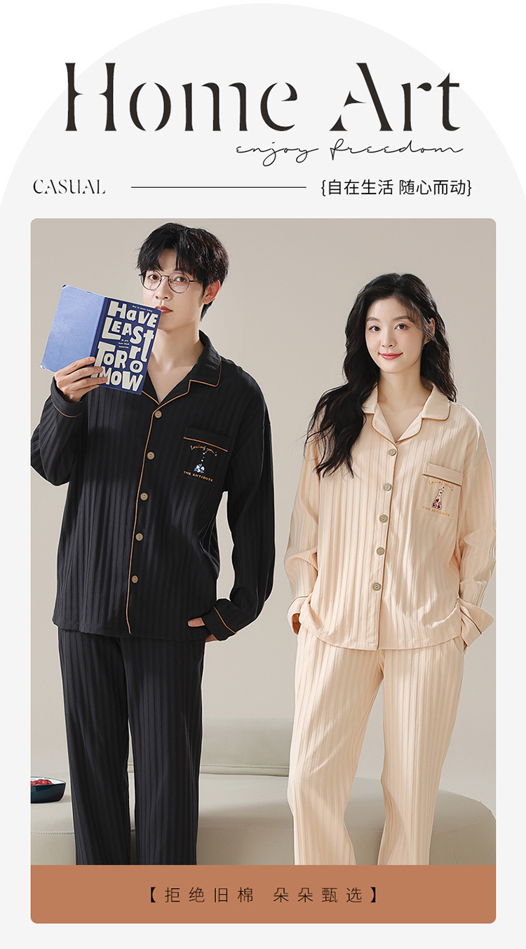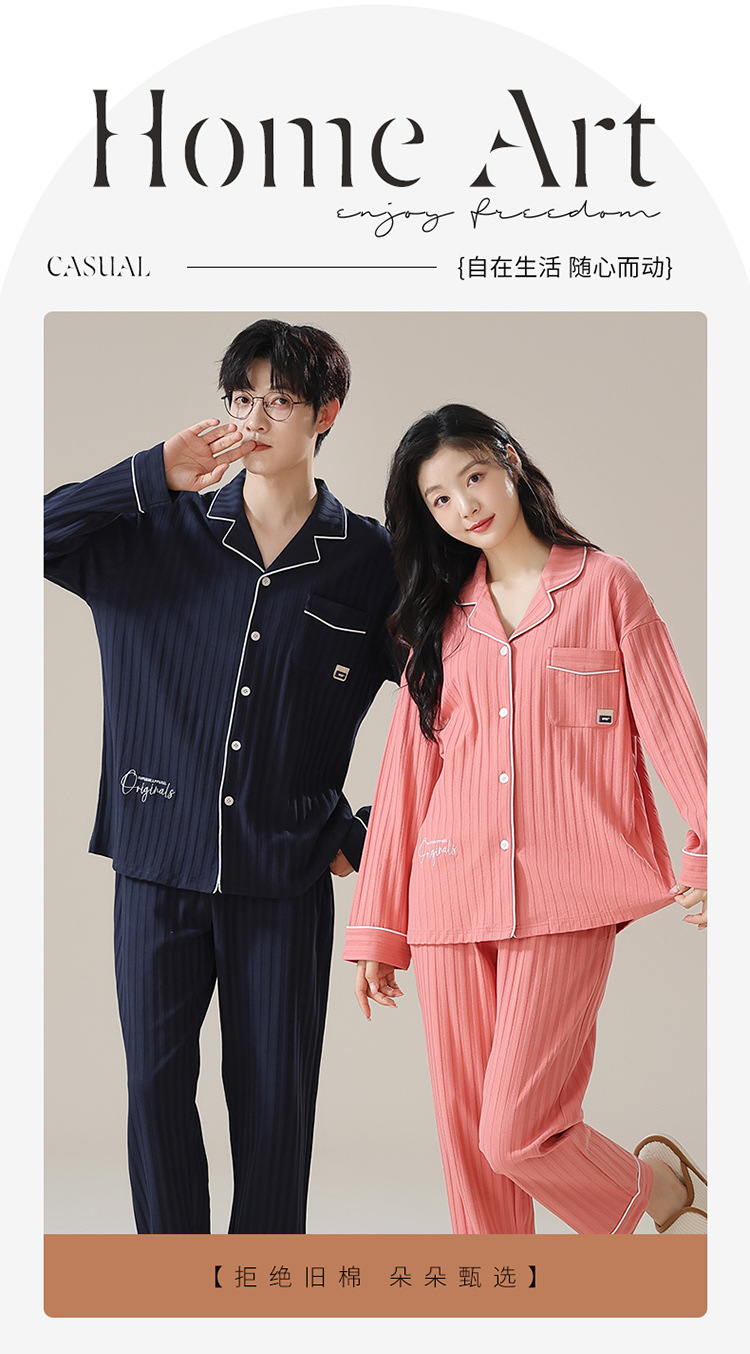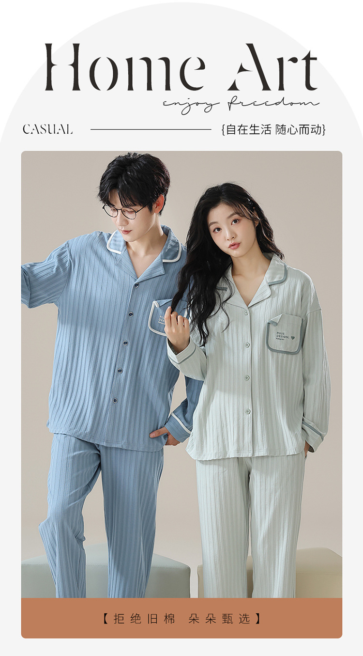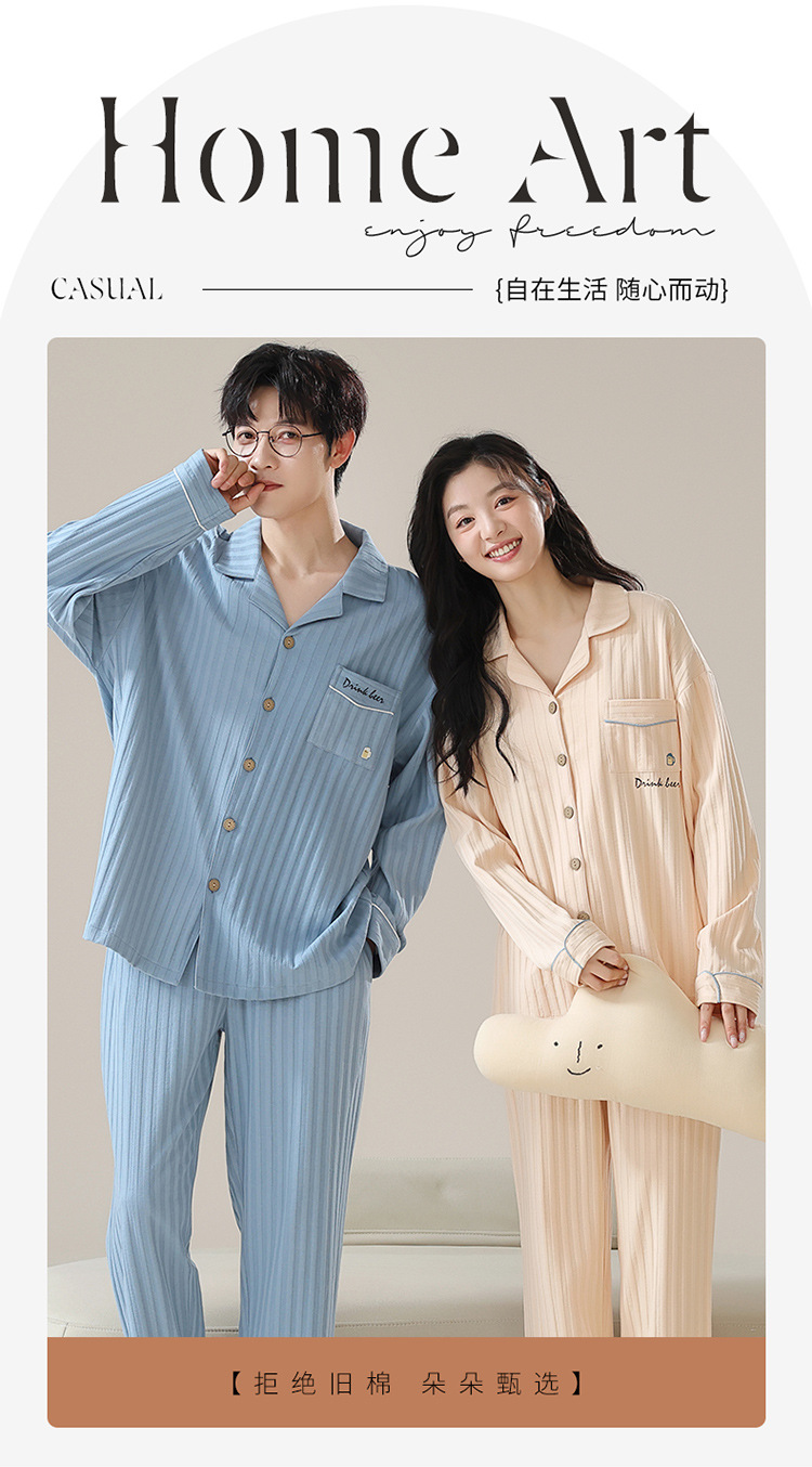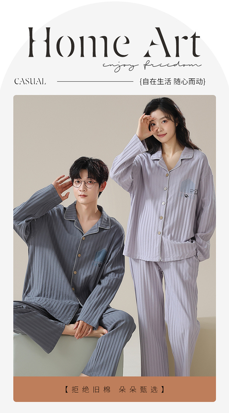 커플 잠옷 남자와 여자의 봄과 가을 가정 옷을 입고 커플 카디건 긴 소매 바지 세트 가을스토어 가기