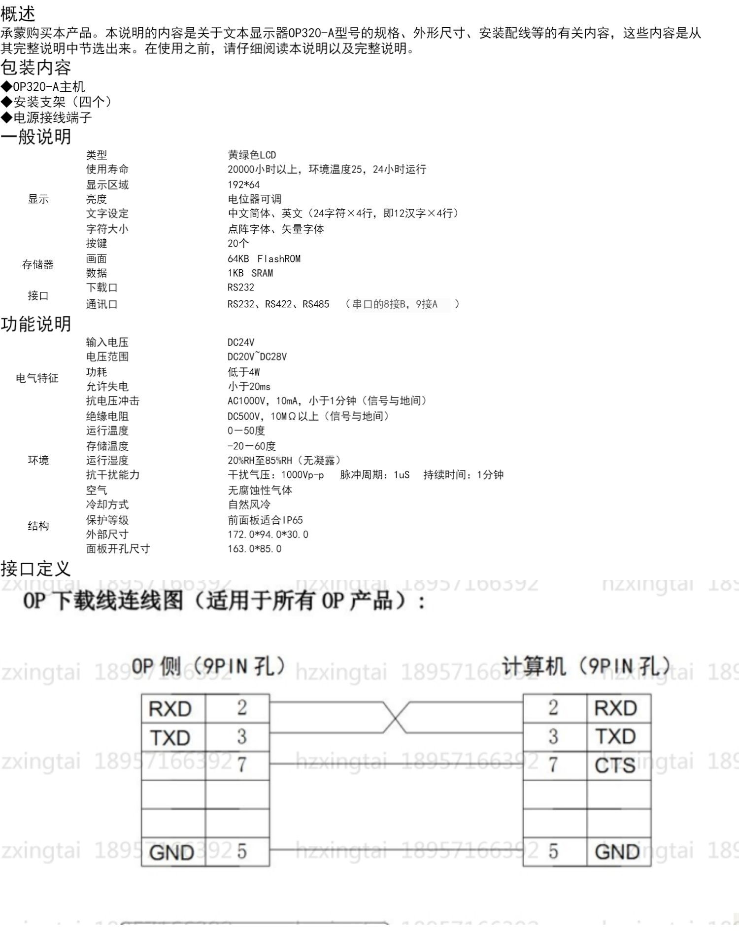 • Xinjie PLC 통신 라인이 포함된 텍스트 OP320-A