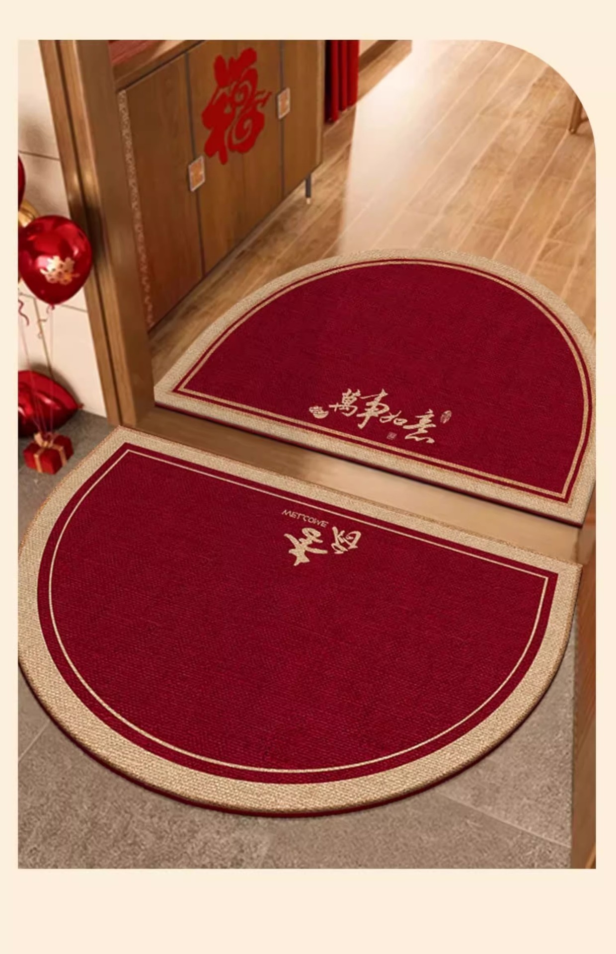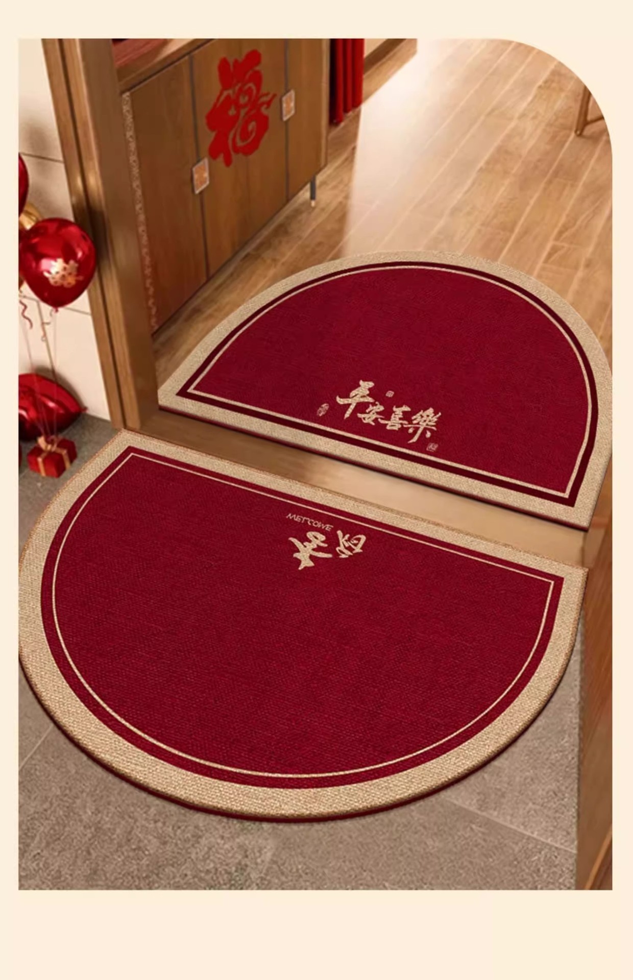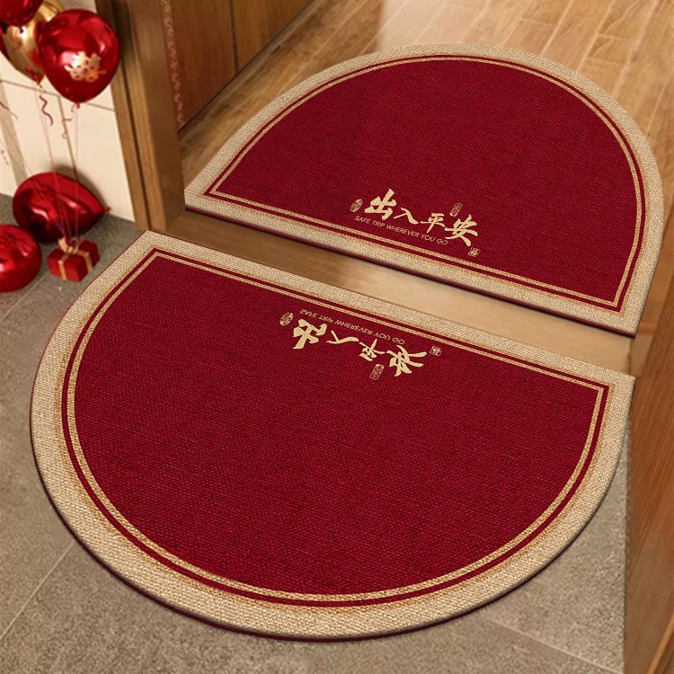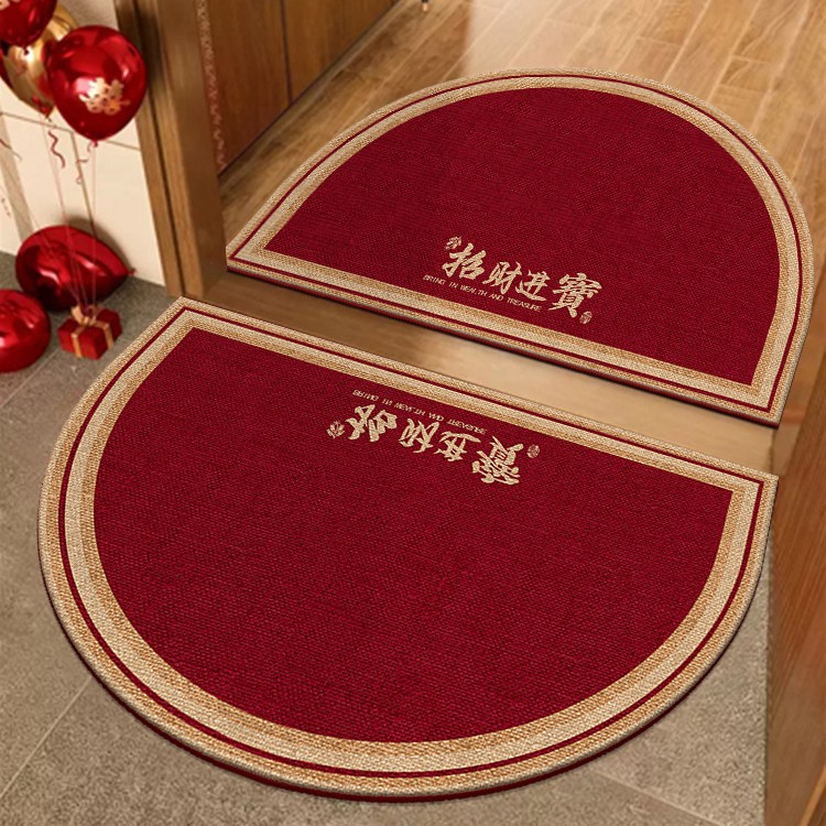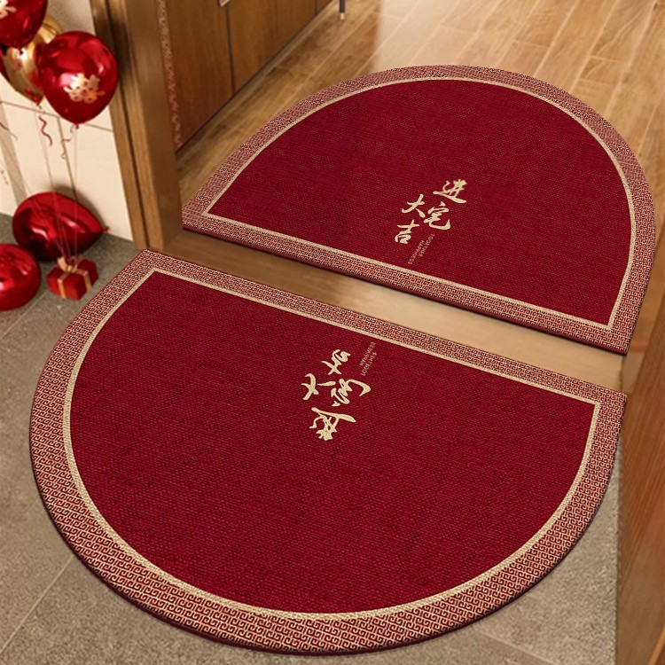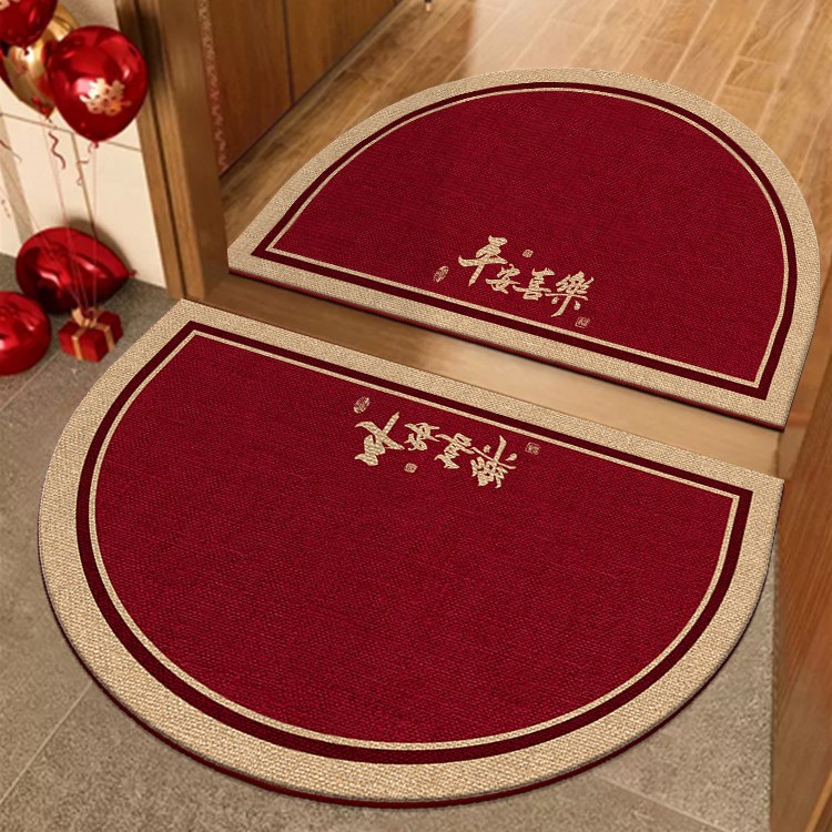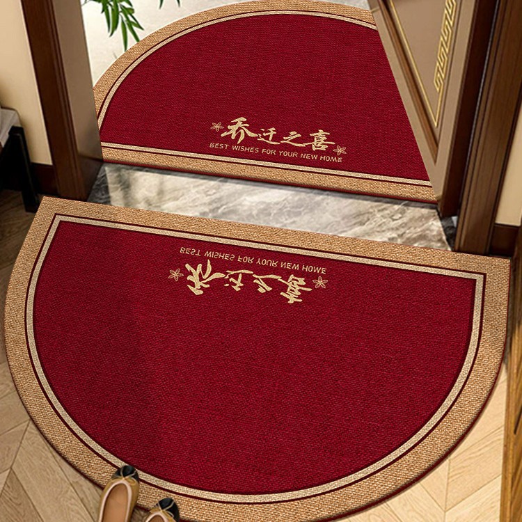반원형 인쇄 입구 문 바닥 매트, 고급 흡수성 미끄럼 방지 매트, 입구 공간 빨간색 문 매트, 얼룩 방지 크리스탈 벨벳 카펫