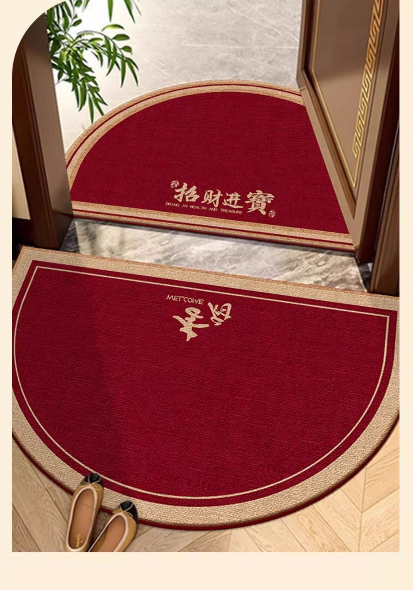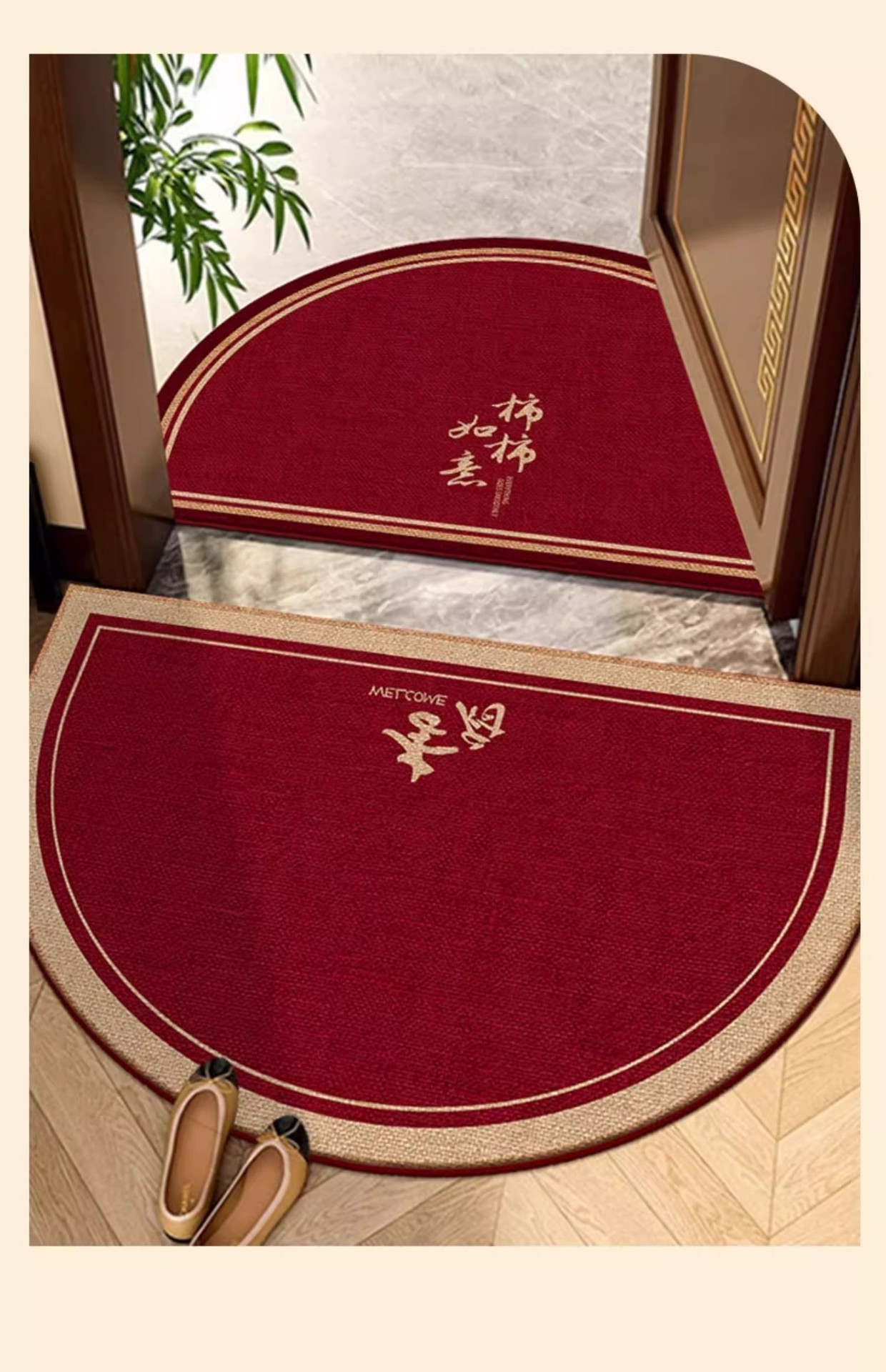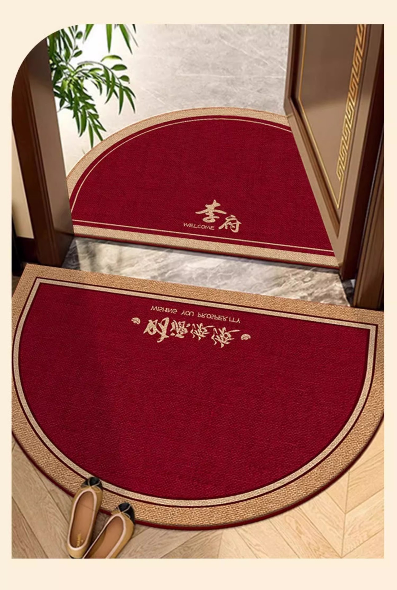 반원형 인쇄 입구 문 바닥 매트, 고급 흡수성 미끄럼 방지 매트, 입구 공간 빨간색 문 매트, 얼룩 방지 크리스탈 벨벳 카펫스토어 가기