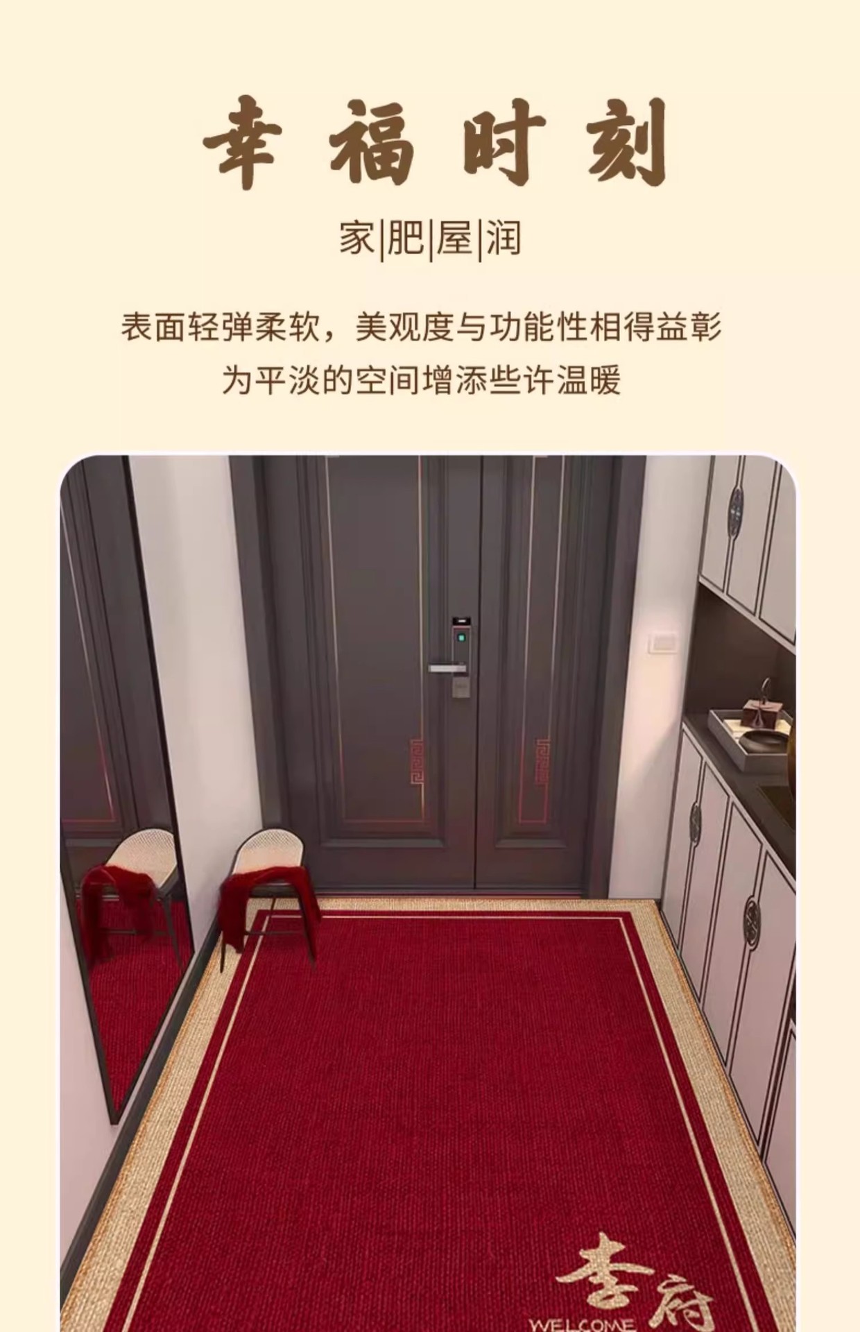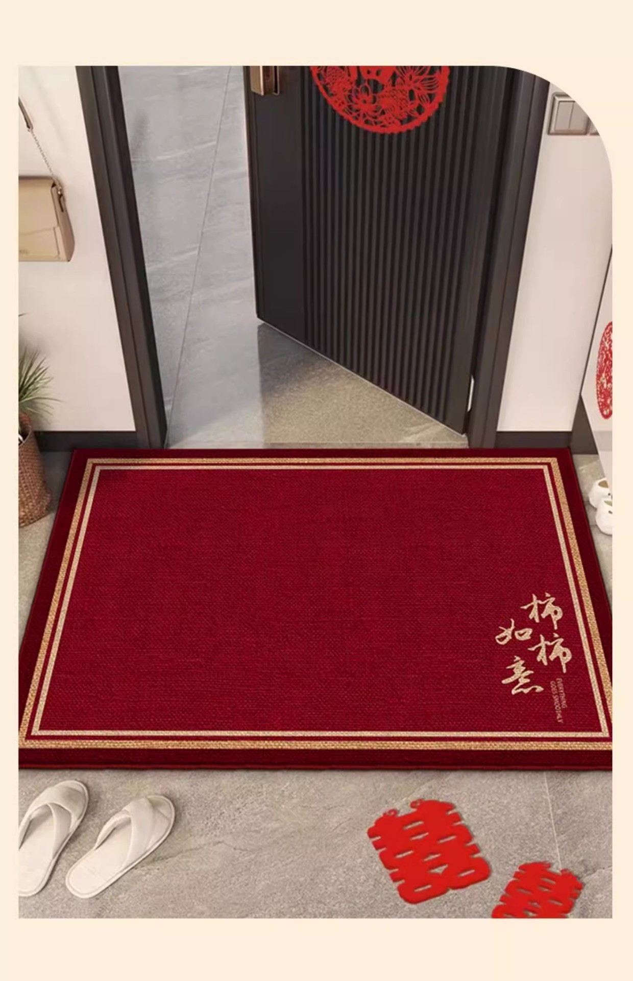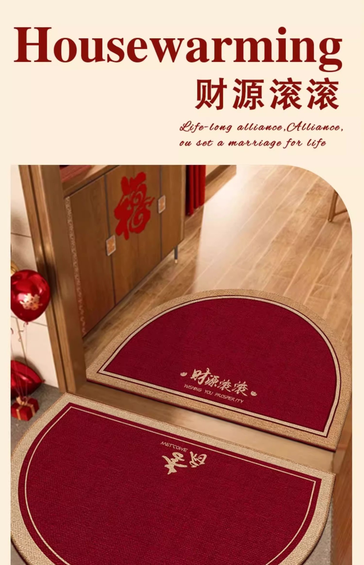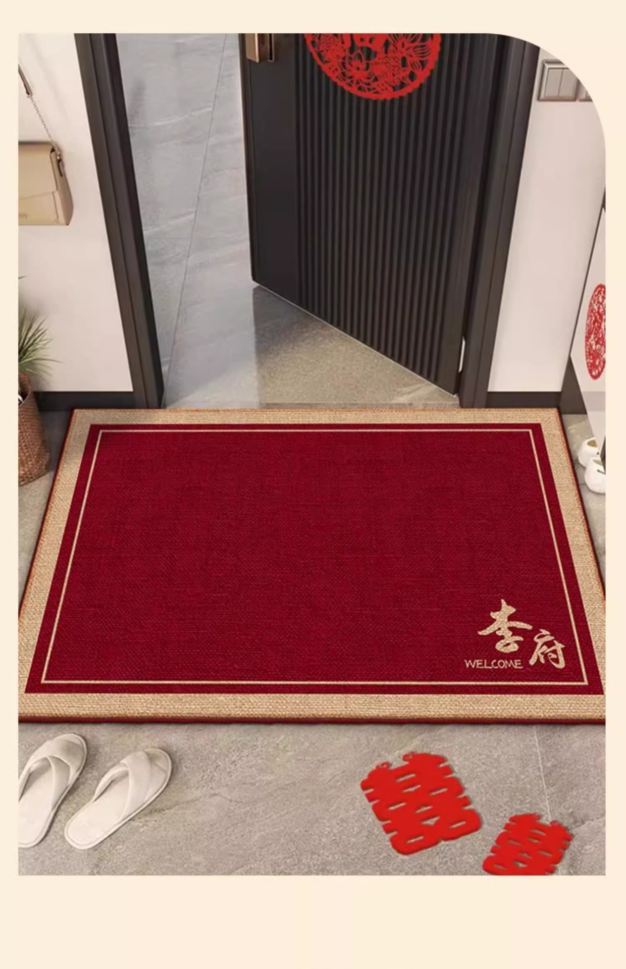 반원형 인쇄 입구 문 바닥 매트, 고급 흡수성 미끄럼 방지 매트, 입구 공간 빨간색 문 매트, 얼룩 방지 크리스탈 벨벳 카펫스토어 가기