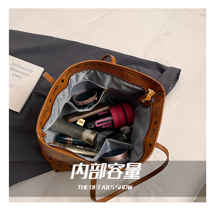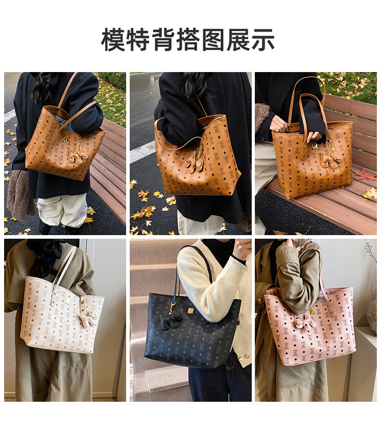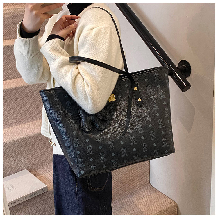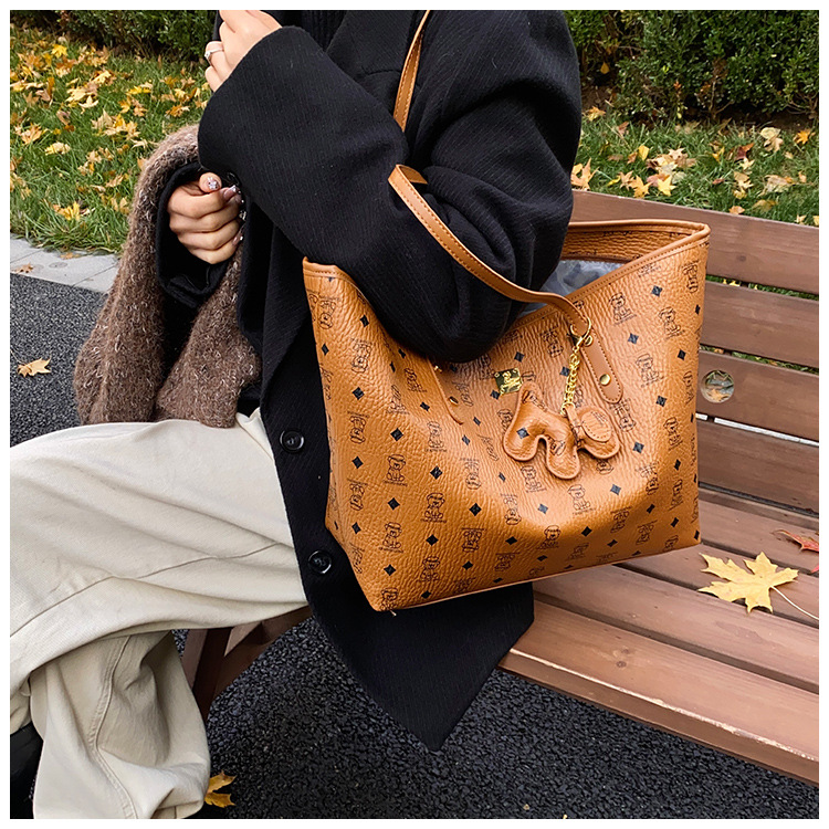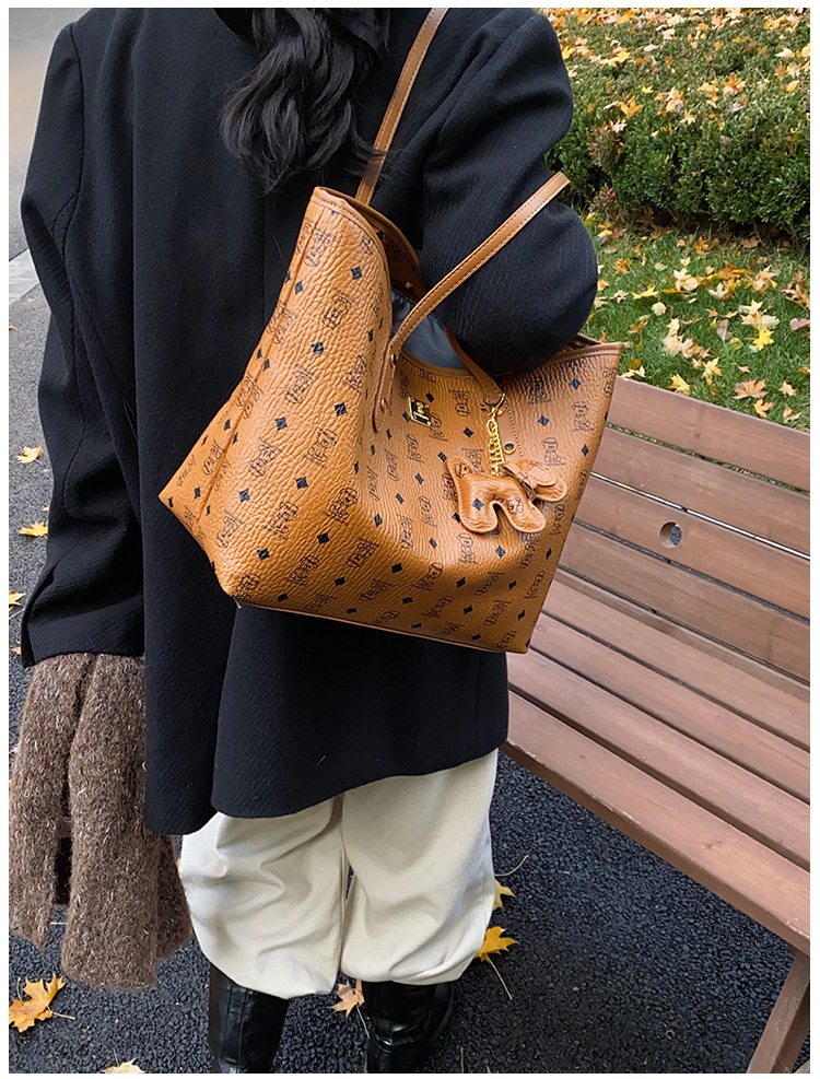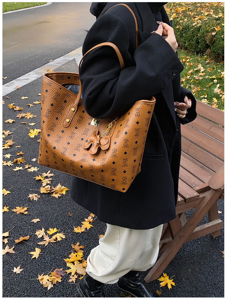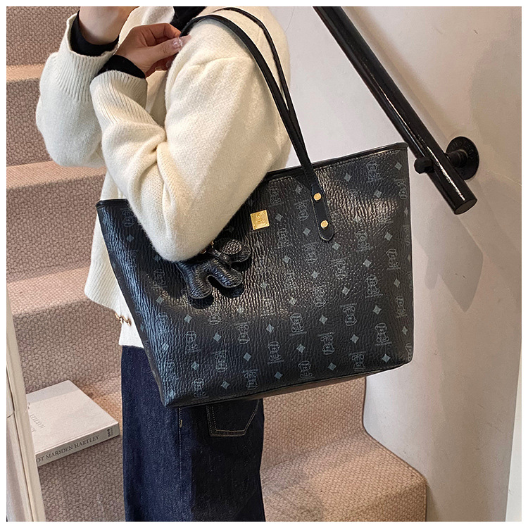 하이 엔드 인쇄 된 토트 백 여성의 2024 새로운 유행 유행 유행 대용량 올 매치 숄더 백 텍스처 토트 백