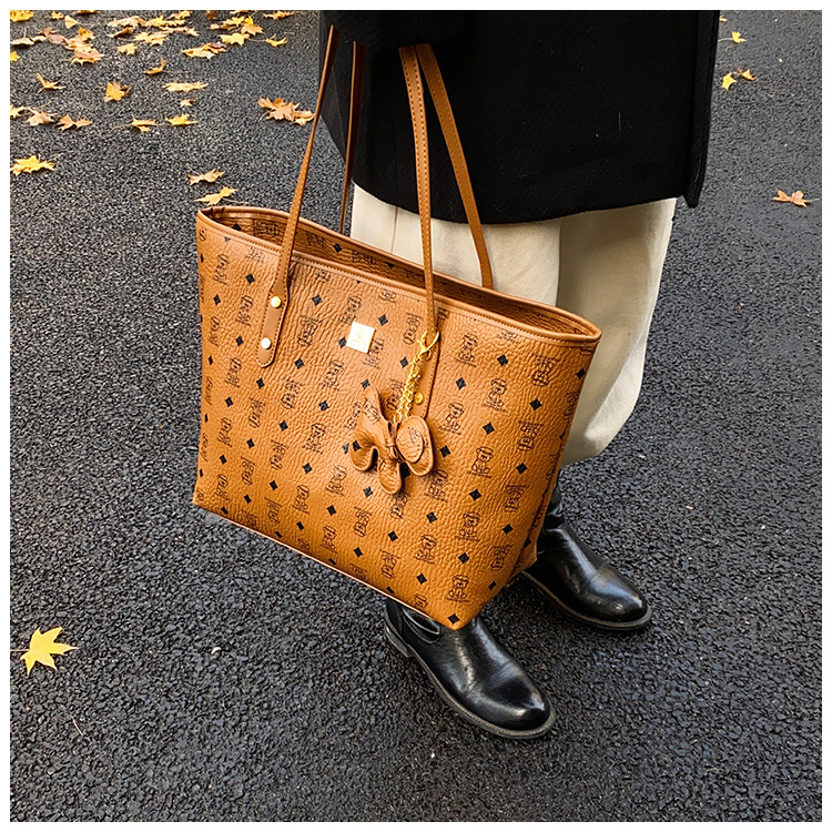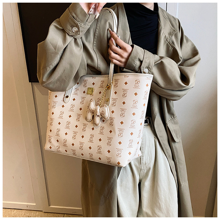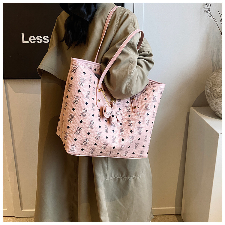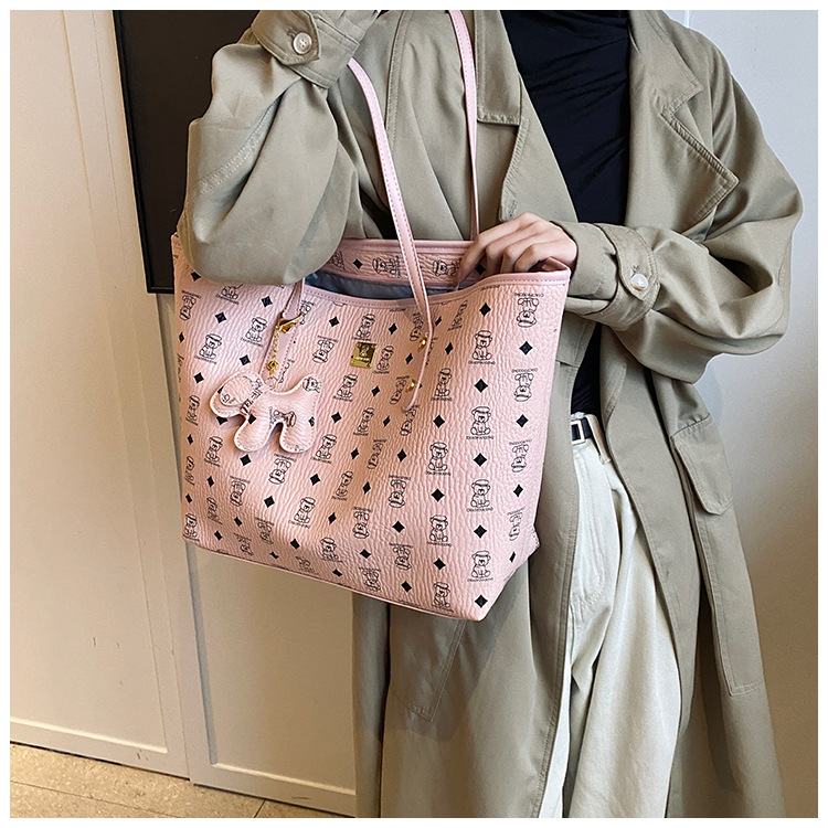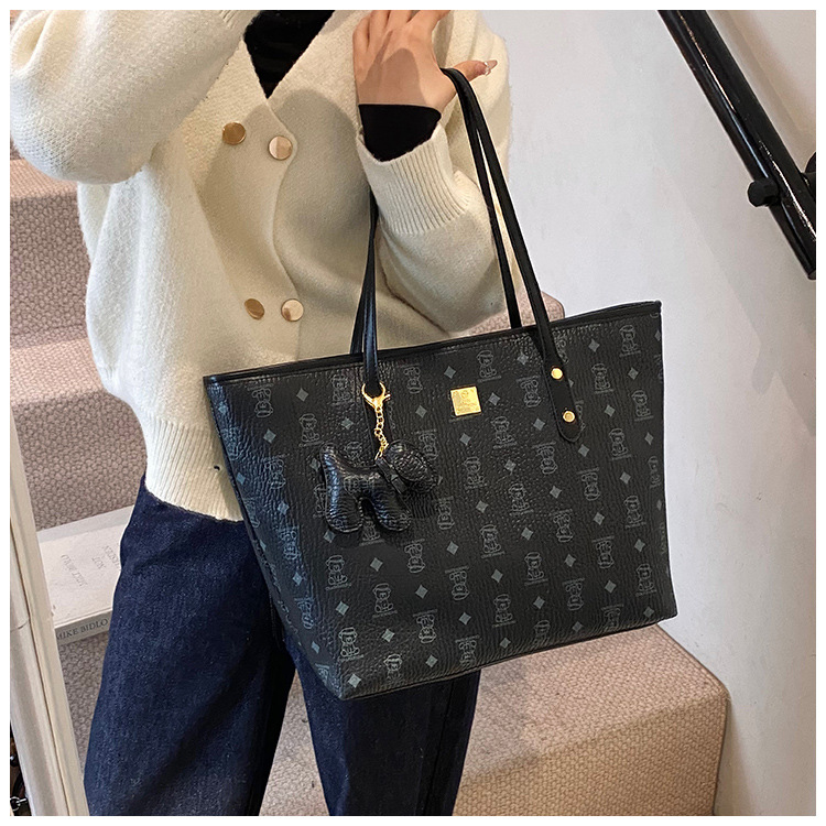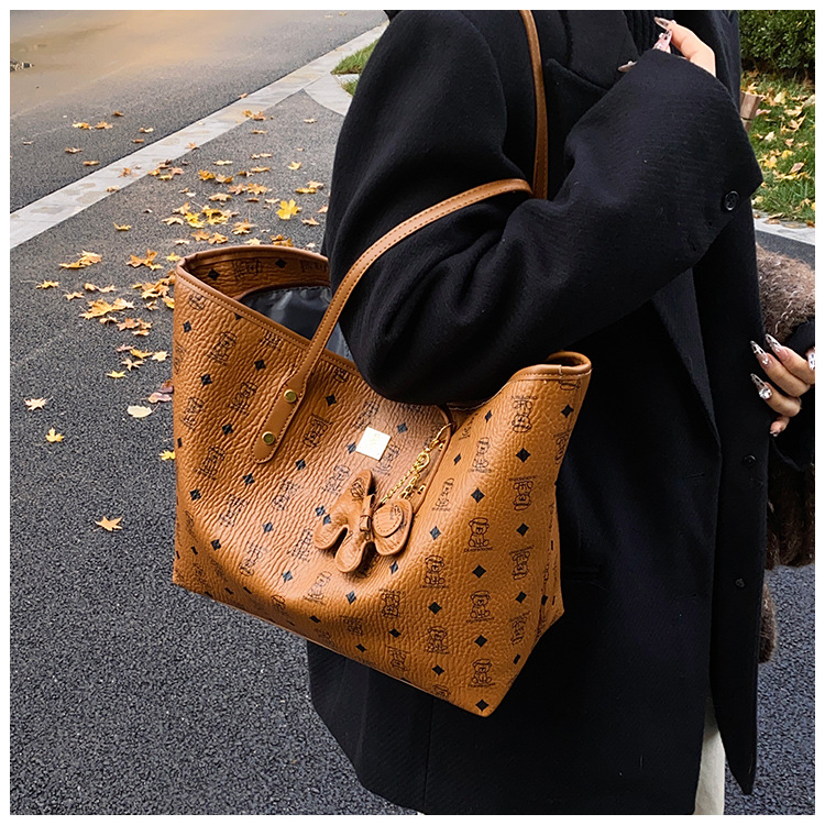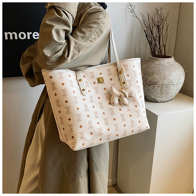 하이 엔드 인쇄 된 토트 백 여성의 2024 새로운 유행 유행 유행 대용량 올 매치 숄더 백 텍스처 토트 백