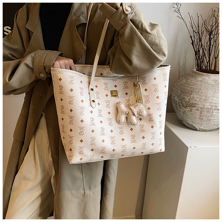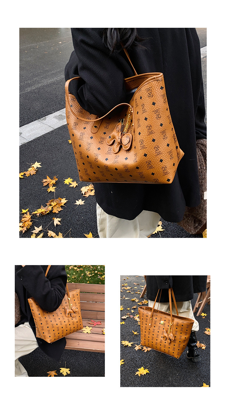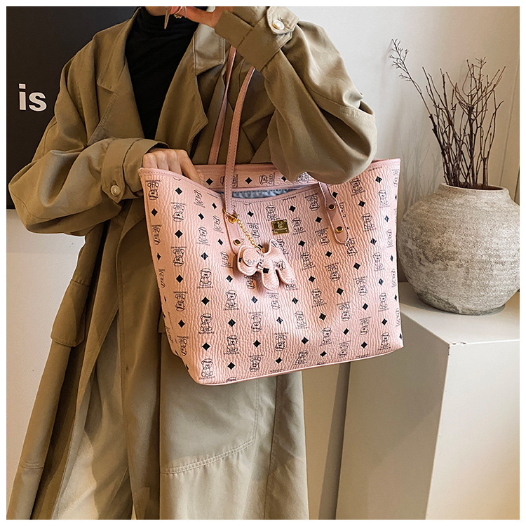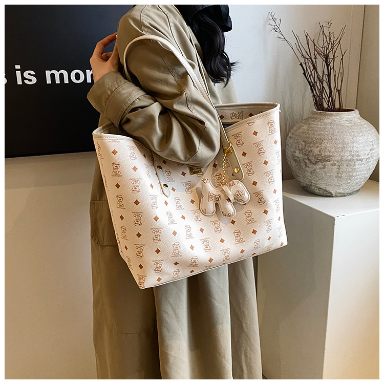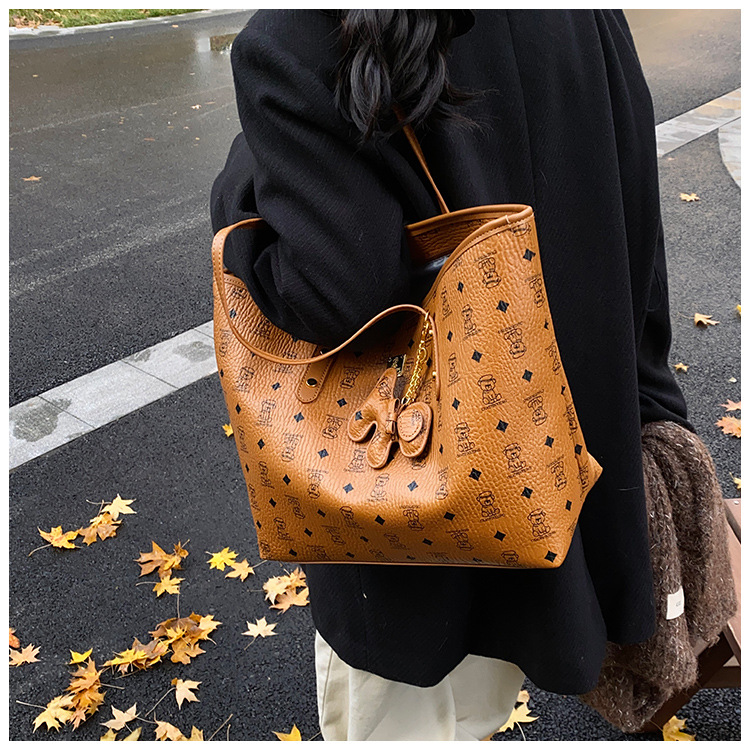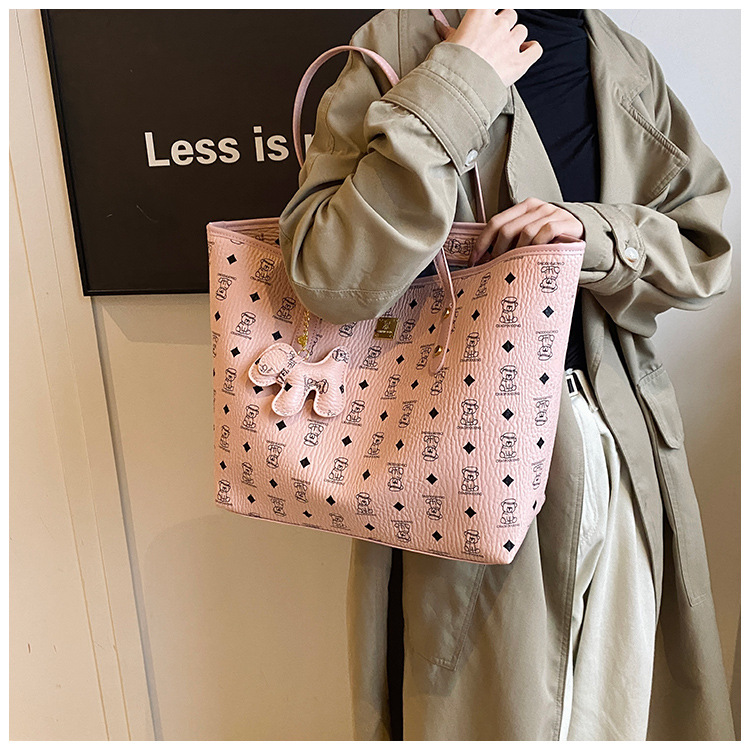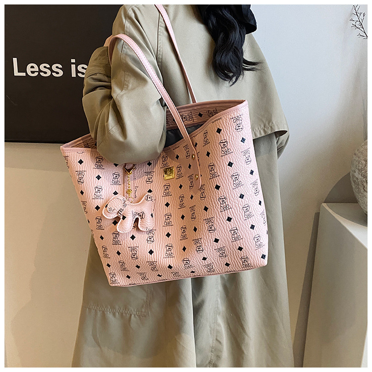 하이 엔드 인쇄 된 토트 백 여성의 2024 새로운 유행 유행 유행 대용량 올 매치 숄더 백 텍스처 토트 백