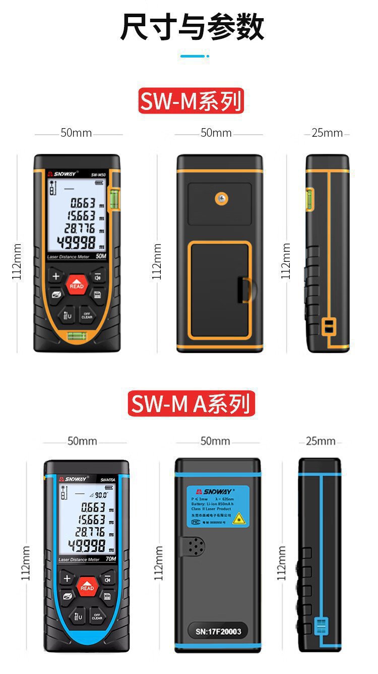 화웨이 SW-M100A 레이저 범위 파인더 휴대용 거리 측정 기기 전자 통치자 100 m 리튬 음성스토어 가기