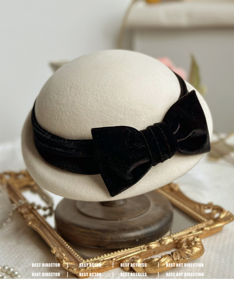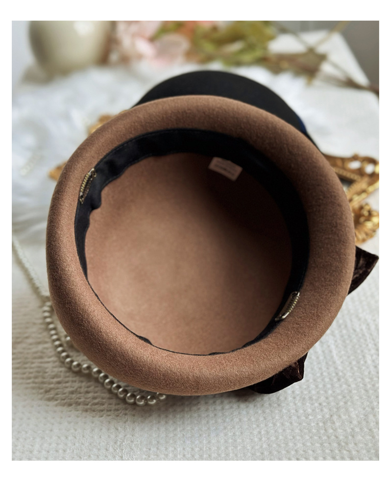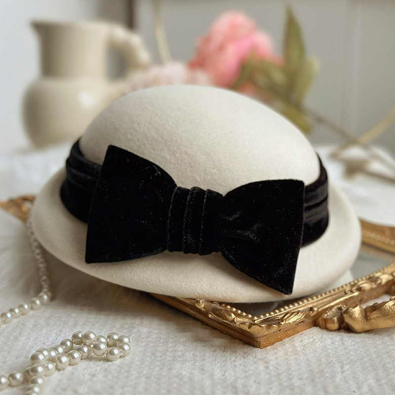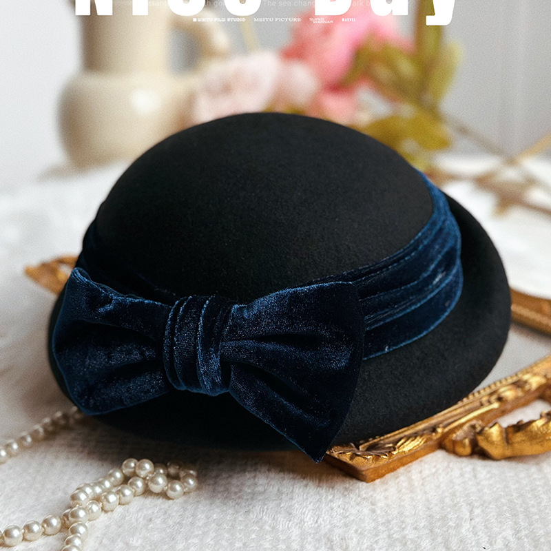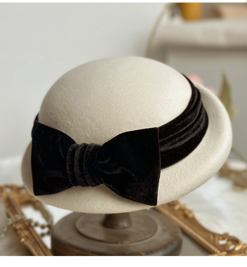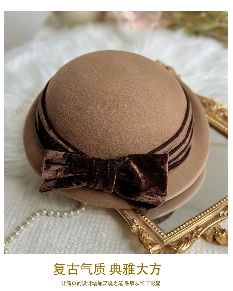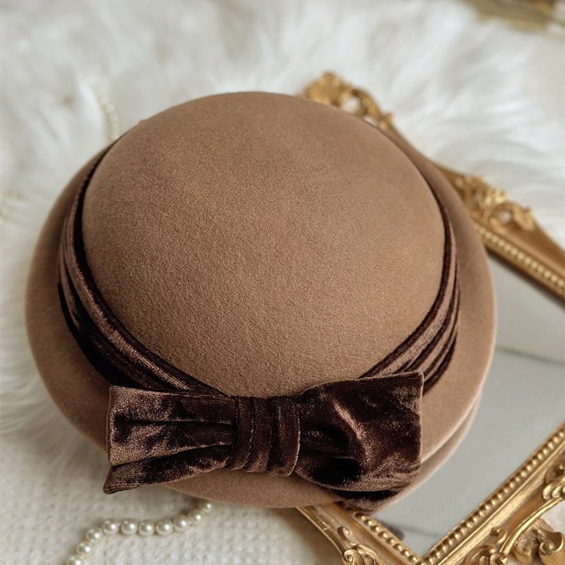 분지 모자 가을과 겨울 빈티지 프랑스 스타일 토퍼 모자 호주 울 퓨어 울 트위드 모자 벨벳 보우 우아한 선박 모자 베레