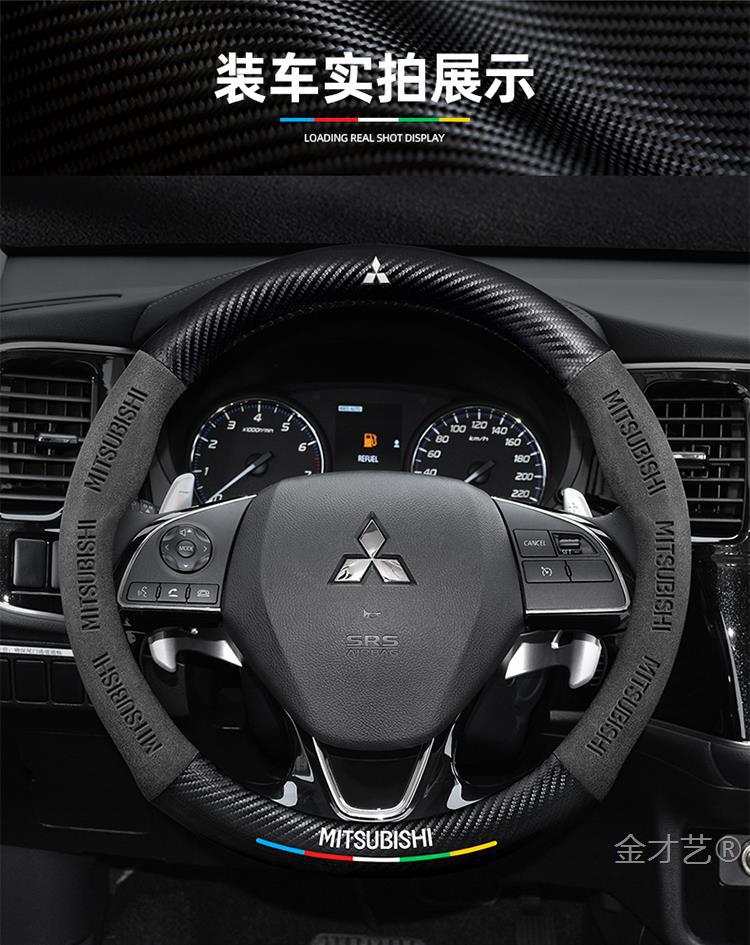 미쓰비시 아웃 랜더 스티어링 휠 커버 16-23 가죽 스웨이드 사계절 유니버설 탄소 섬유 자동차 핸들 커버스토어 가기