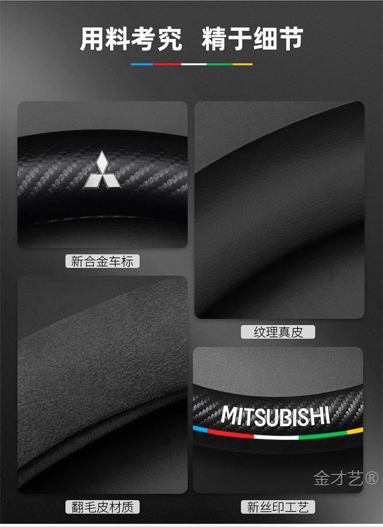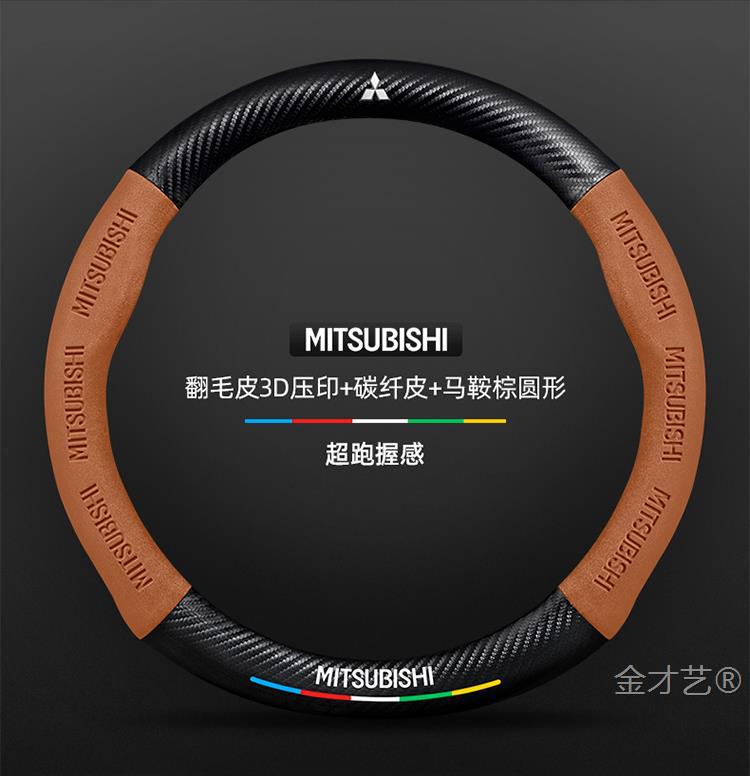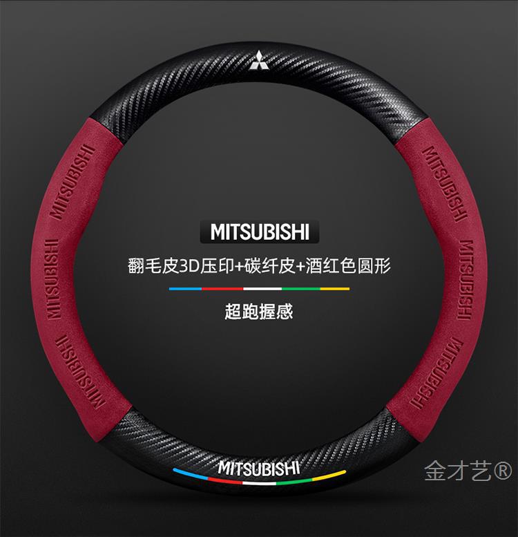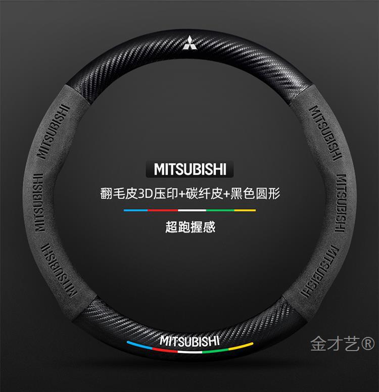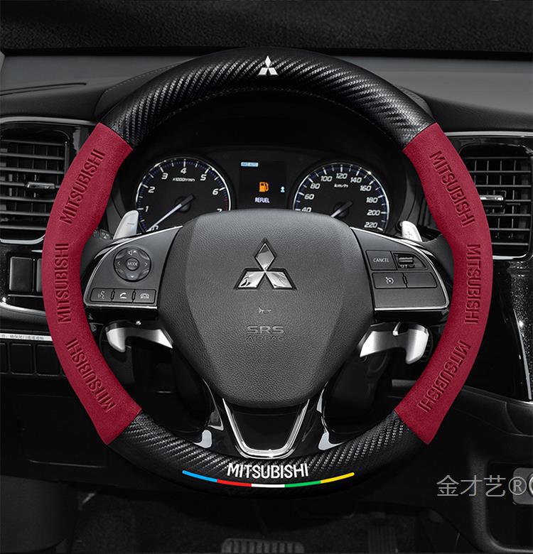 미쓰비시 아웃 랜더 스티어링 휠 커버 16-23 가죽 스웨이드 사계절 유니버설 탄소 섬유 자동차 핸들 커버