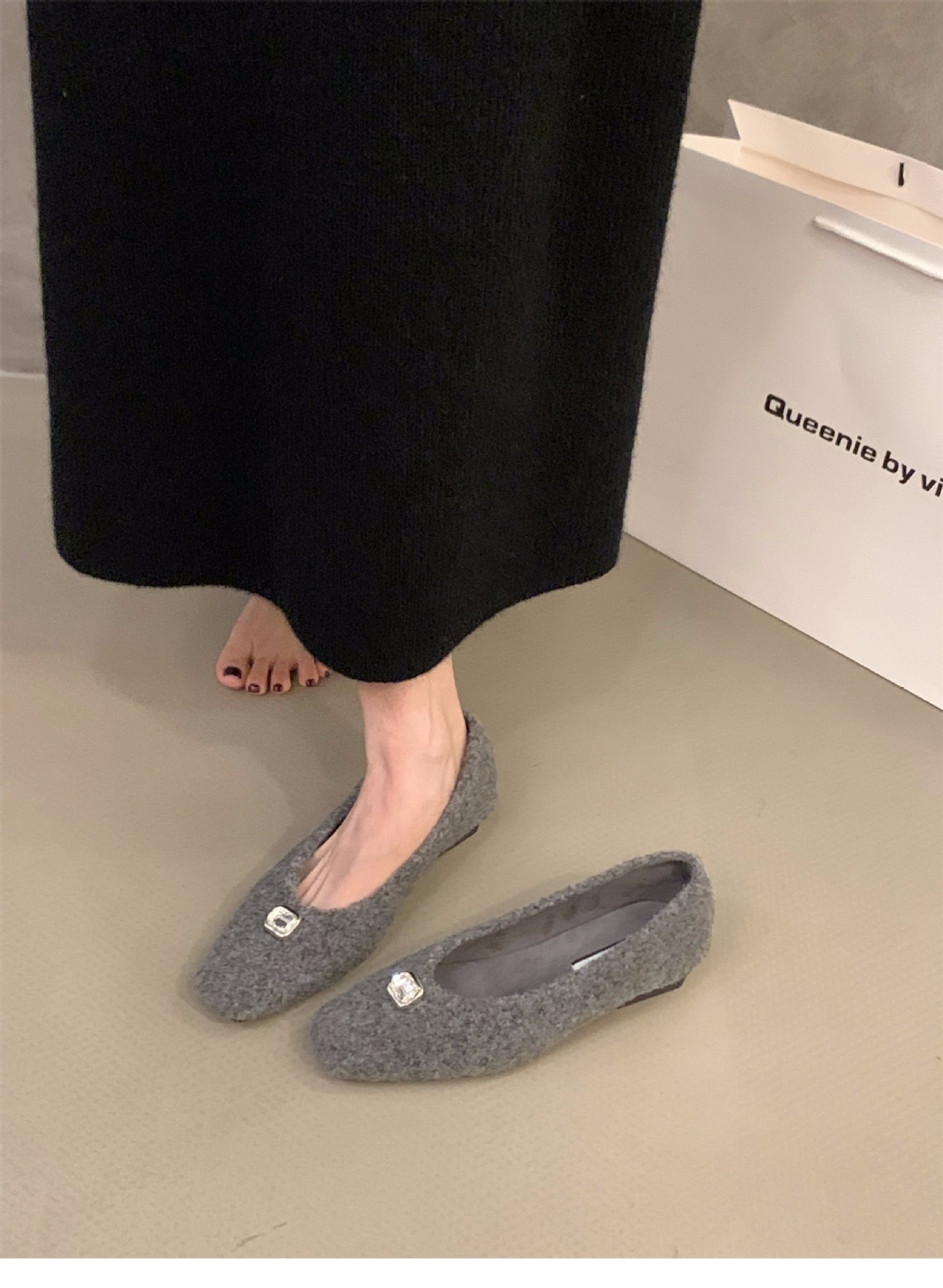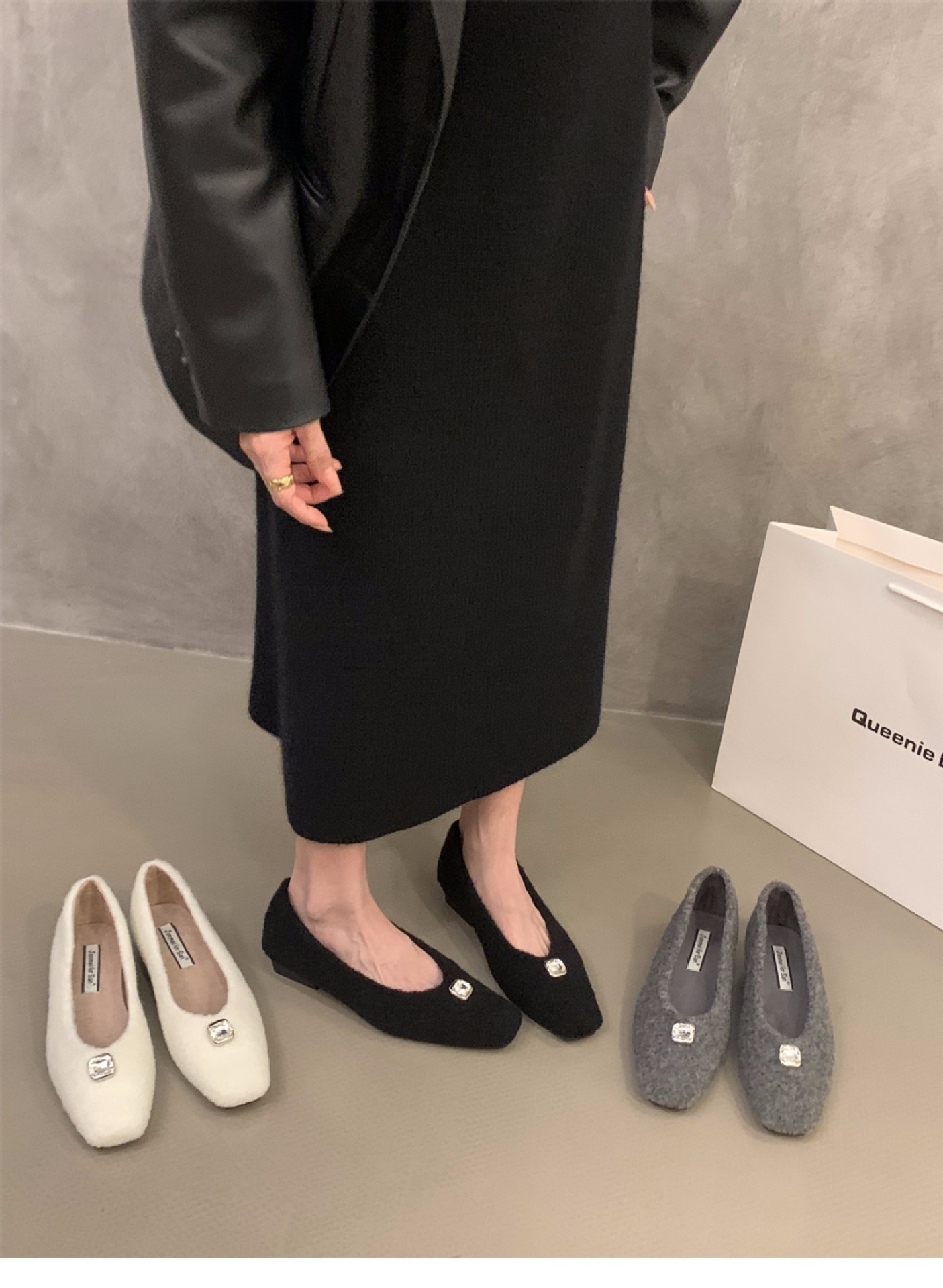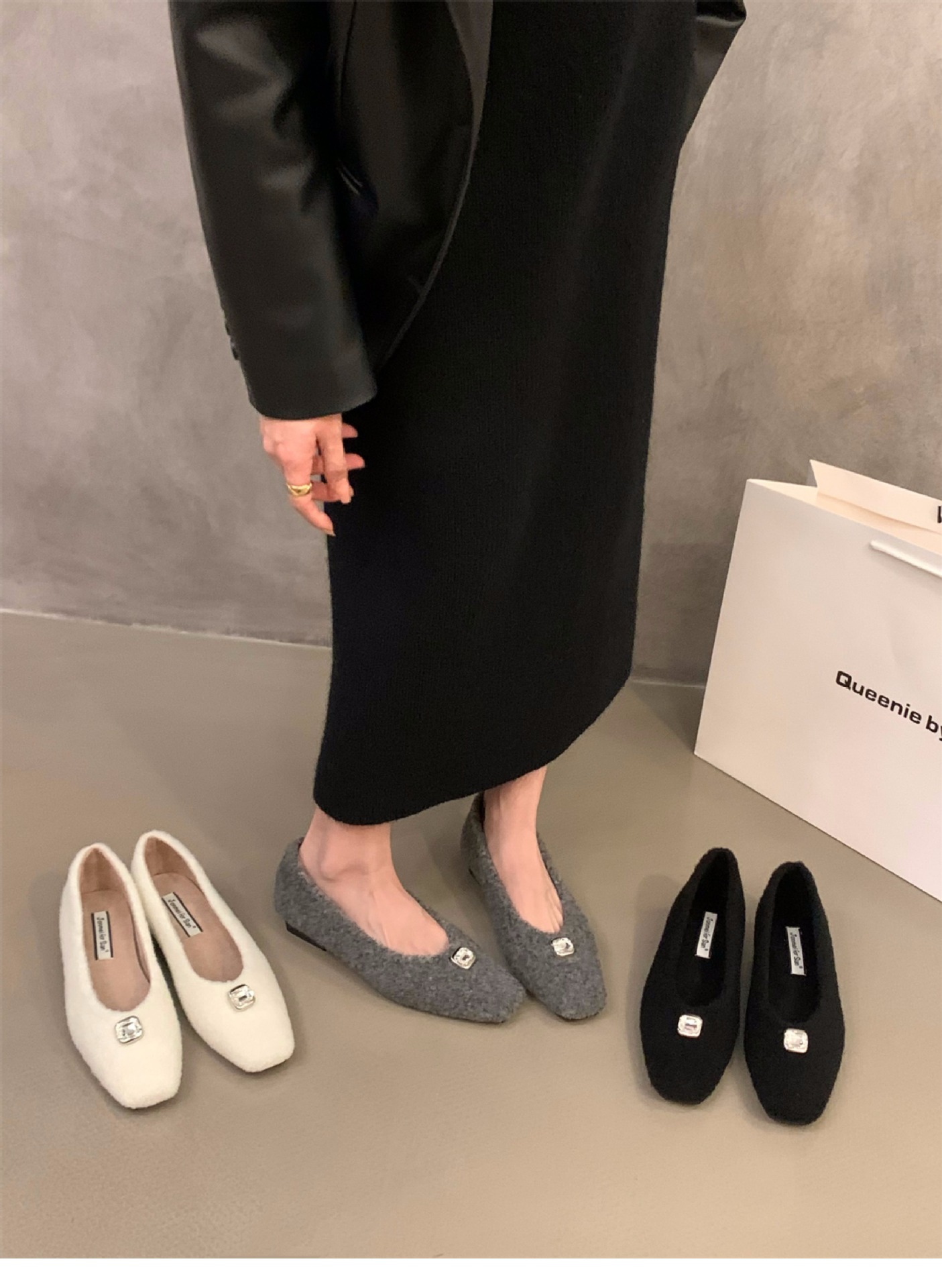 프랑스 두꺼운 뒤꿈치 기질 흰색 마오 마오 신발 신발 여성 신발 2024 가을과 겨울 기모 검은 통근 신발스토어 가기