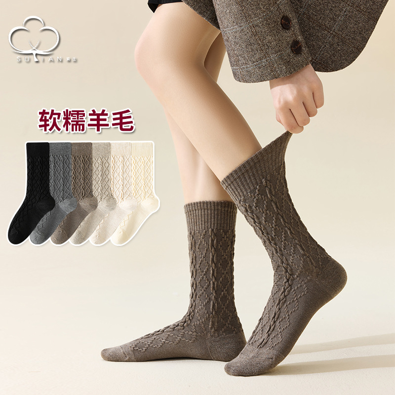 Maillard 양모 양말 여성 중장 양말 Ins 유행 여성 양말 다이아몬드 모양의 격자 겨울 얇은 벨벳 긴 양말 따뜻한 유지 양말스토어 가기