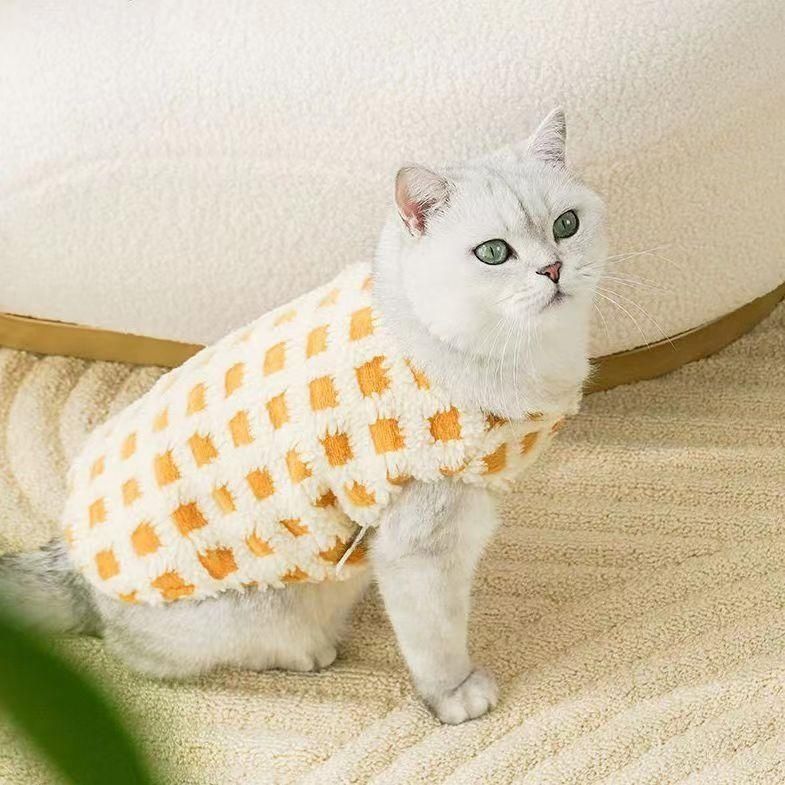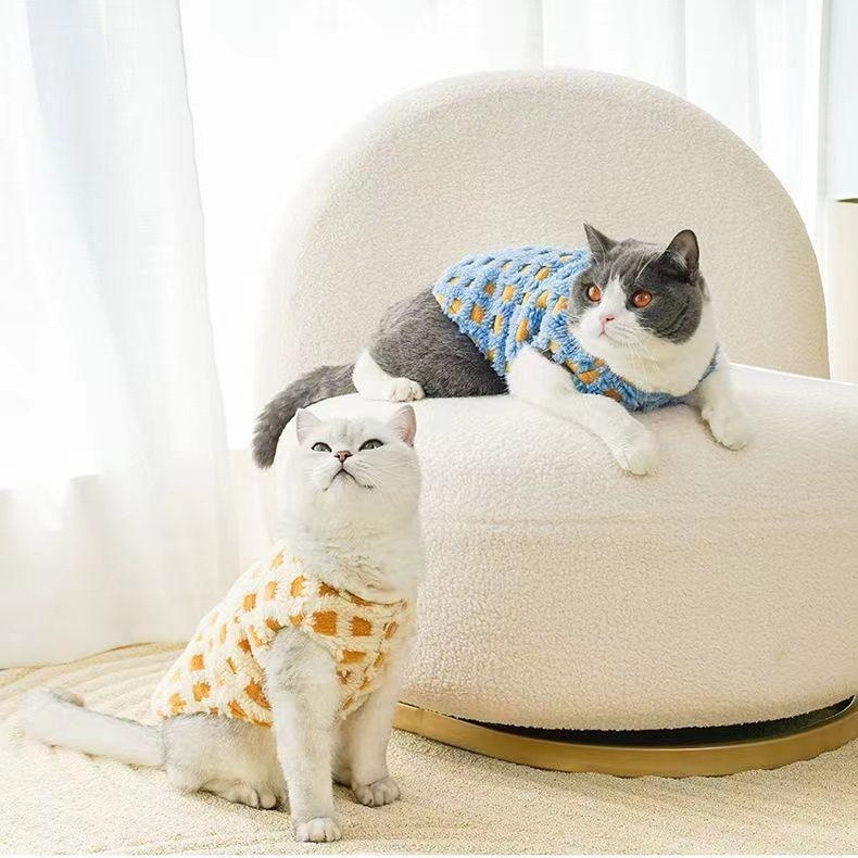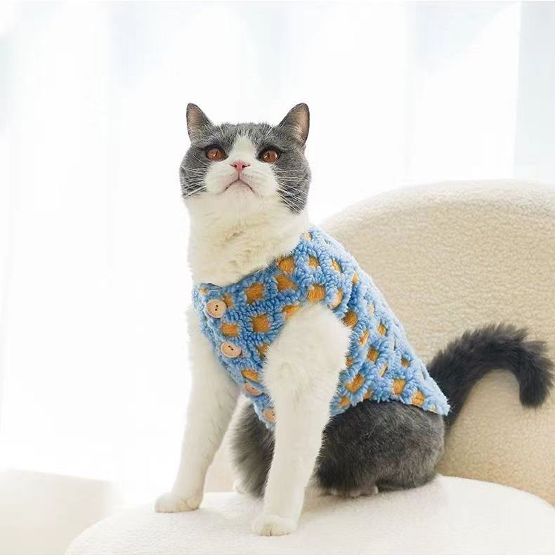 애완 동물 옷 가을과 겨울 고양이 개 옷 체크 무늬 조끼 블루 고양이 Ying 짧은 머펫 고양이 외출 따뜻한 조끼스토어 가기