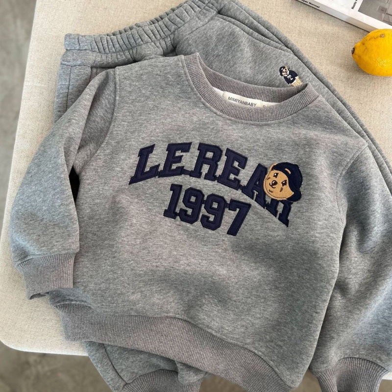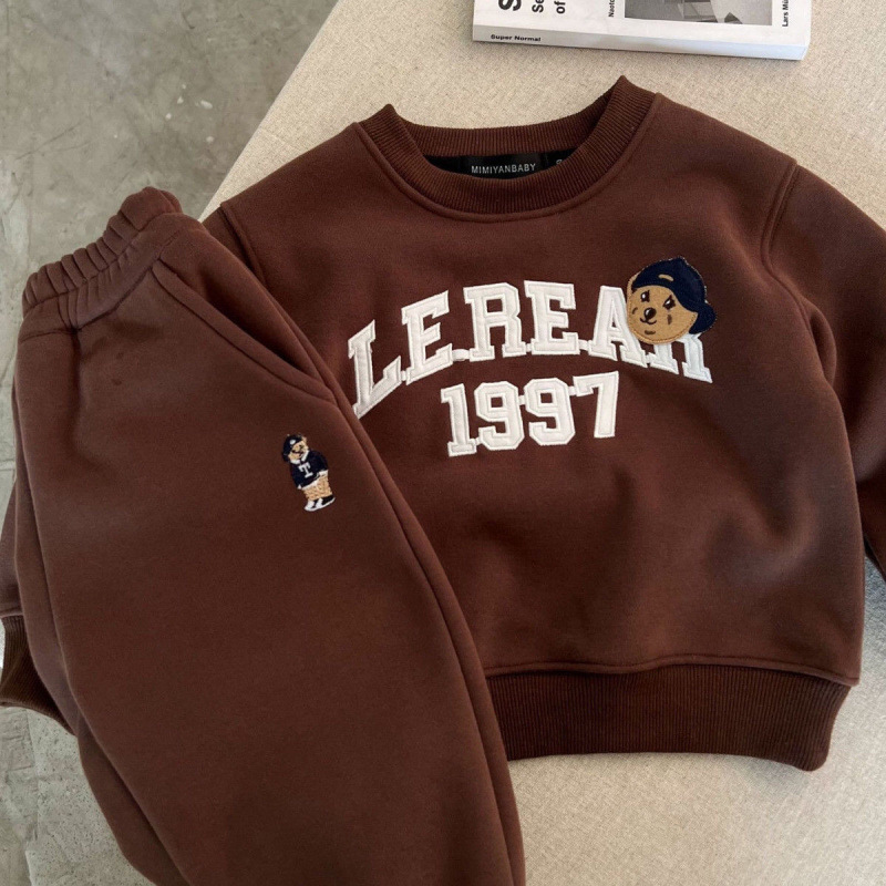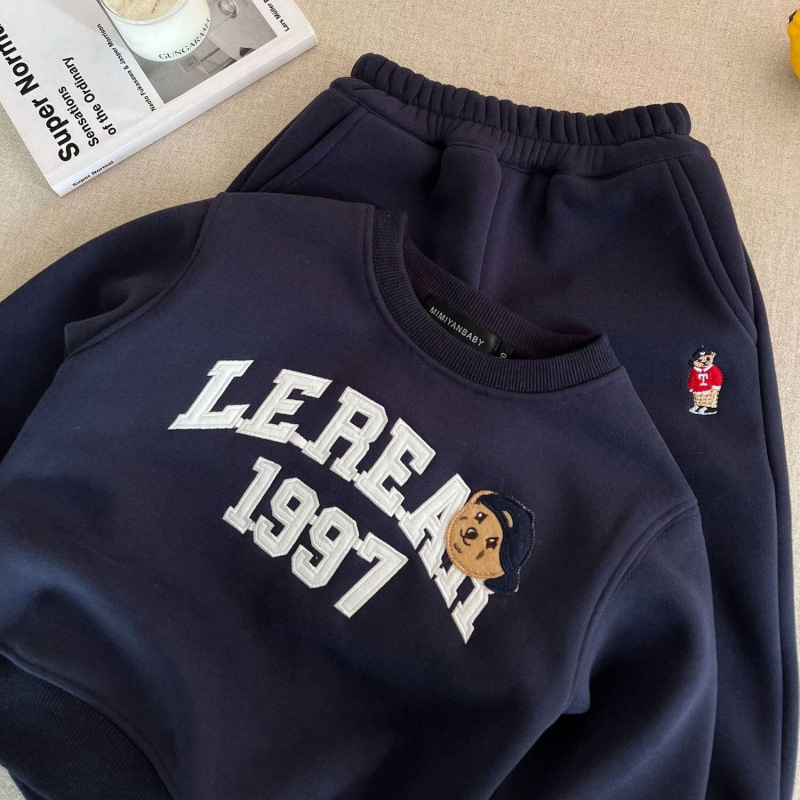 기모 어린이 두꺼운 세트 2024 새로운 소년 겨울 아기 소녀 스포츠 곰 만화 투피스 세트스토어 가기