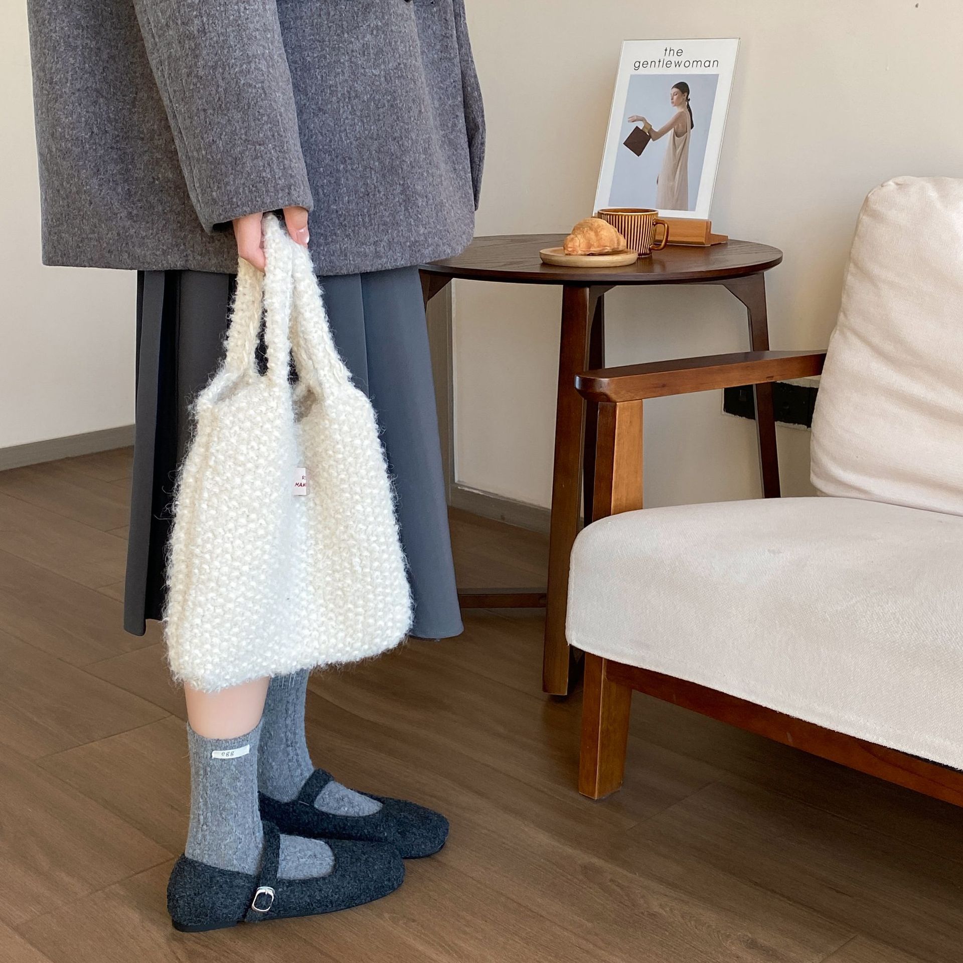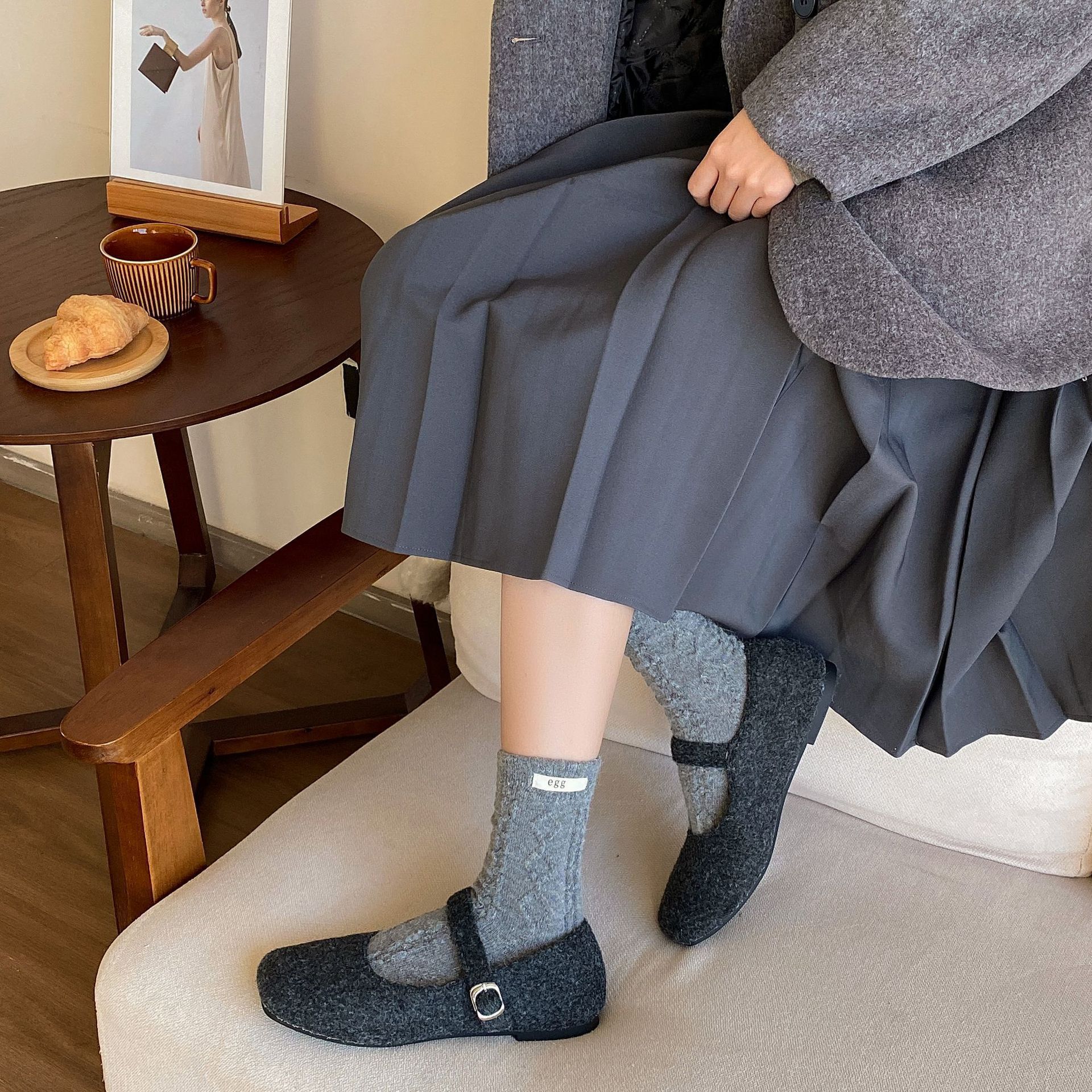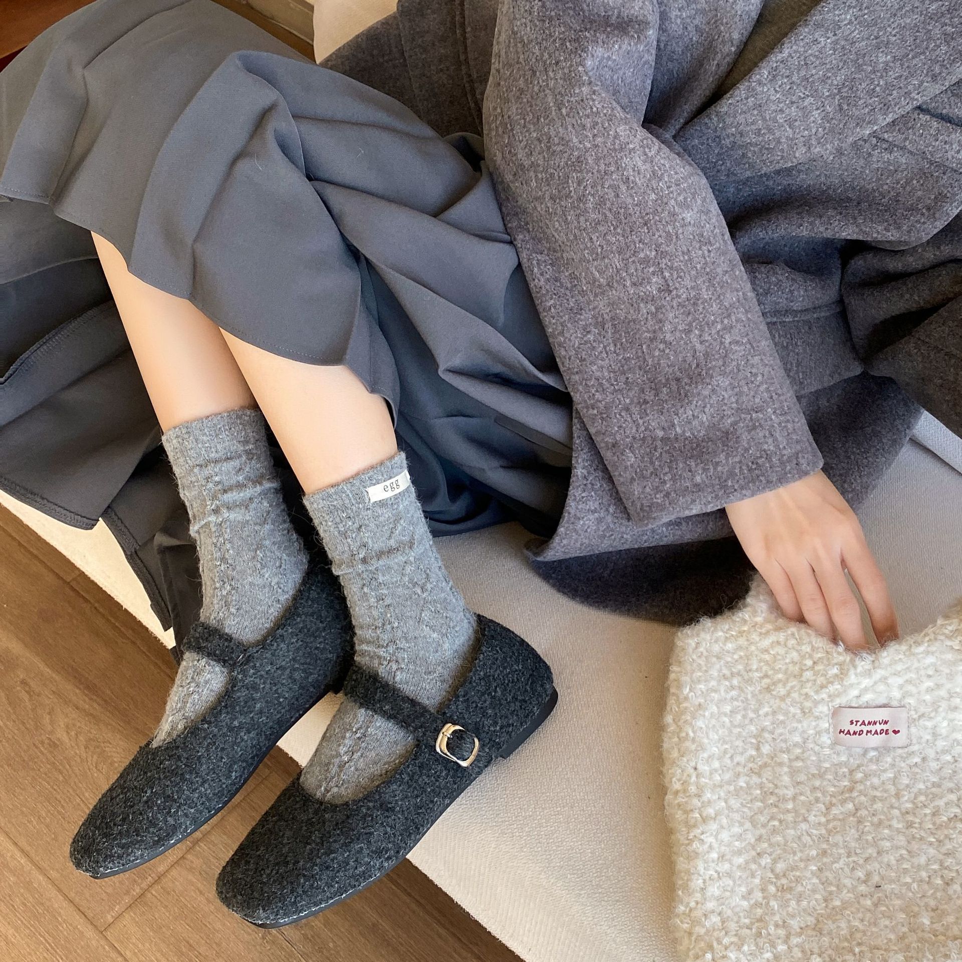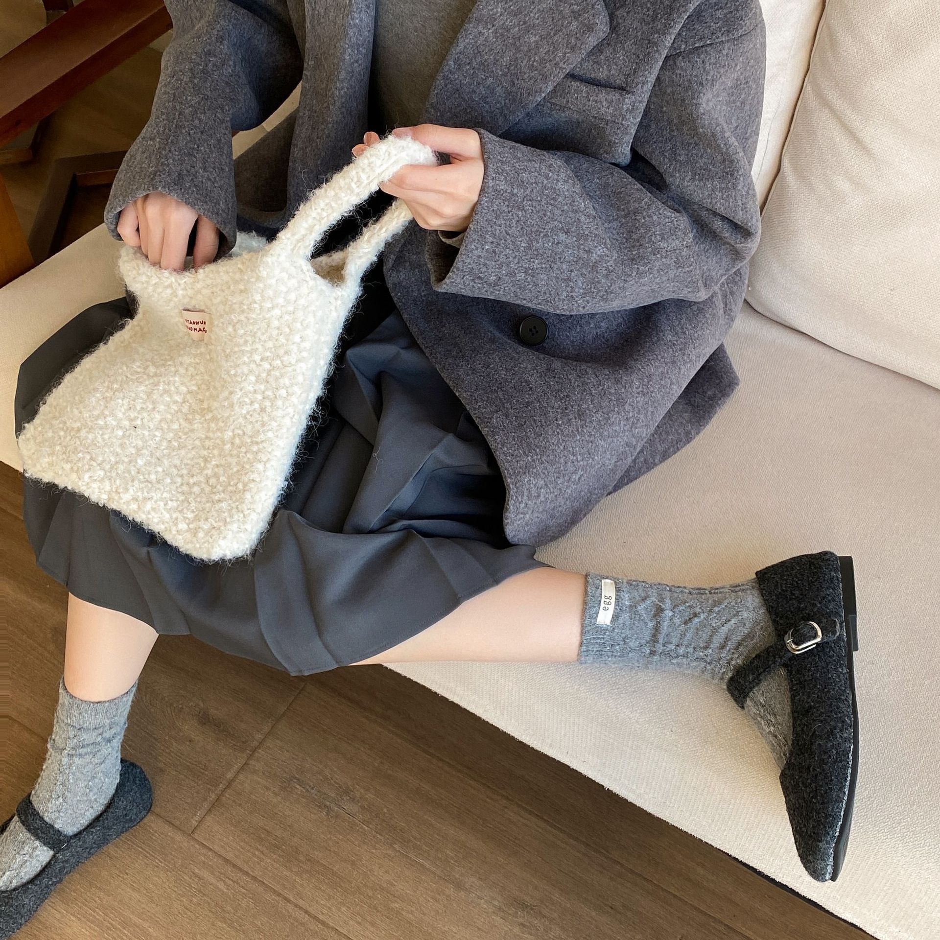 토끼 양모 계란 양말 여성 가을 · 겨울 한국 동대문 인천 라벨 따뜻한 중형관 깔린 양말스토어 가기