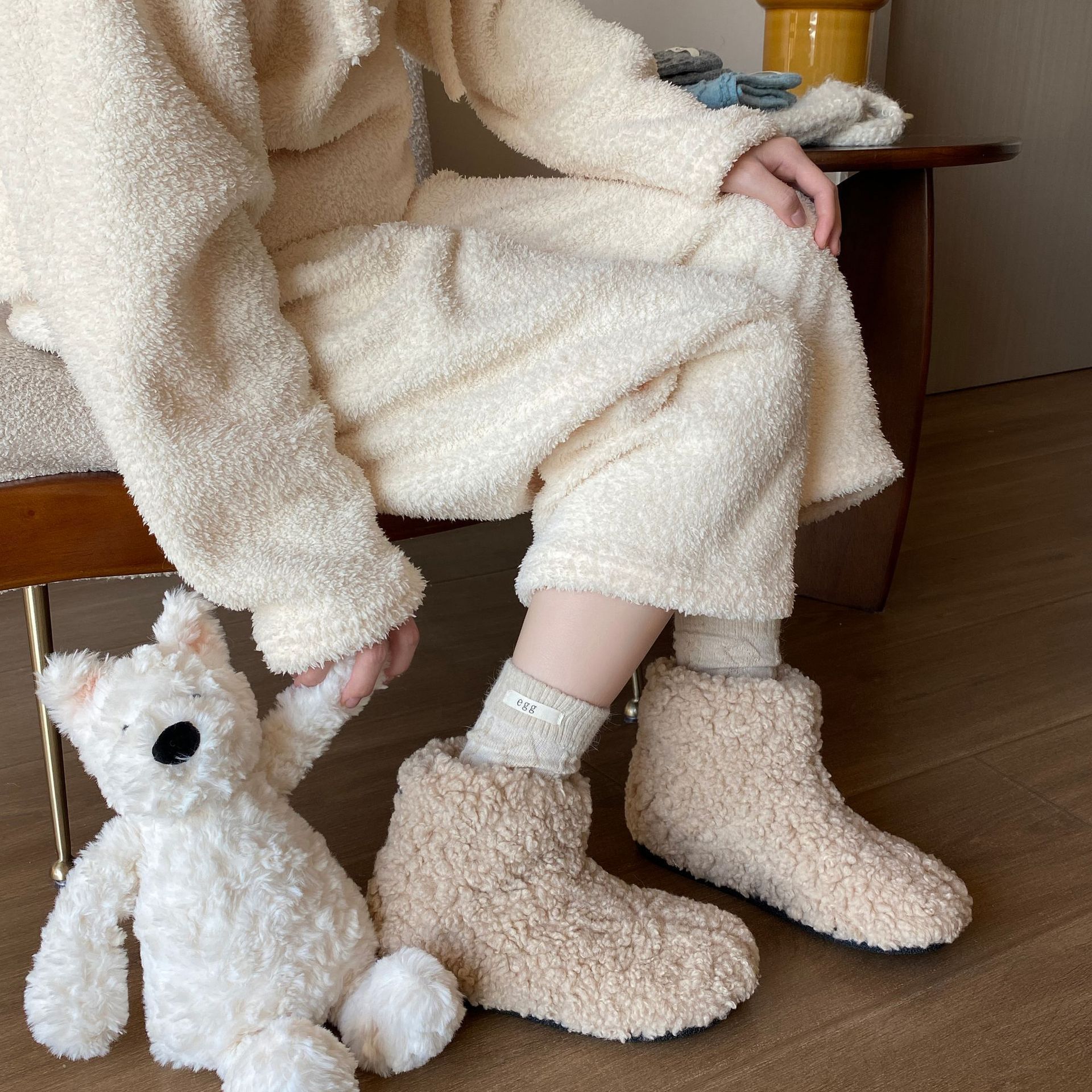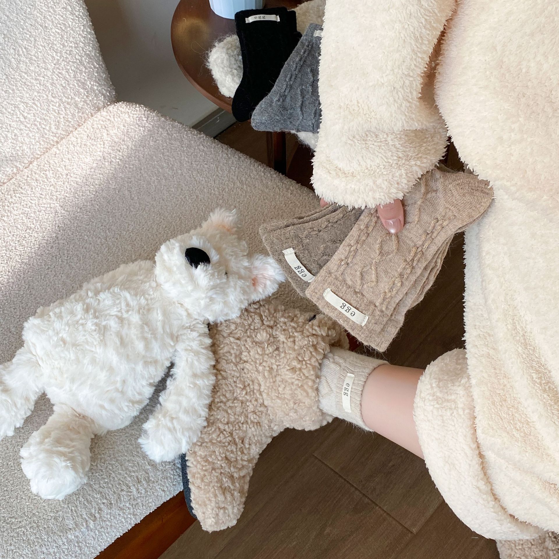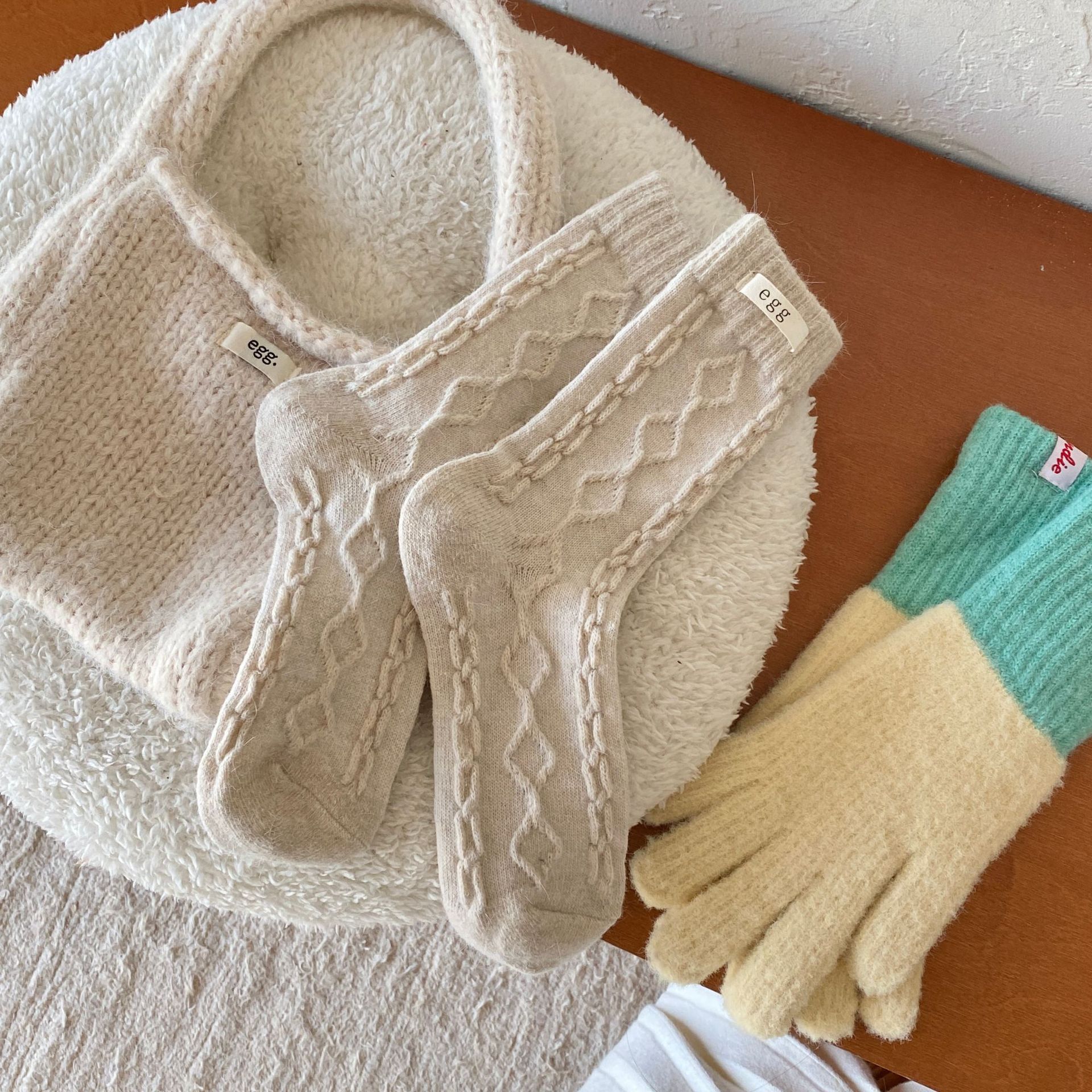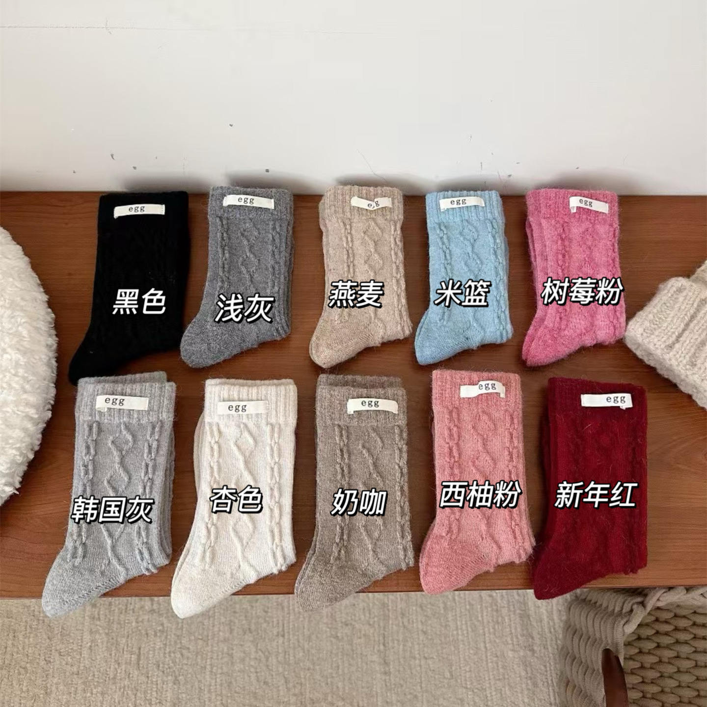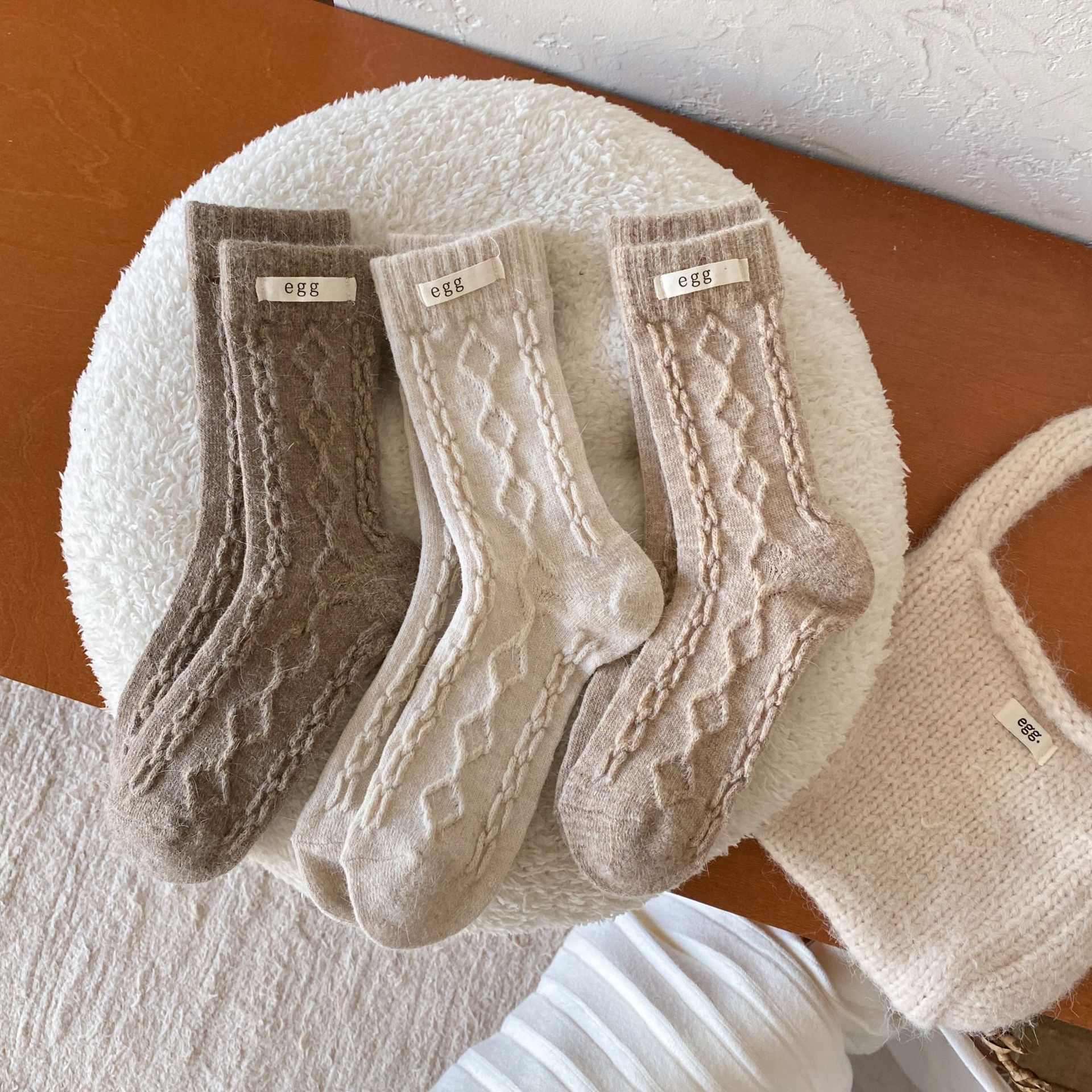 토끼 양모 계란 양말 여성 가을 · 겨울 한국 동대문 인천 라벨 따뜻한 중형관 깔린 양말