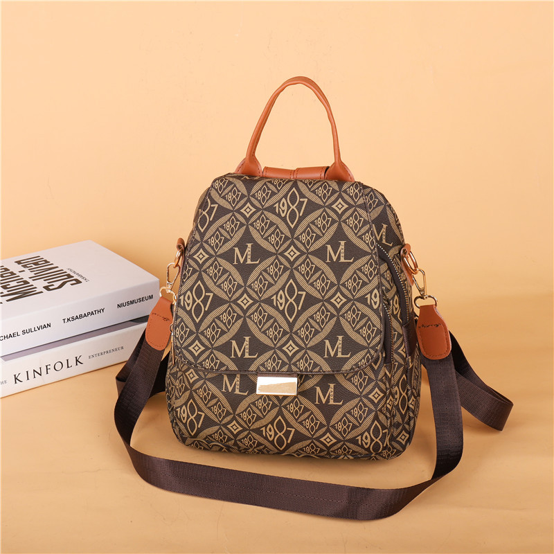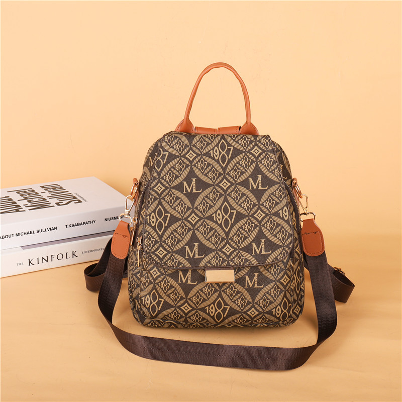 국경 간 복고풍 인쇄 여성 배낭 2024 새로운 패션 올 매치 여행 대용량 배낭 학생 Schoolbag