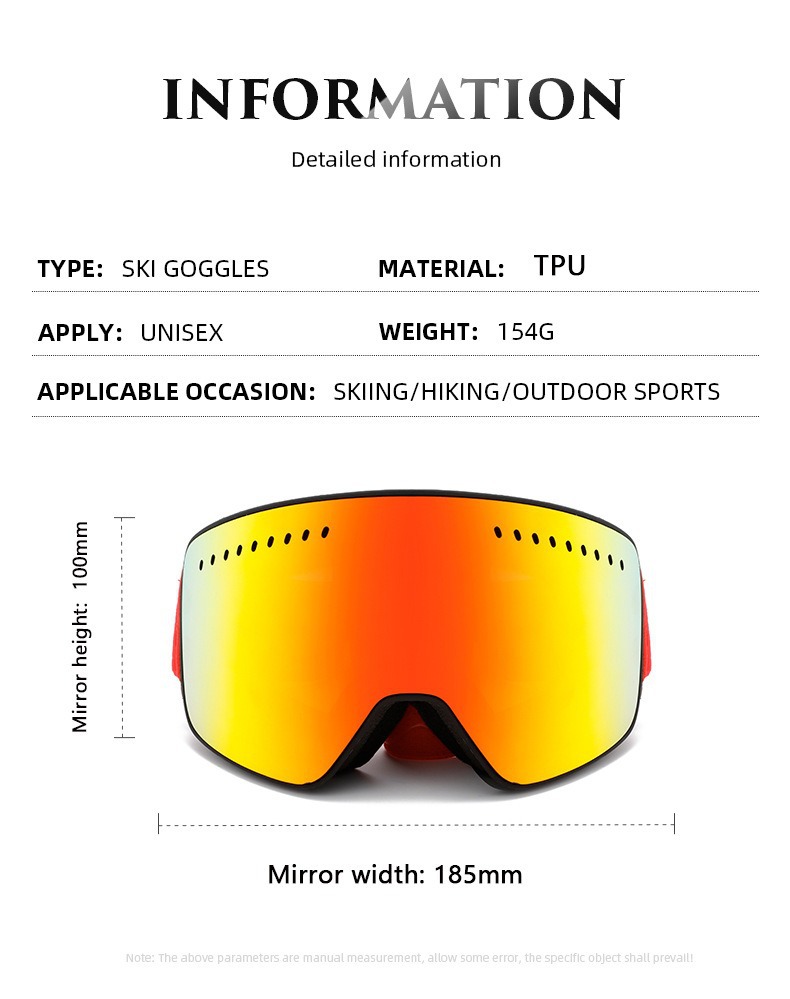 새로운 다채로운 원통형 자기 흡입 이중 층 안개 방지 스키 고글 야외 방풍 대형 비전 등산 눈 안경 3062스토어 가기