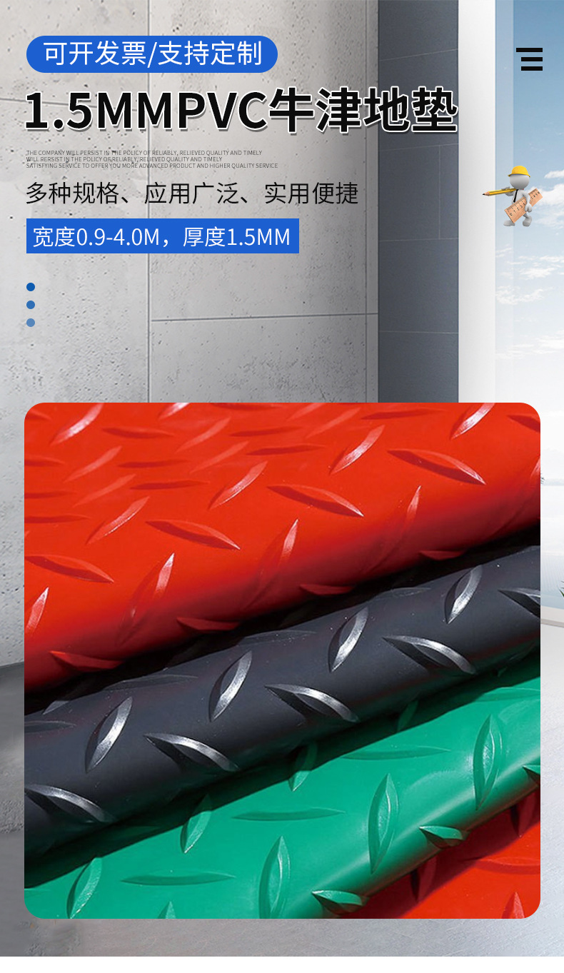 1.5mm 비 슬립 바닥 매트 두꺼운 공장 주방 계단 방수 플라스틱 카펫 플라스틱 바닥 미끄럼 방지 매트