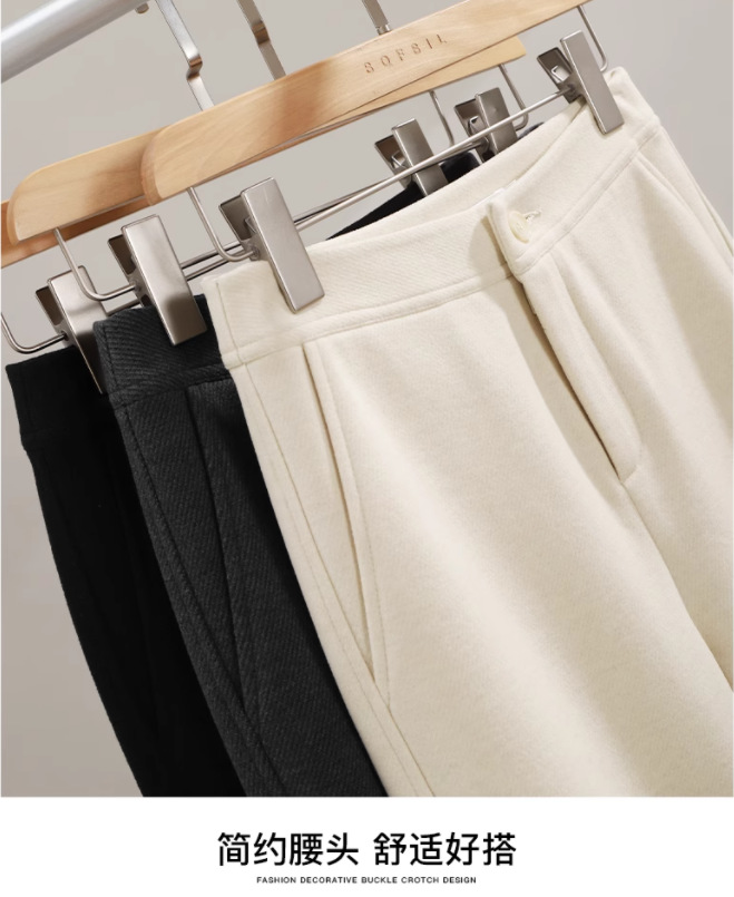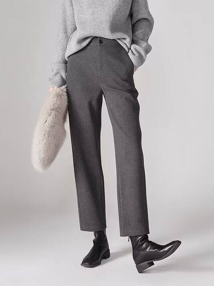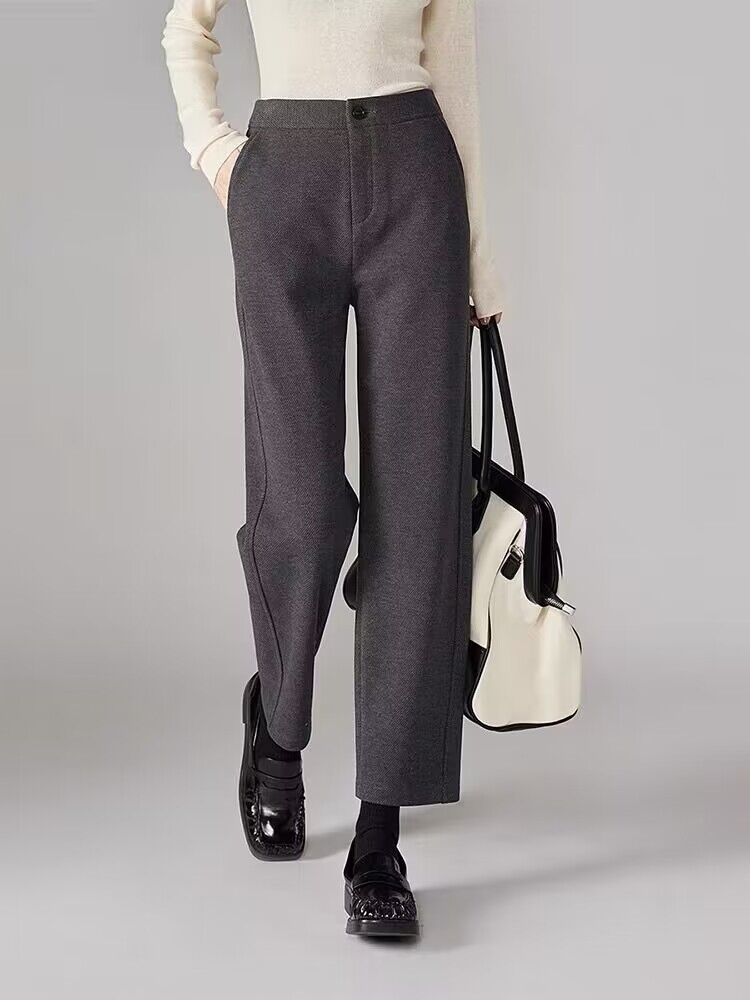 오리지널 품질의 두꺼운 보온 9부 스트레이트 팬츠 2024 겨울 신상 패션 캐주얼 하이웨이스트 스모크 팬츠 여성용 블랙스토어 가기
