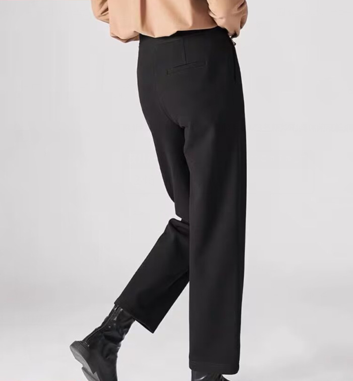原版质量加厚保暖九分直筒裤2023冬新款时尚休闲高腰烟管裤女黑色